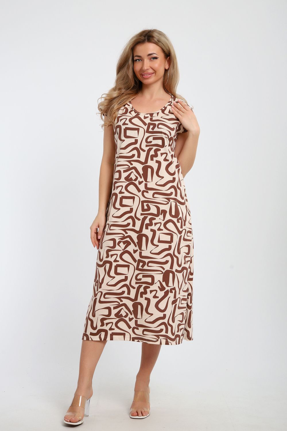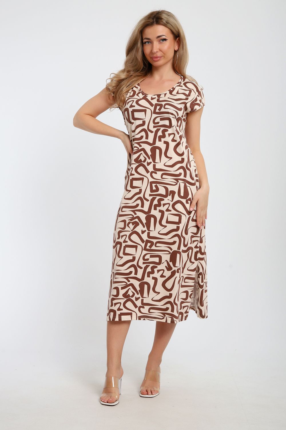 Платье женское удлиненное с легким рукавом - крылышком выполнено из кулирки 100% хлопок оригинальной расцветки. По бокам глубокие разрезы, карманы в швах, горловина обработана узким кантом. Платье элегантно подчеркивает фигуру, длина и разрезы придают стройность, оно отлично подойдет для прогулок и отдыха.