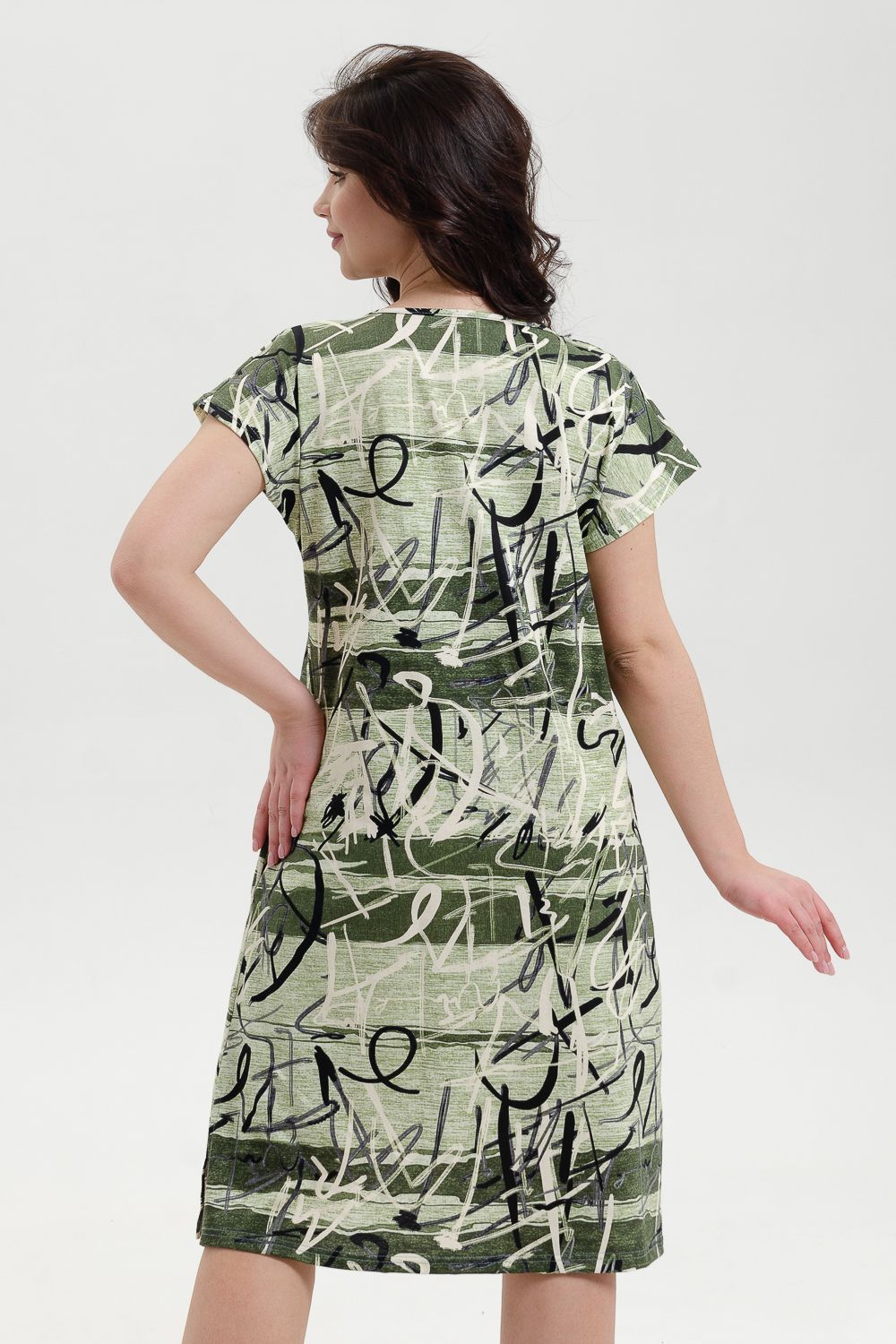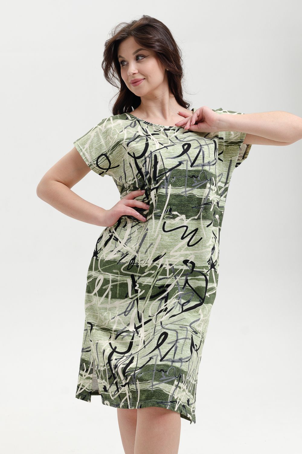 Платье женское средней длины выполнено из кулирки 100% хлопок оригинальной расцветки. Рукав спущенный, в боках карманы, горловина обработана узким кантом.
