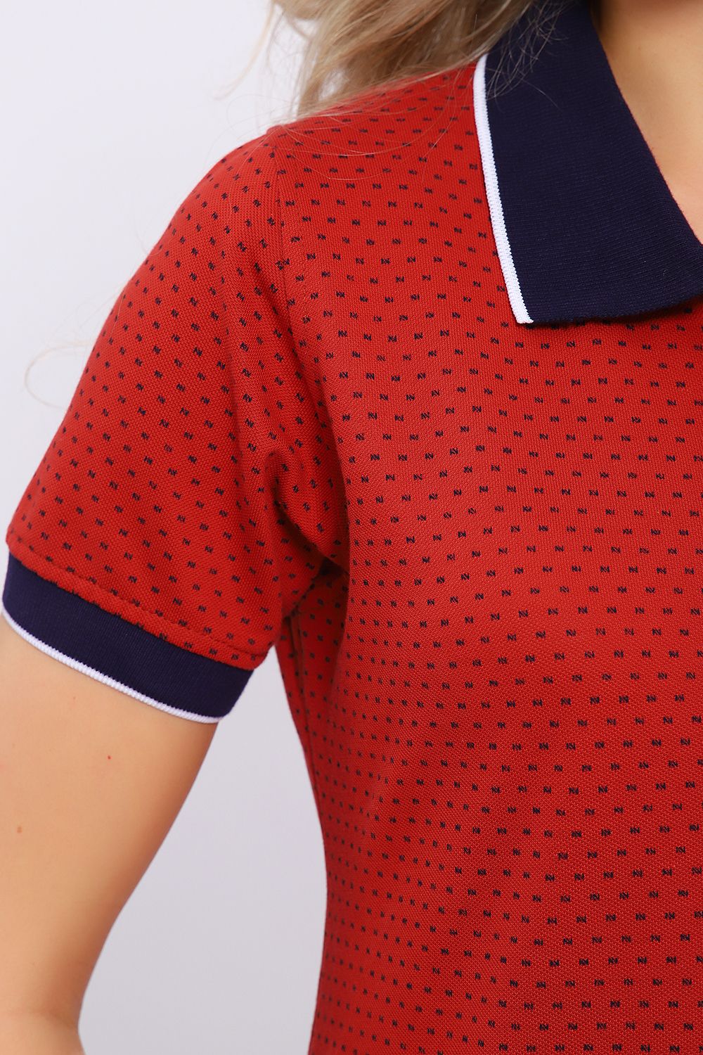 Платье-поло выполнено из лакосты набивного качества пенье. Воротник и манжеты вязаные, застежка - планка на пуговицы, по бокам разрезы. Платье очень удобное, комфортное, отлично подойдет как для дома, так и для прогулок и отдыха.