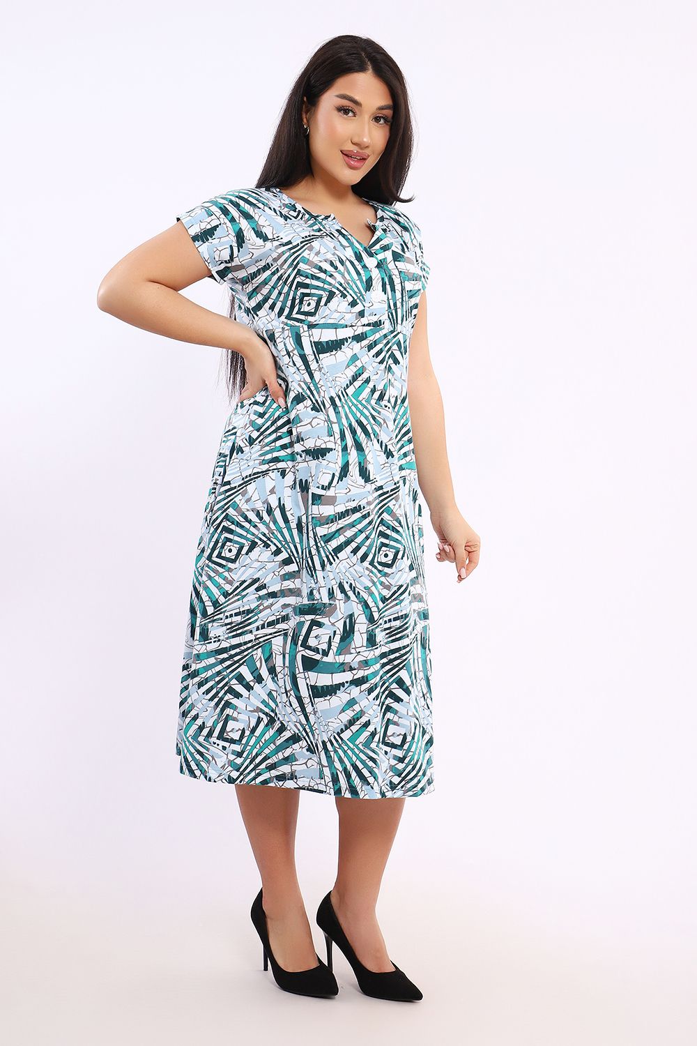 Платье женское удлиненное со спущенным плечом выполнено из кулирки 100% хлопок. Платье с подрезом, застежка-планка с вырезом оригинальной формы, в боковых швах карманы. Платье комфортное, удобное, идеально подойдет для прогулок и отдыха.