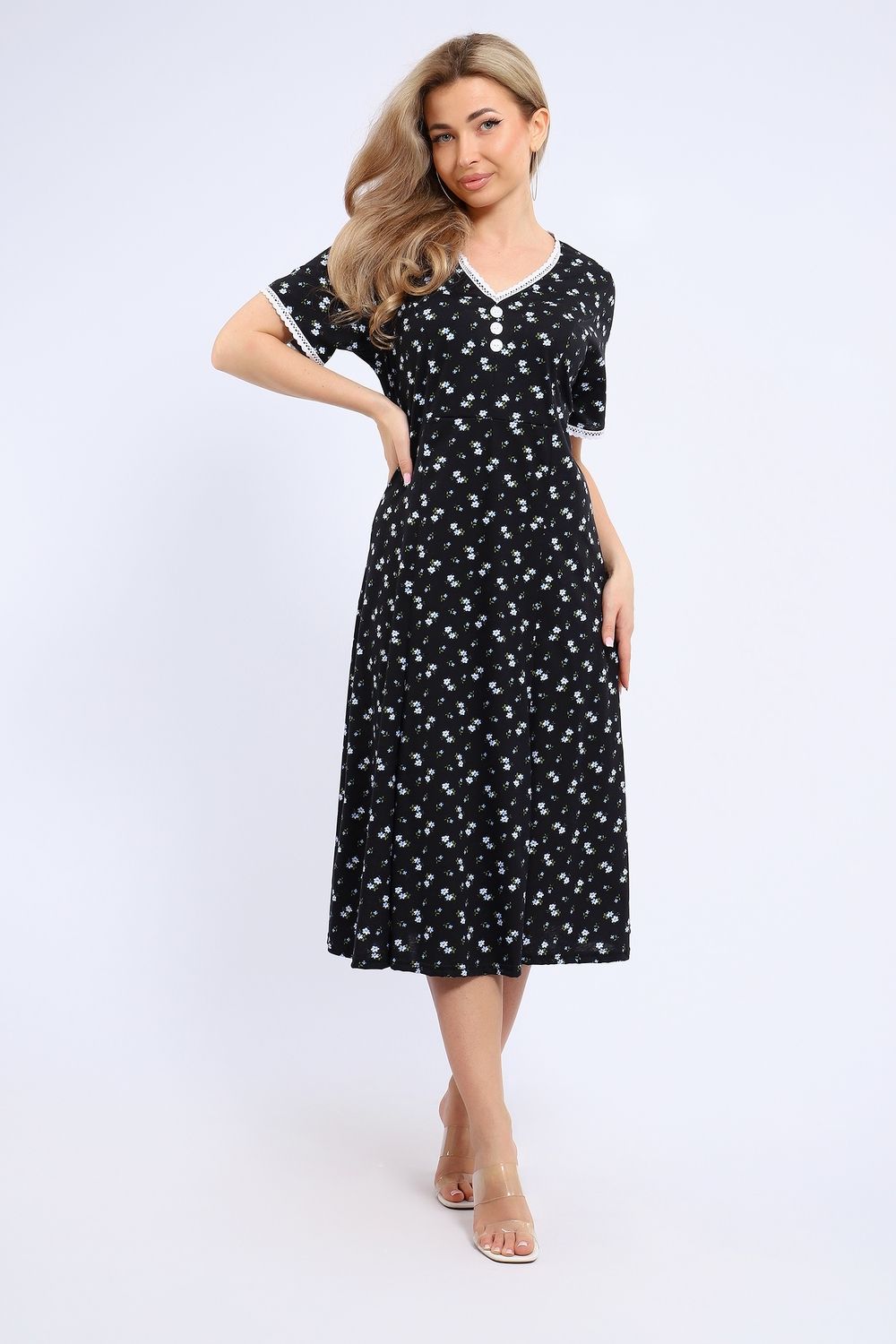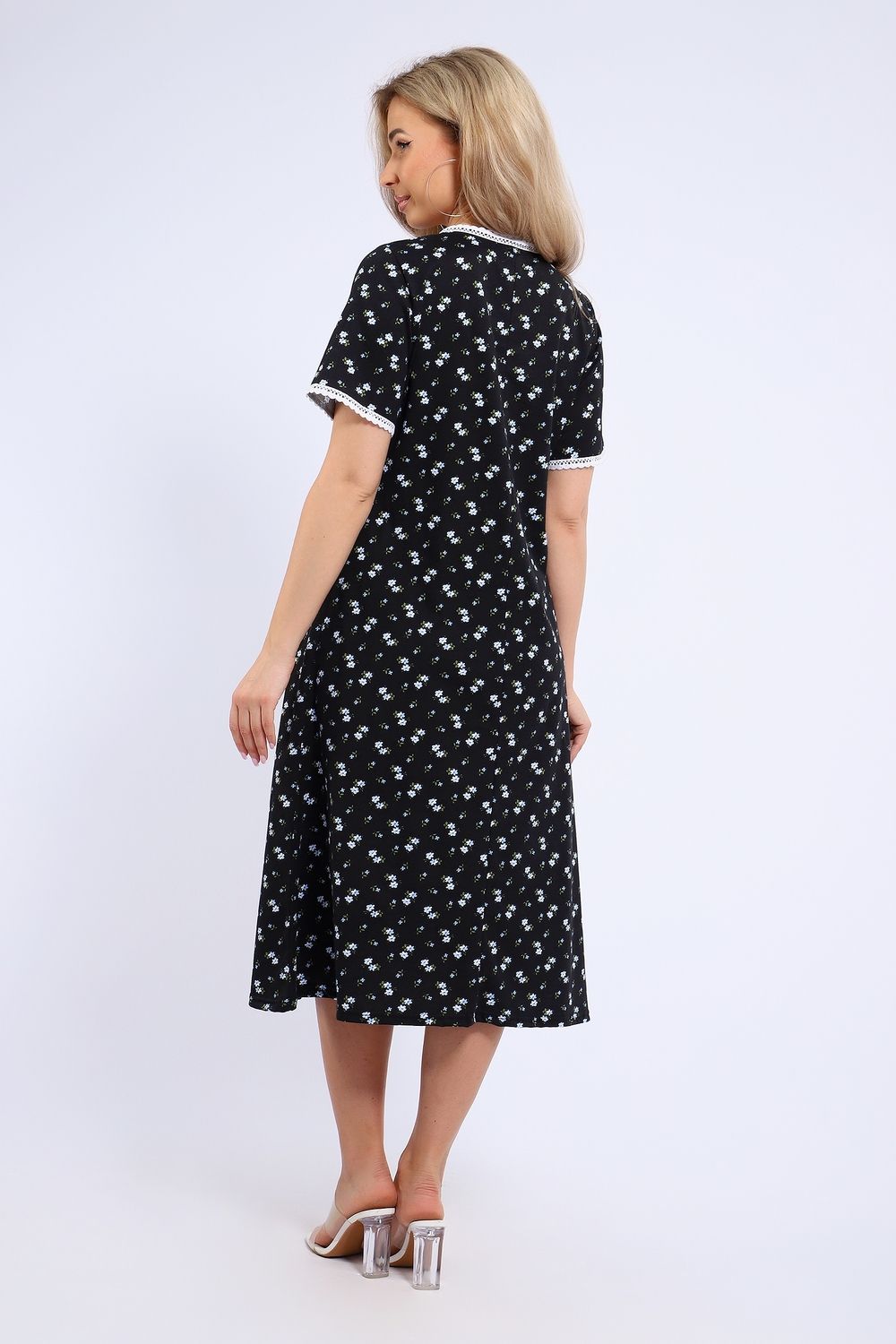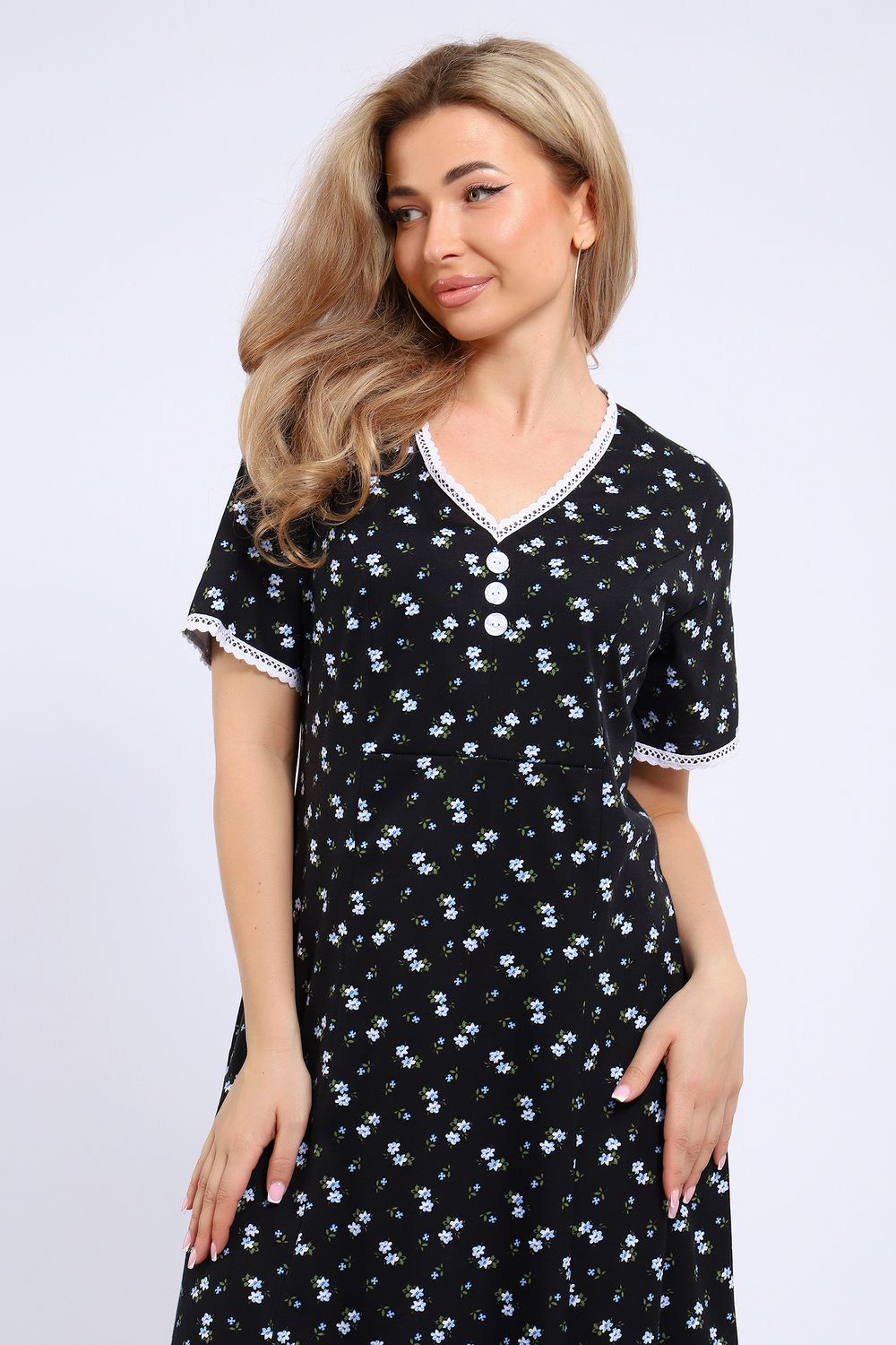 Платье женское выполнено в романтичном стиле из кулирки 100% хлопок. Платье с коротким рукавом, в области груди-подрез, горловина и края рукавов отделаны красивым х/б кружевом, пуговицы без петель. Платье очень женственное, комфортное, имеет отличную посадку по фигуре, подойдет для романтичных образов.