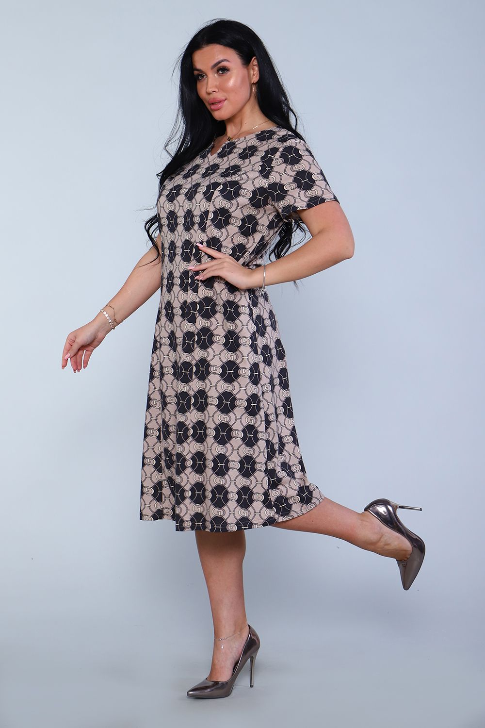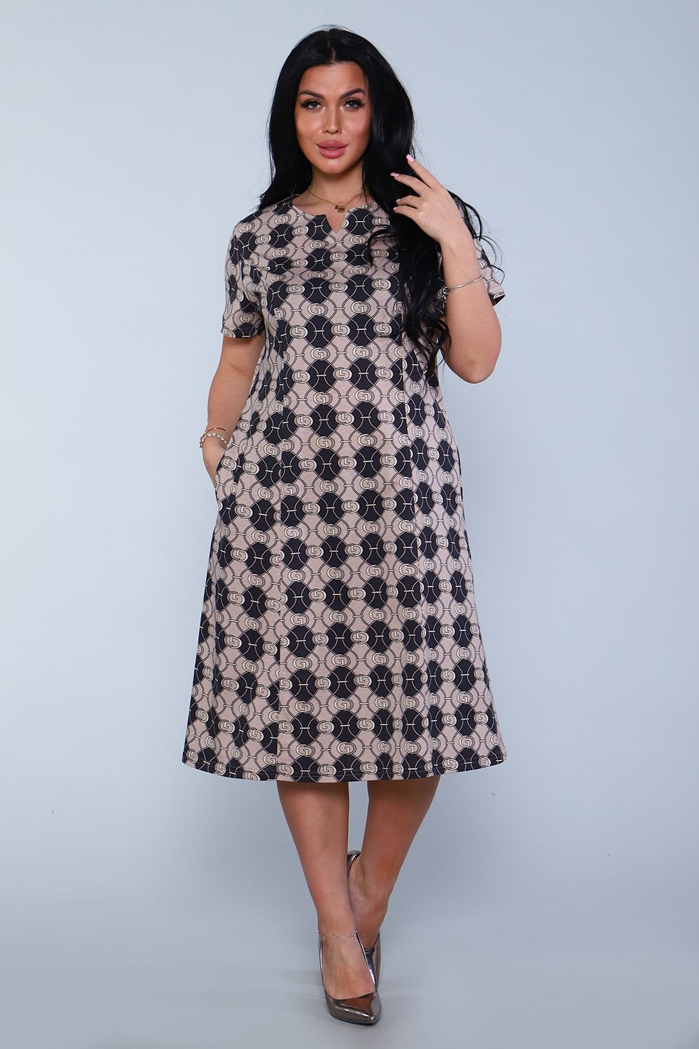Платье 11266 - шоколад/бежевый