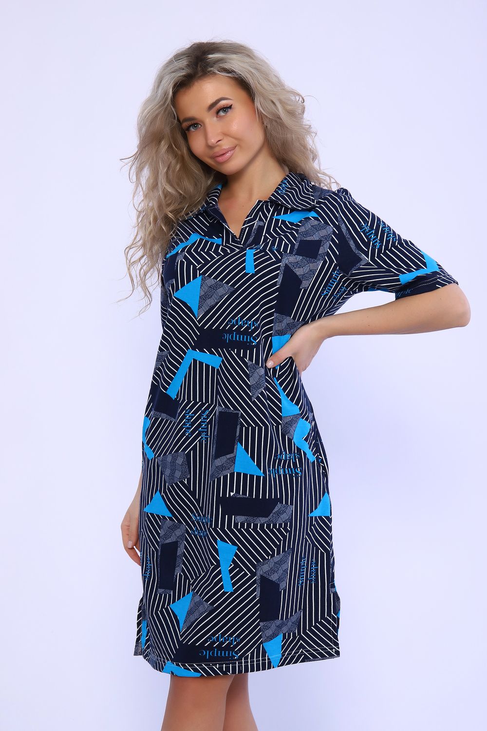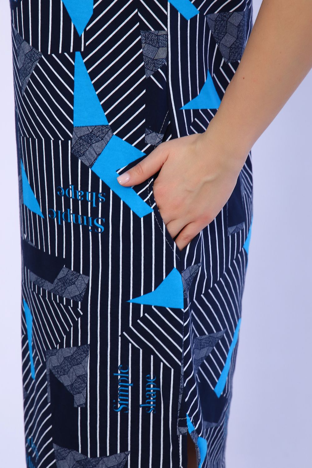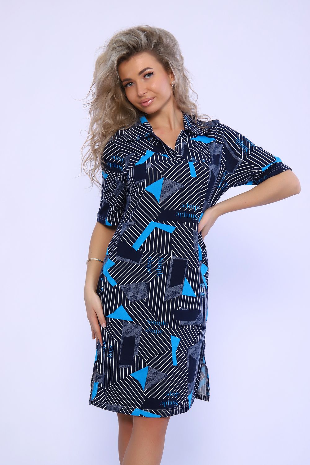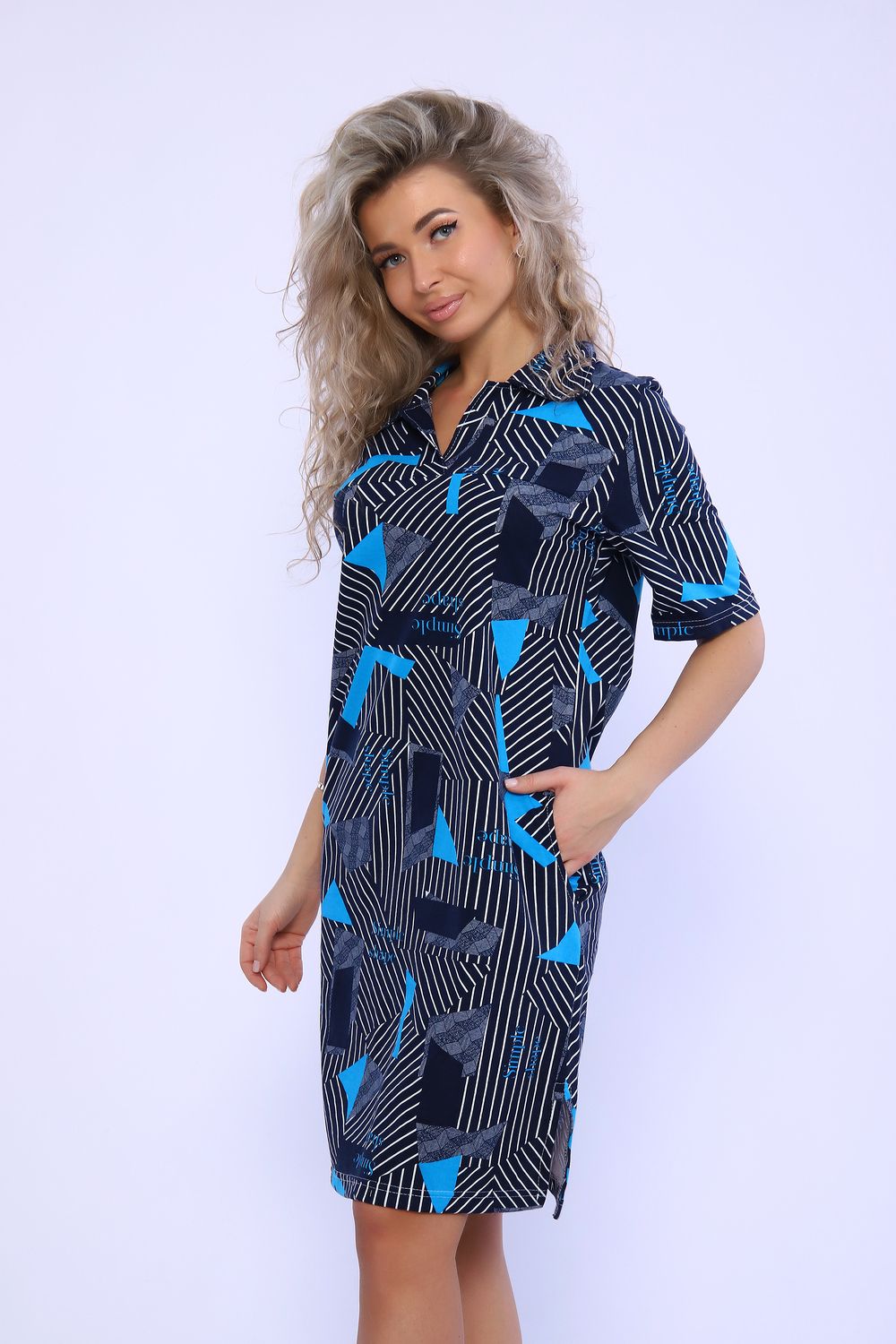 Платье с карманами и разрезами в боковых швах. Рукав короткий, рубашечный воротник. Идеальный повседневный вариант.