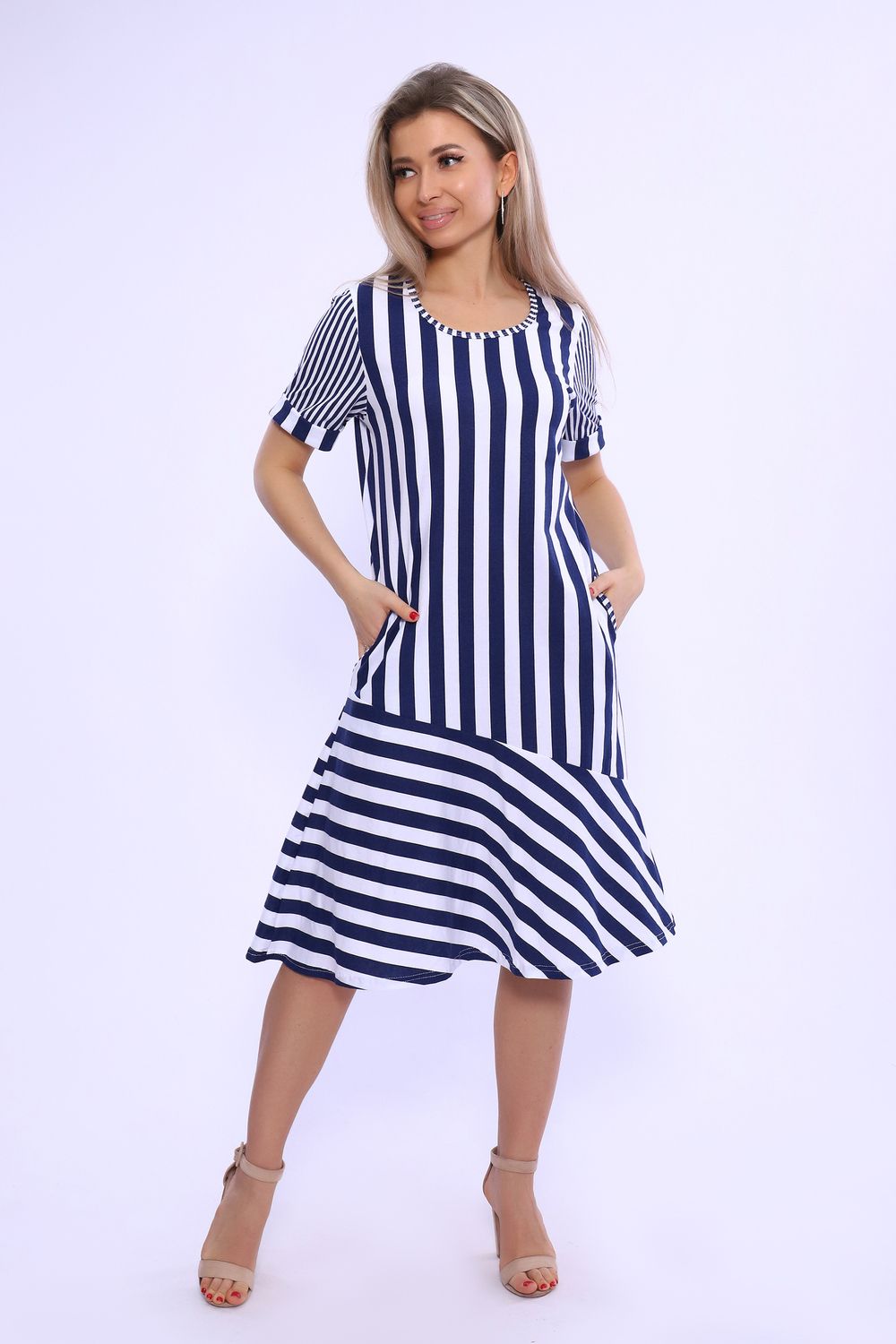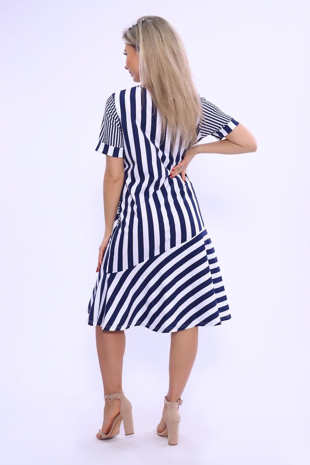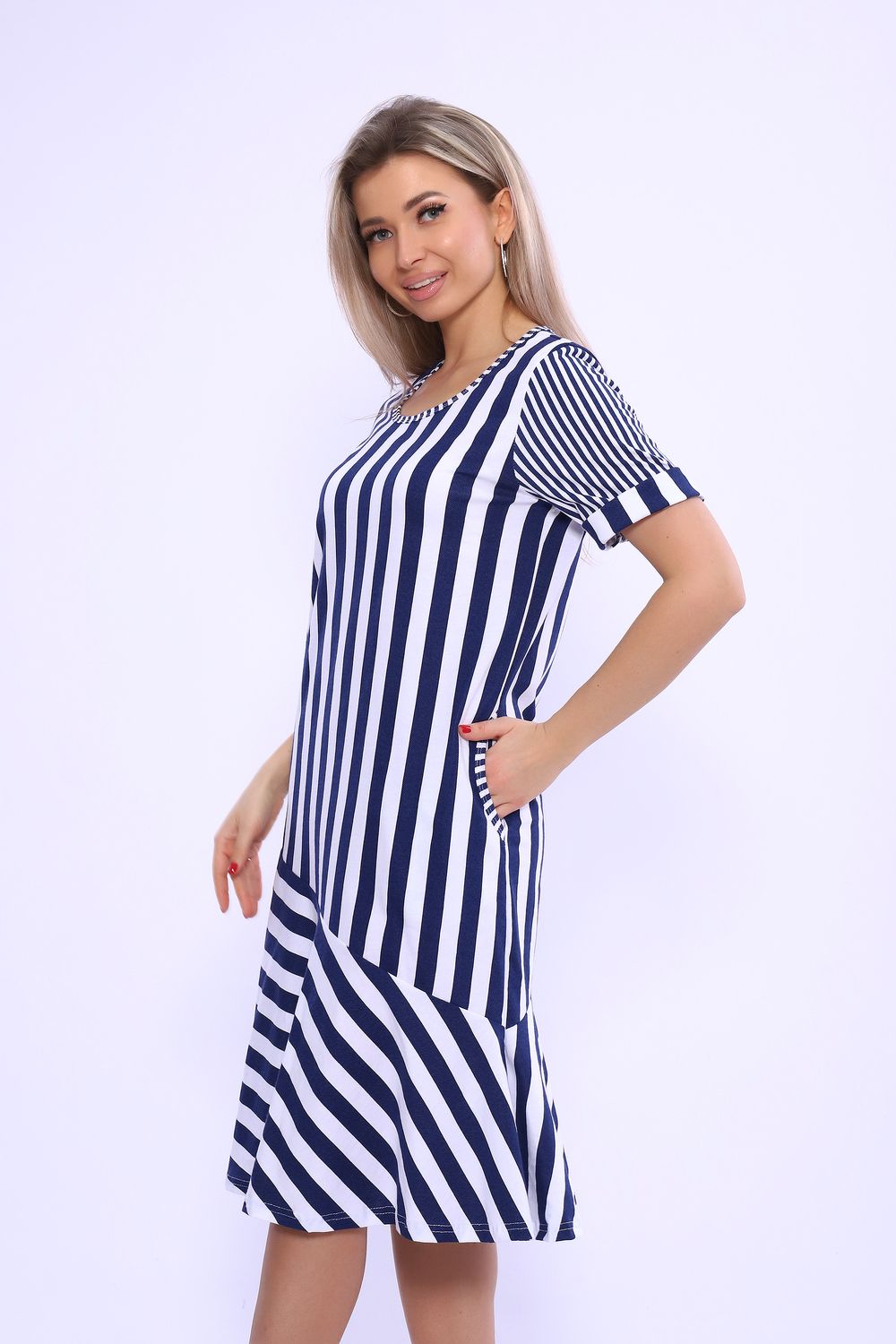 Платье полуприлегающего силуэта с короткими рукавами и карманами в боковых швах. Рукава с отворотными манжетами. По низу изделия ассиметричные воланы.