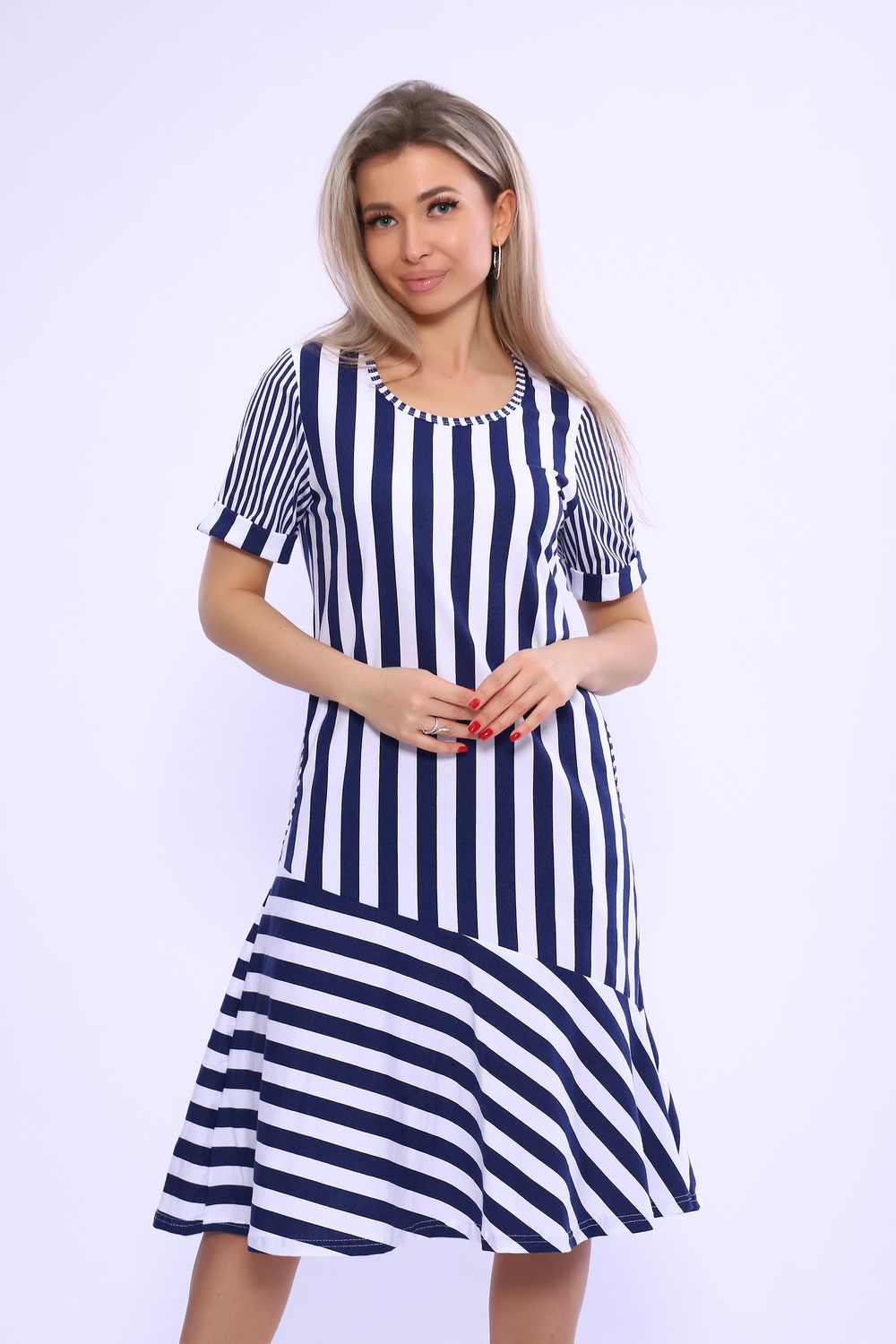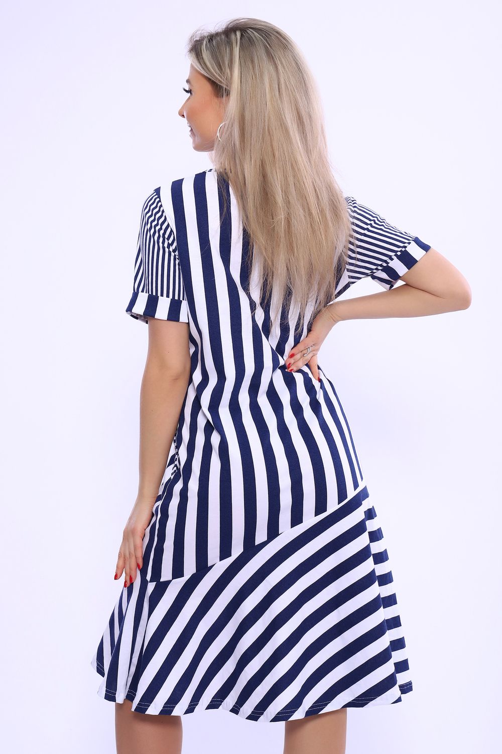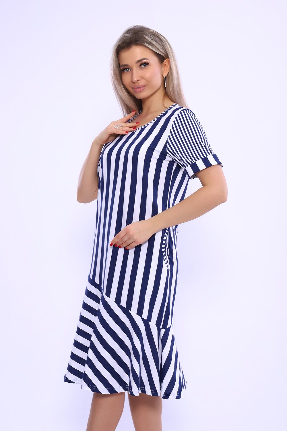 Платье полуприлегающего силуэта с короткими рукавами и карманами в боковых швах. Рукава с отворотными манжетами. По низу изделия ассиметричные воланы.