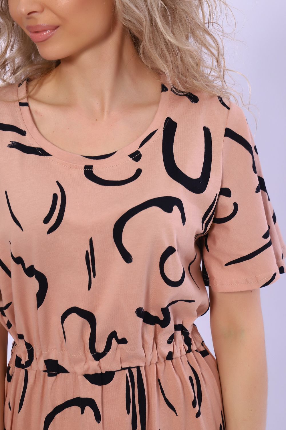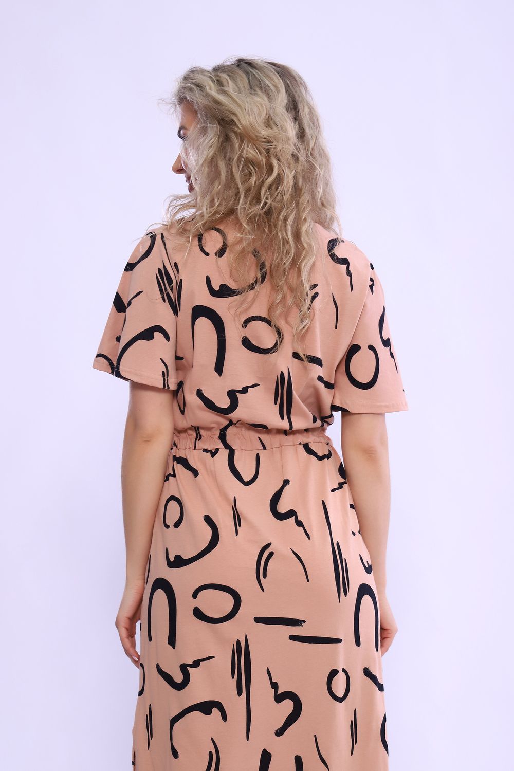Платье на кулиске с резинкой и короткими расклешенными рукавами. В боковых швах разрезы. Комфортно для повседневной носки.