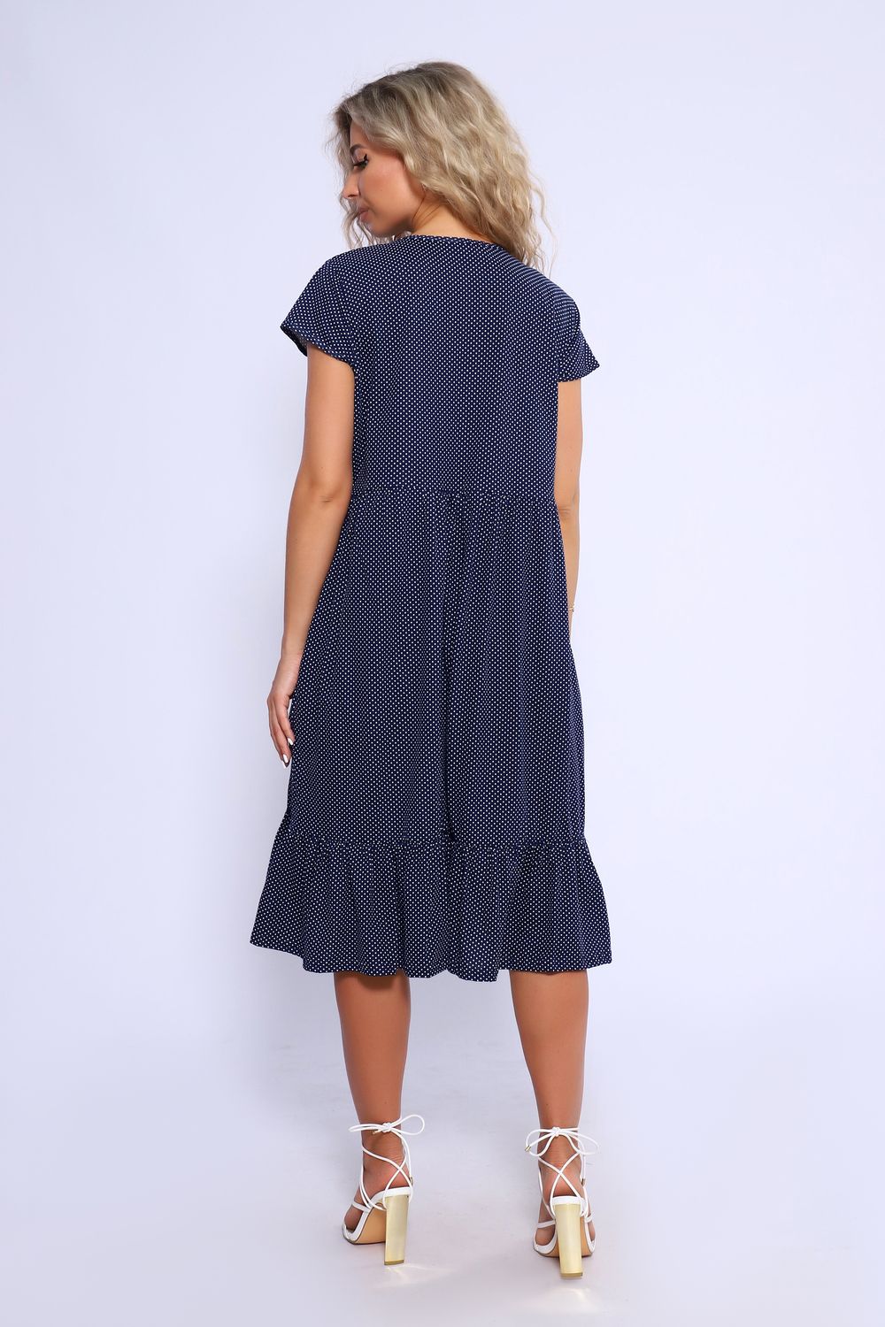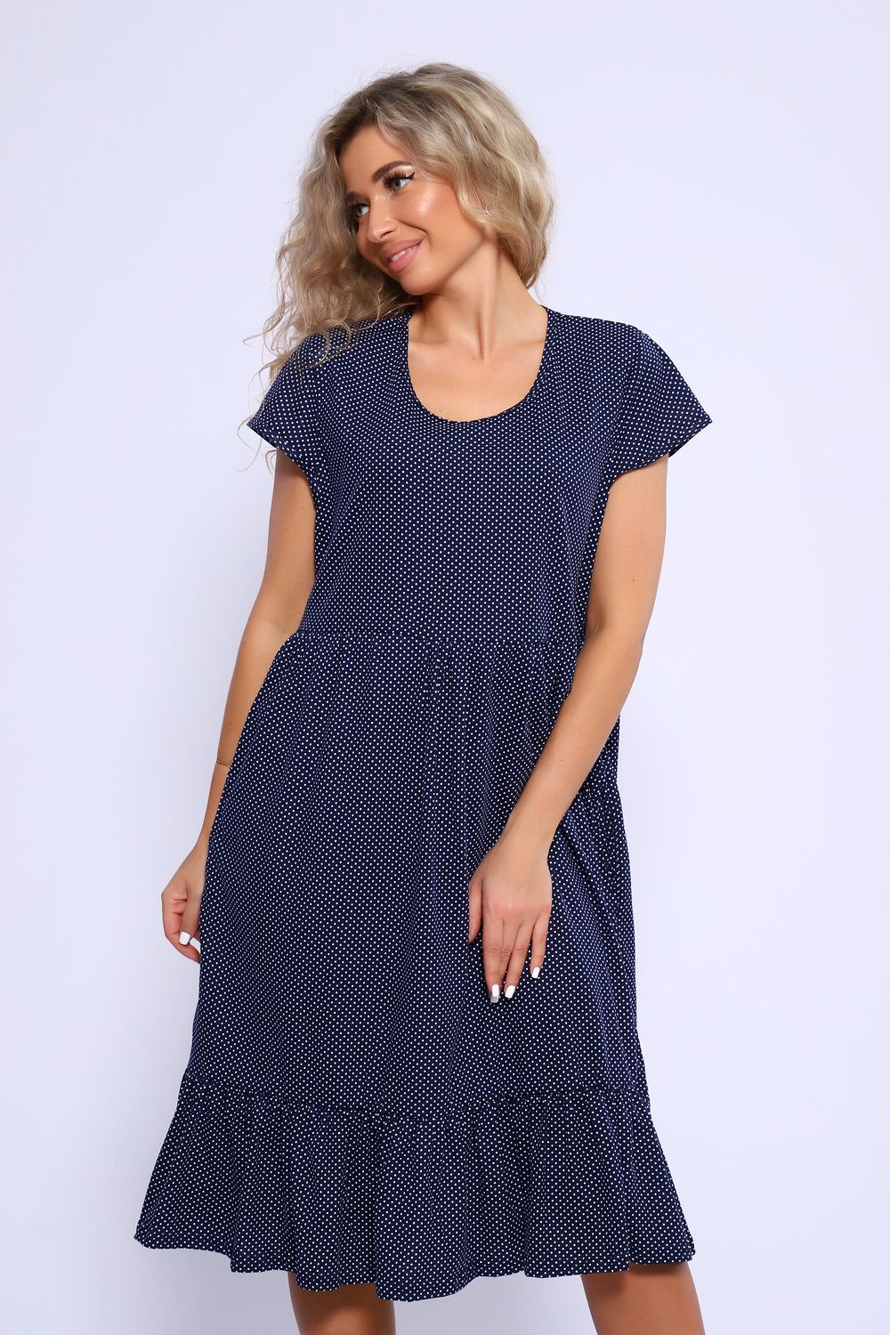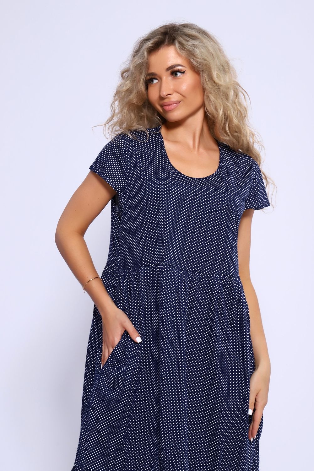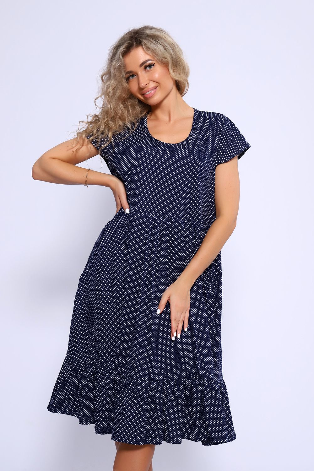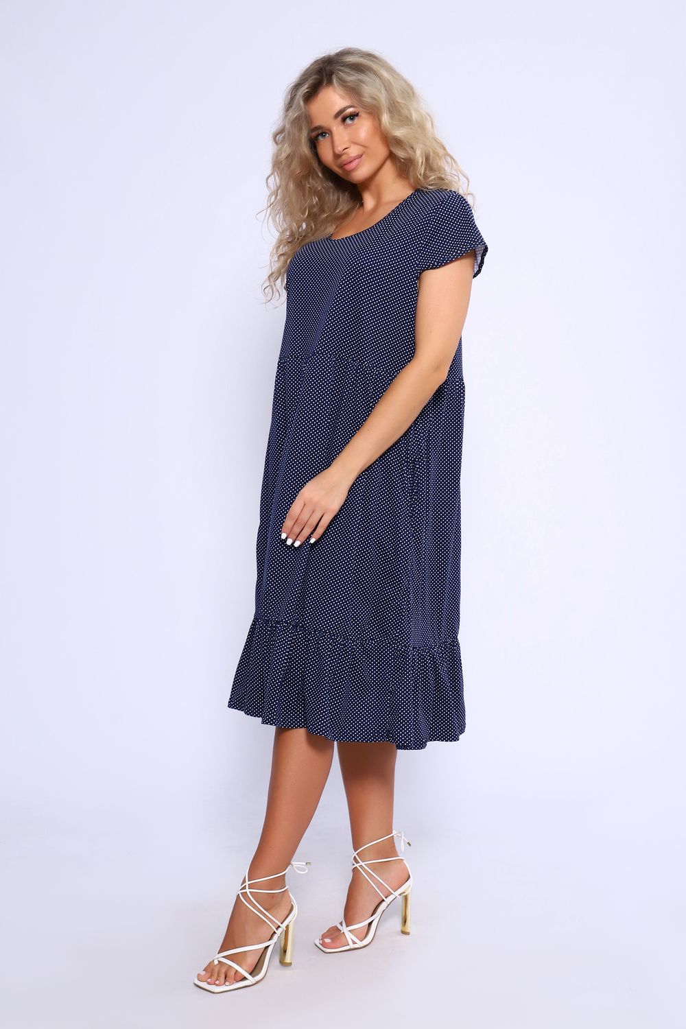 Свободное платье с короткими рукавами и двухъярусной юбкой на сборке. Карманы в боковых швах.