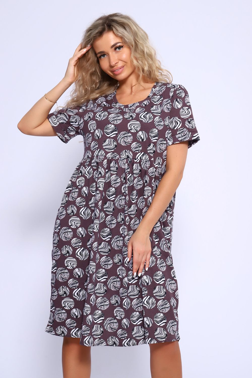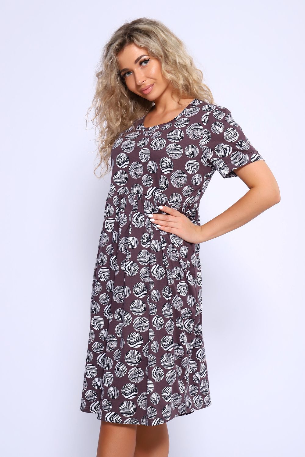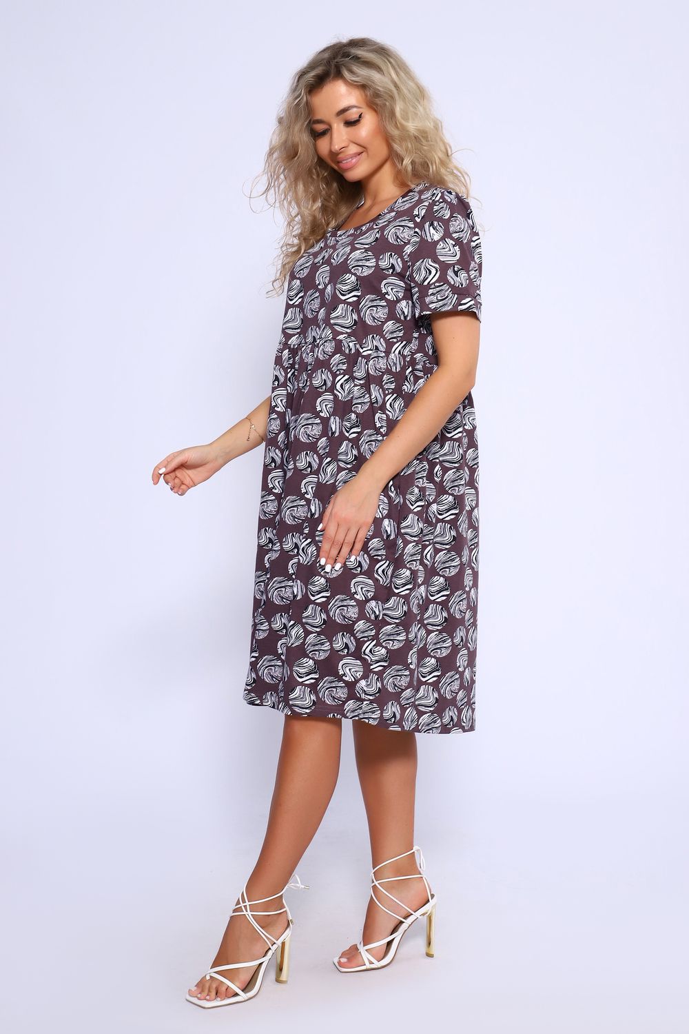 Платье полуприлегающего силуэта с короткими рукавами - фонариками. Юбка на сборке. Карманы в боковых швах.