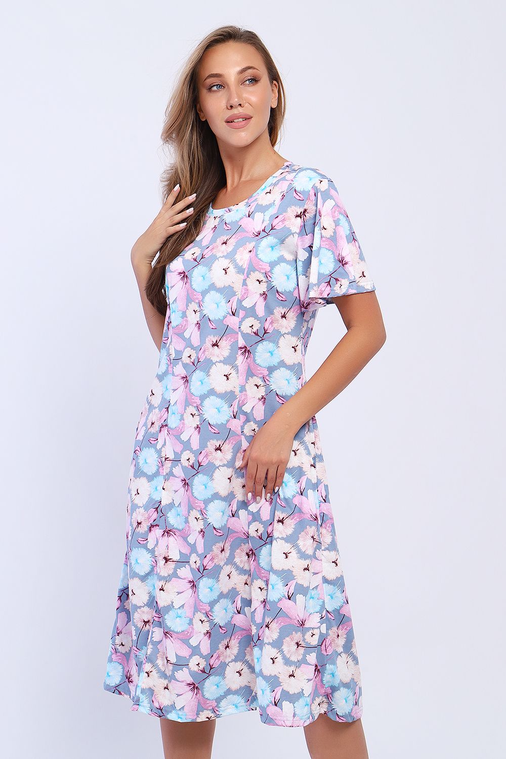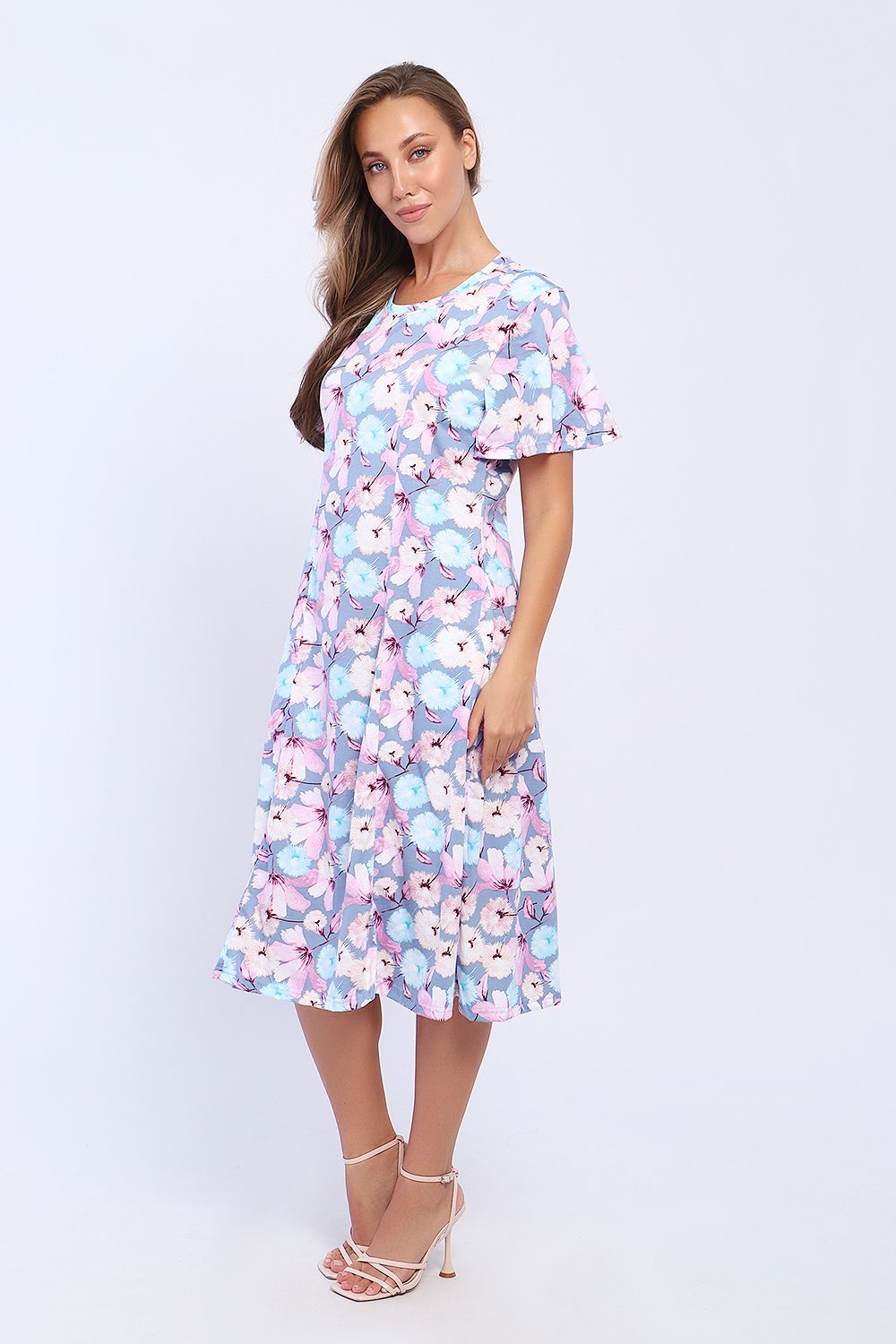 Платье полуприлегающего силуэта с короткими рукавами - крылышками. В боковых швах удобные карманы. Платье приталенное с разрезной спинкой и бочками на полочке.