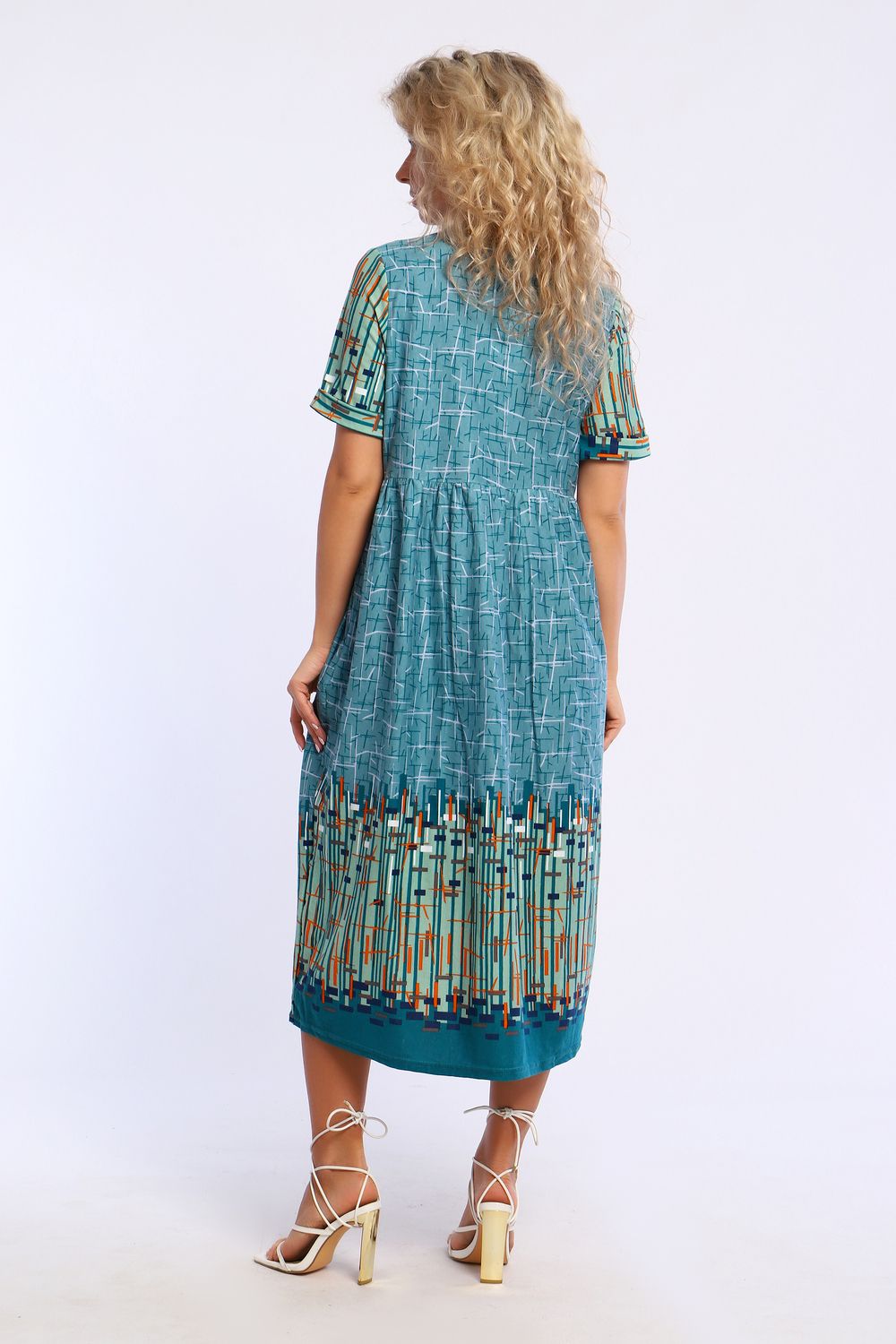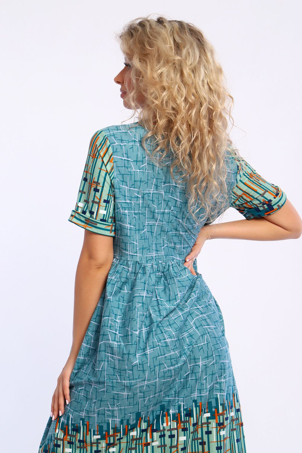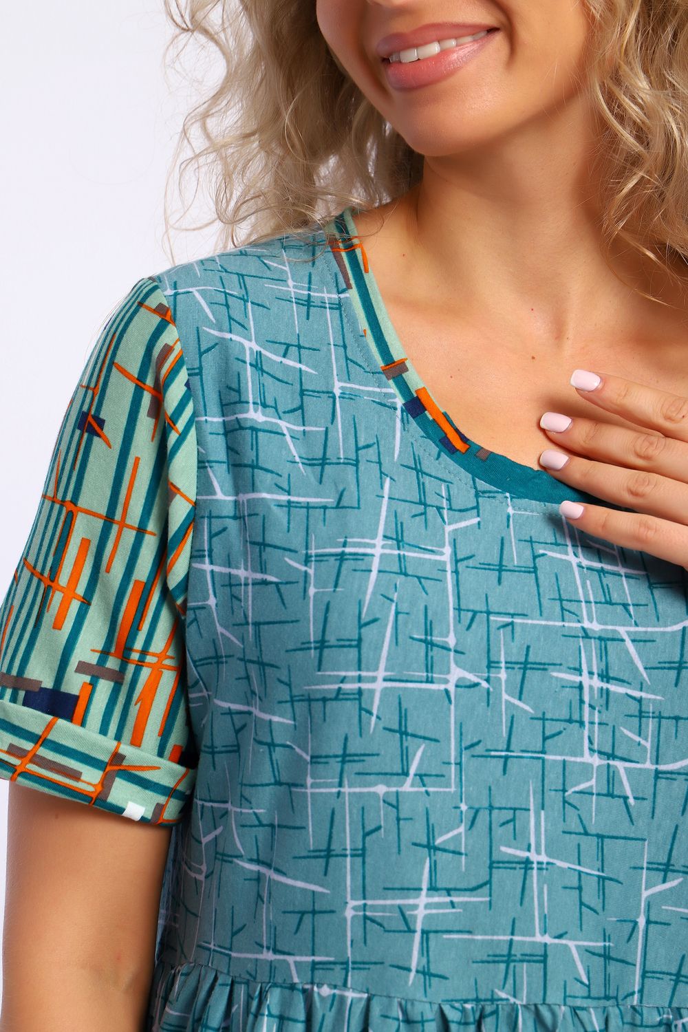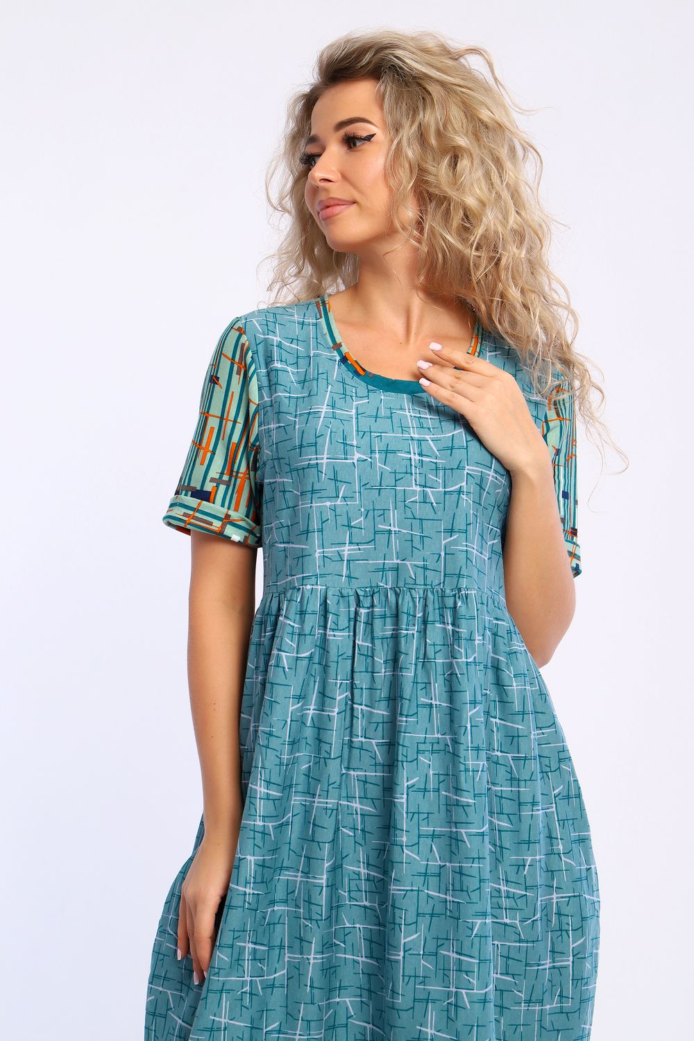Платье с юбкой на сборке и короткими рукавами. В боковых швах удобные карманы.