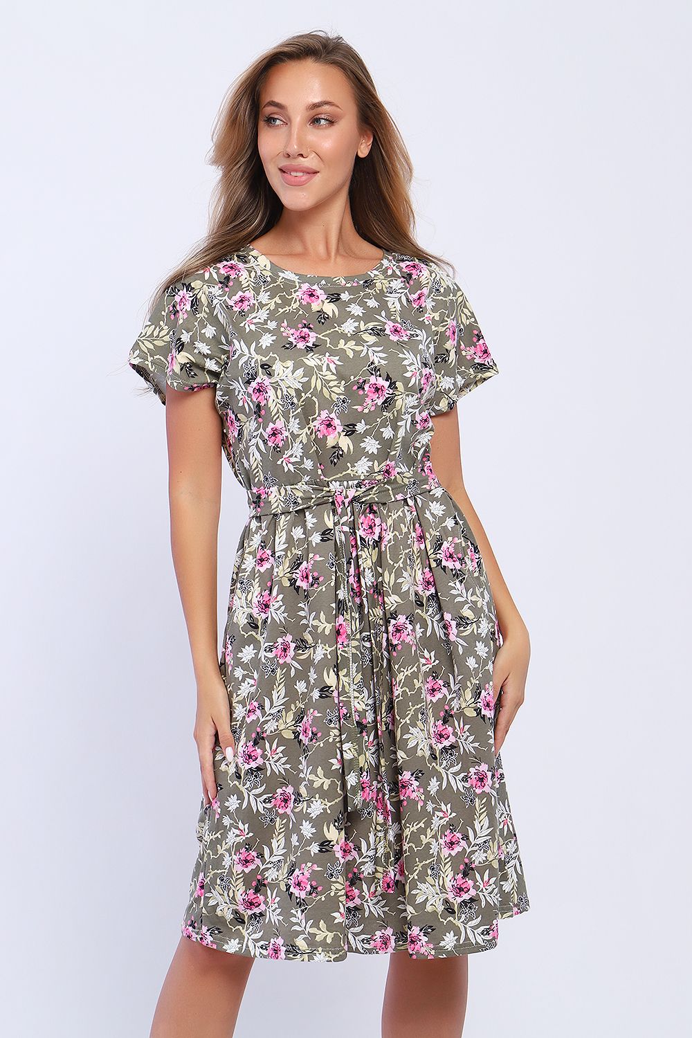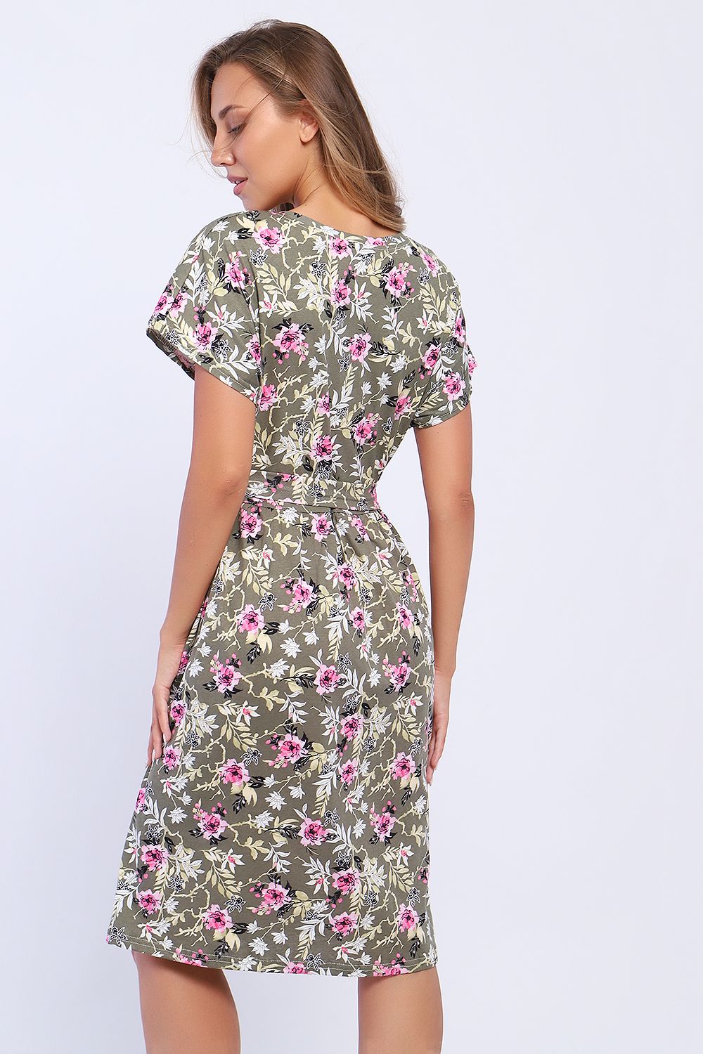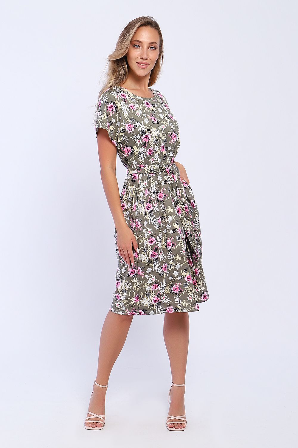Платье полуприлегающего силуэта с круглым вырезом горловины, спущенным плечом и на поясе юбка на сборке. В боковых швах удобные карманы.
