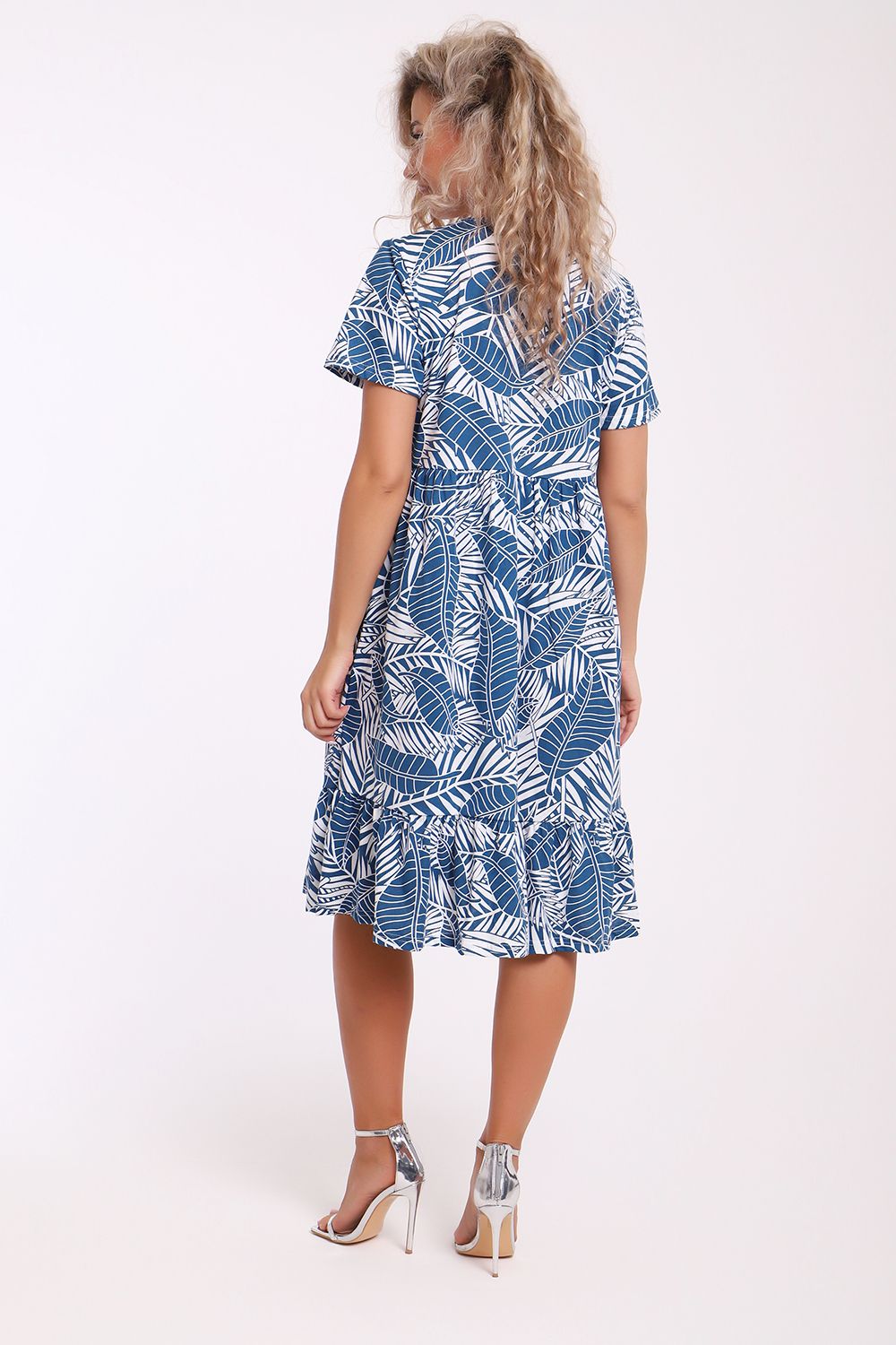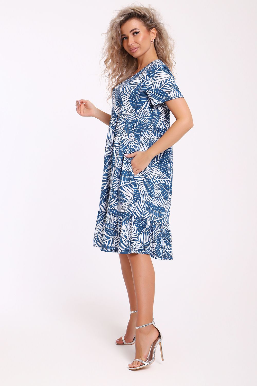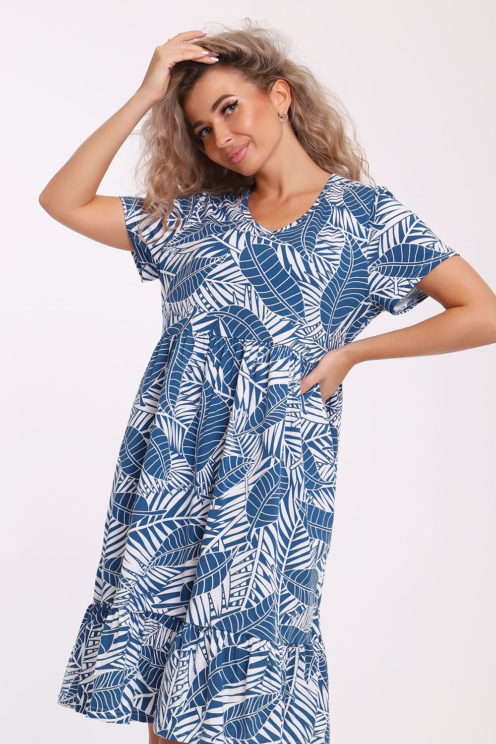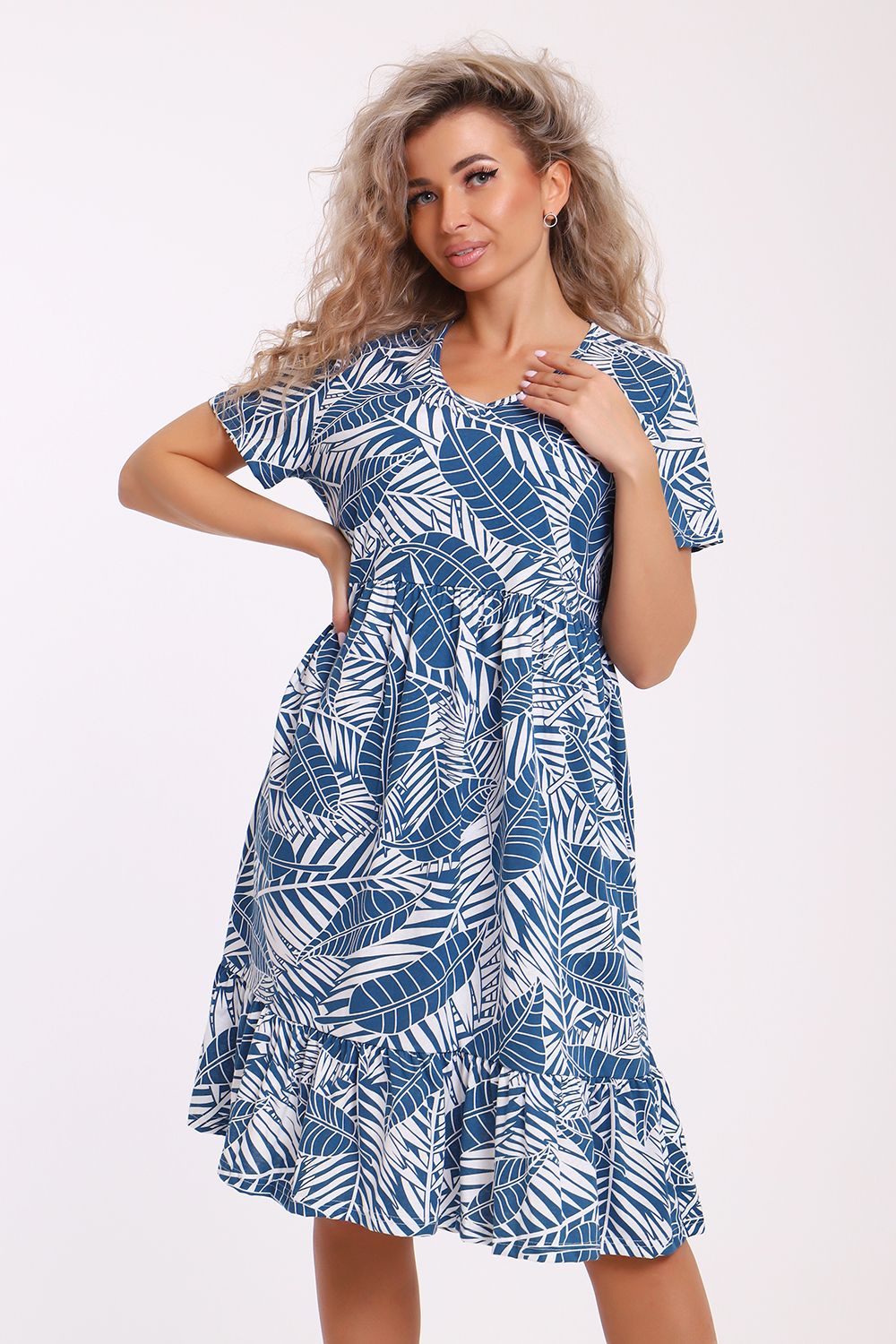 Свободное платье с короткими рукавами и двухъярусной юбкой на сборке. Карманы в боковых швах.