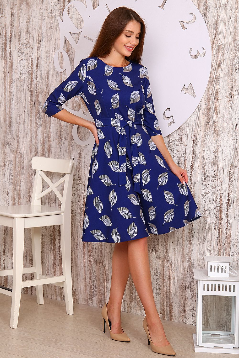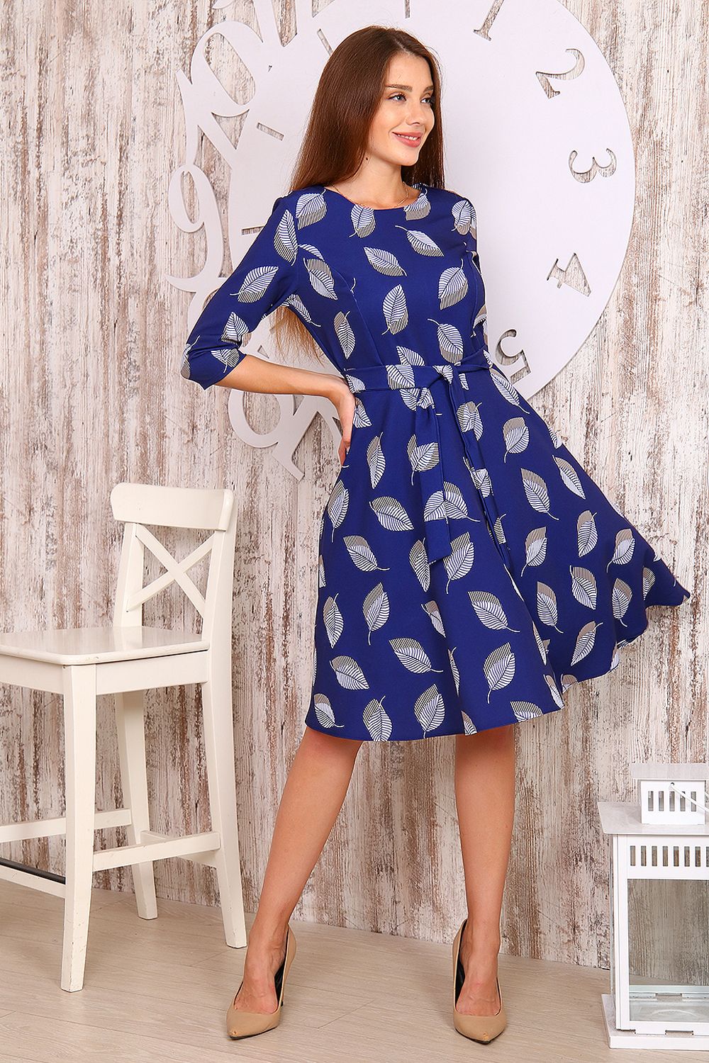 Платье-миди с приталенным верхом и струящейся юбкой, с поясом. На спинке застежка-молния. Рукав 3/4