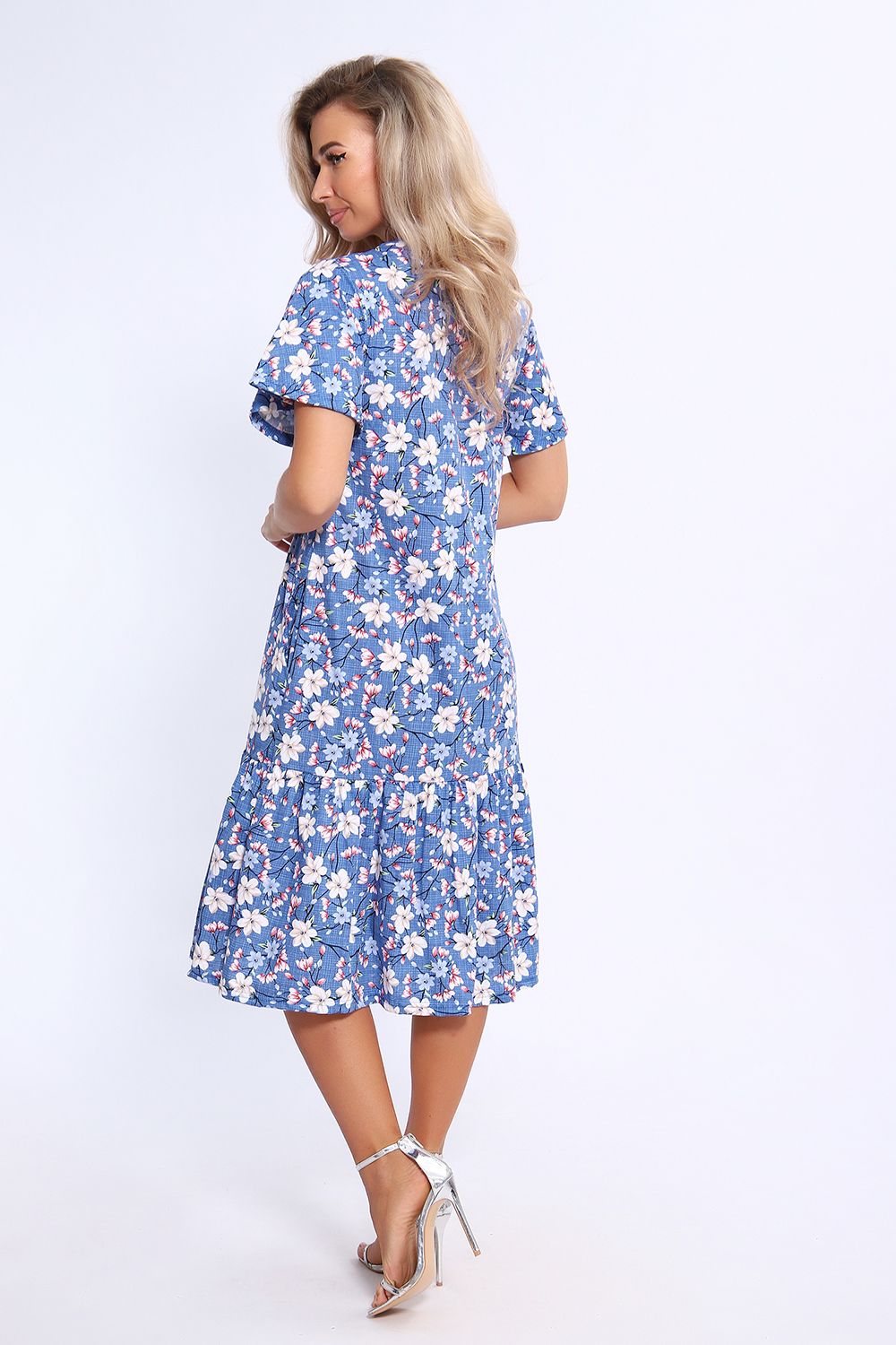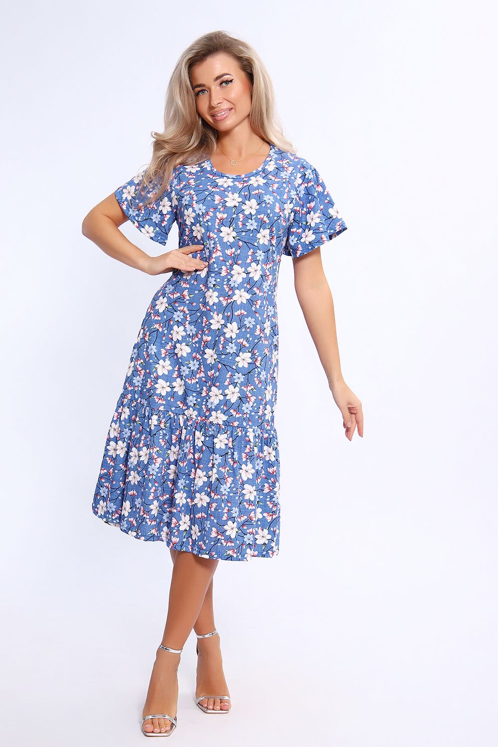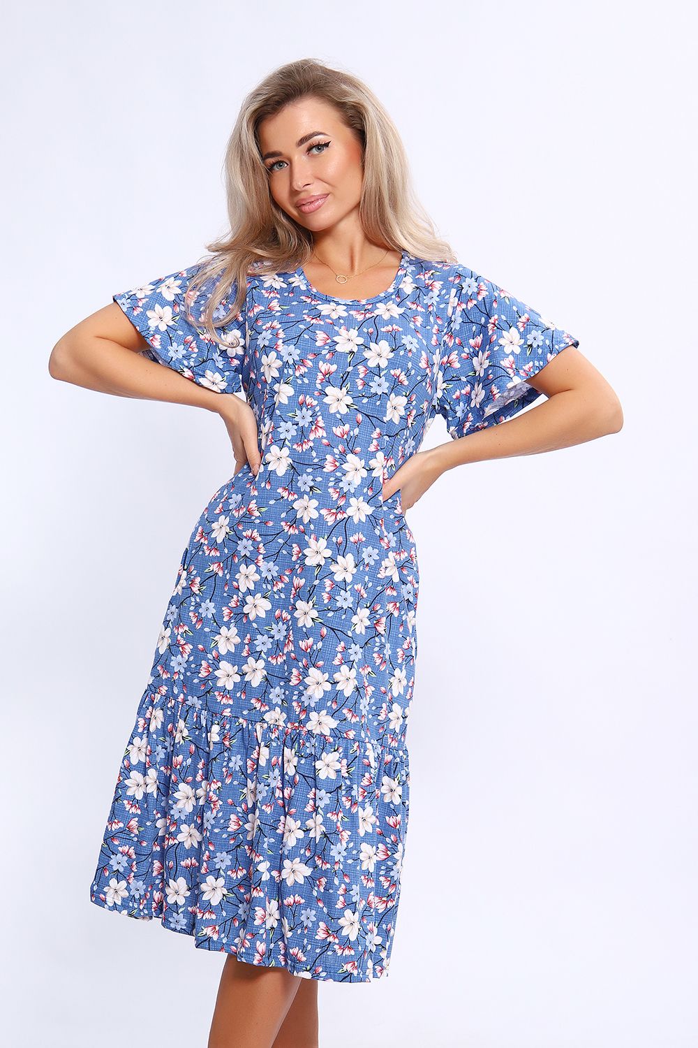 Платье свободного кроя с короткими рукавами - крылышками. По низу изделия широкий волан на сборке. Карманы в боковых швах.