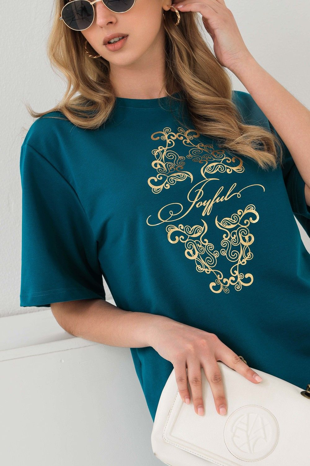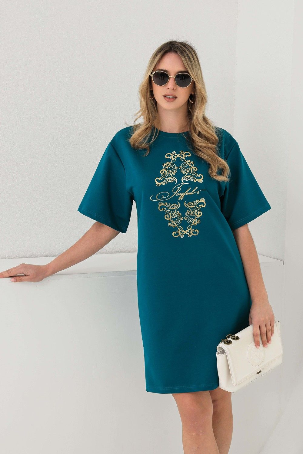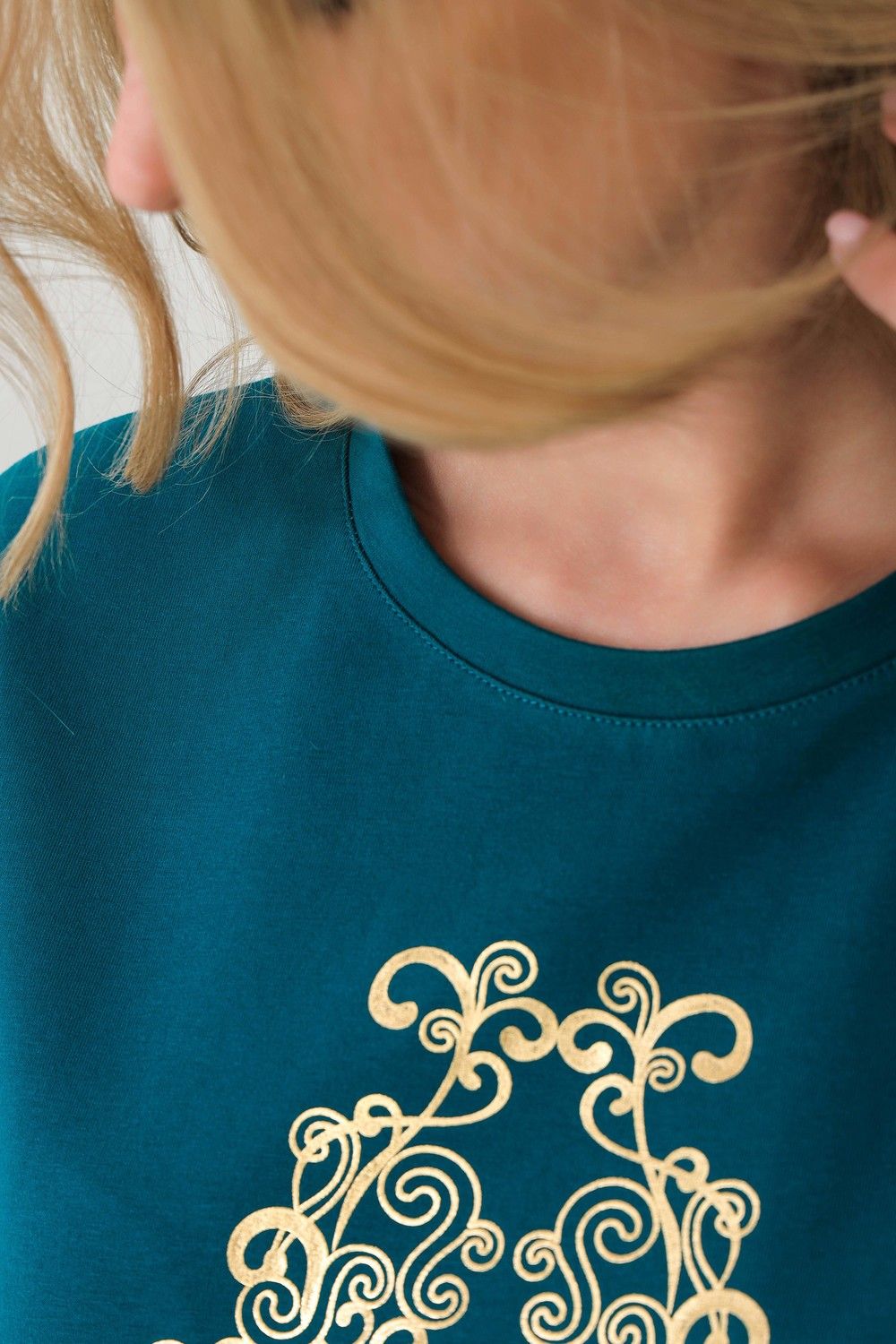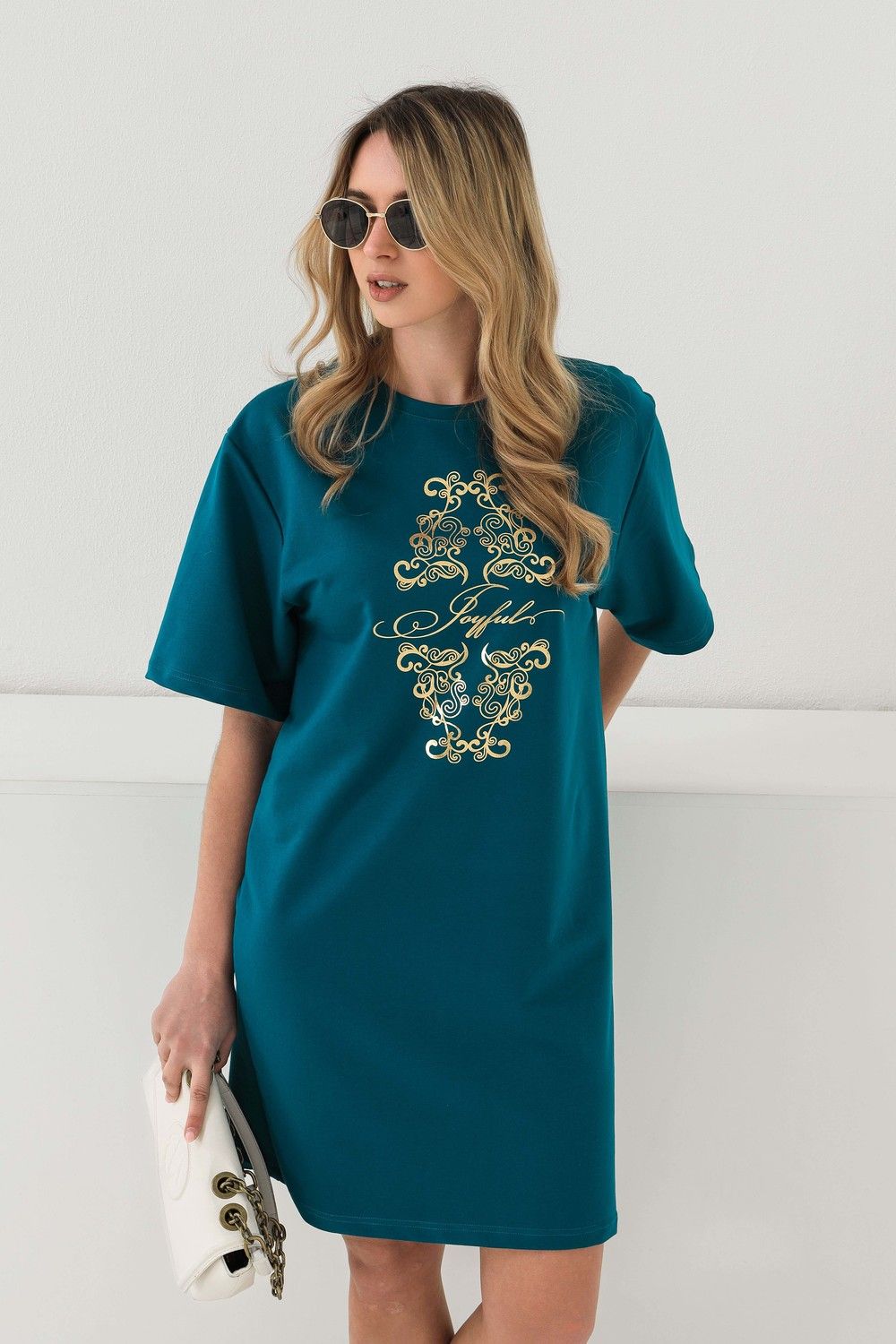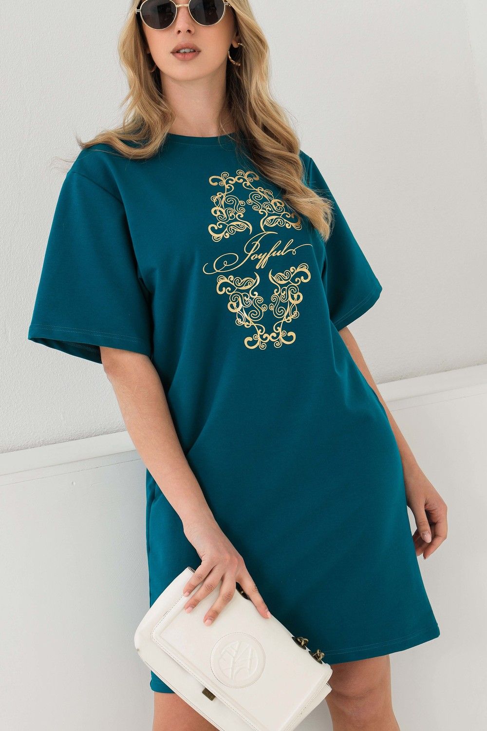 Платье для любого случая. Очень удобное, не стесняет движений, широкие рукава. Свободный модный крой. Узор в виде орнамента из золотой фольги. Рекомендации к стирке: вывернуть изделие, деликатная стирка при 30 градусах. Модно. Качественно. Для тебя.
