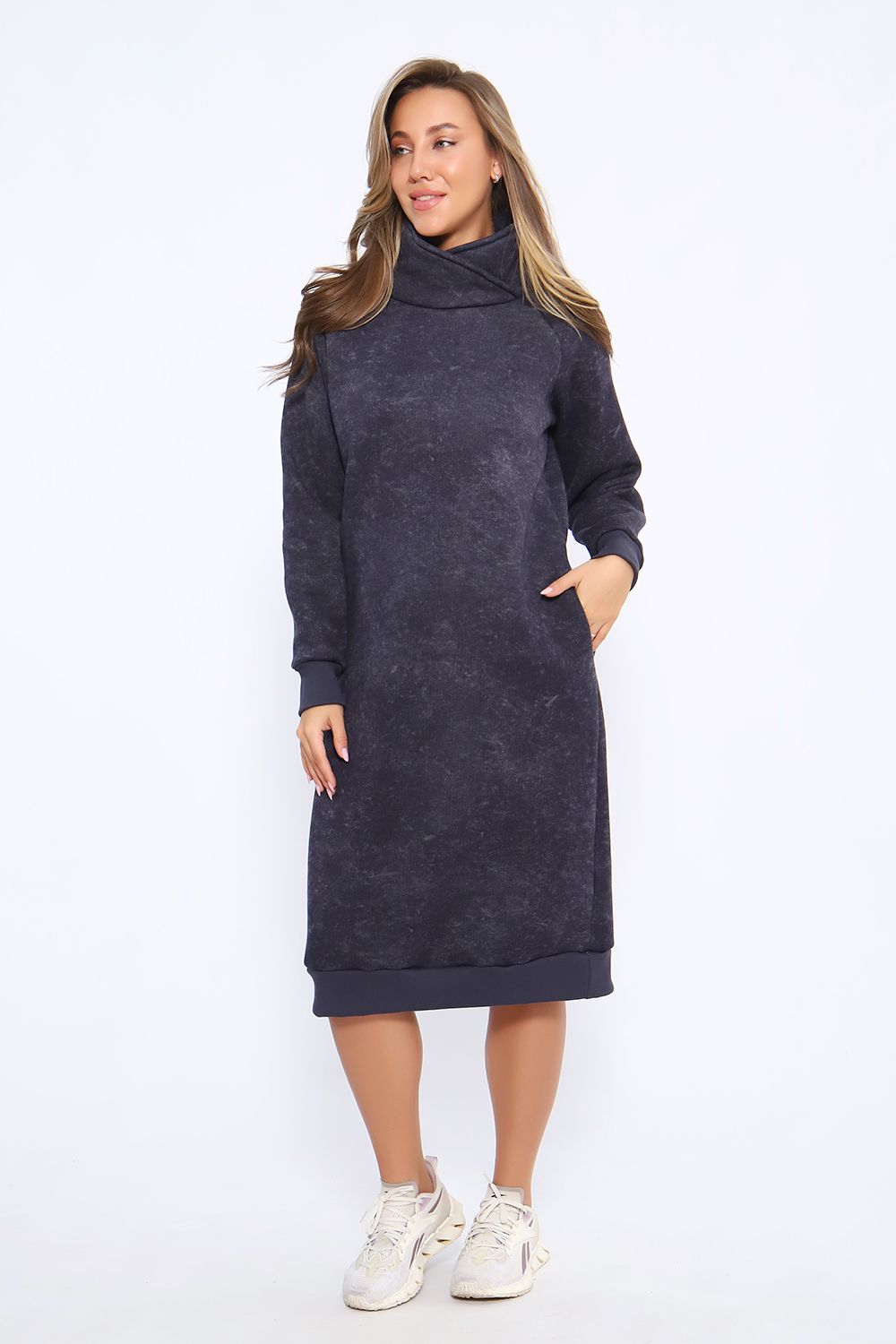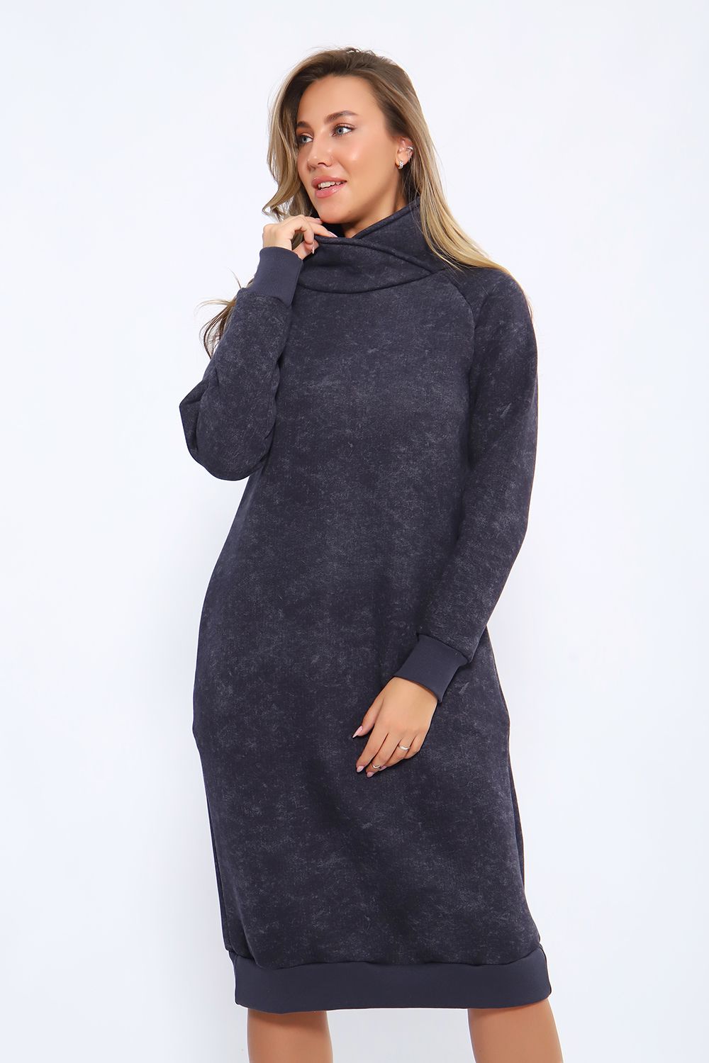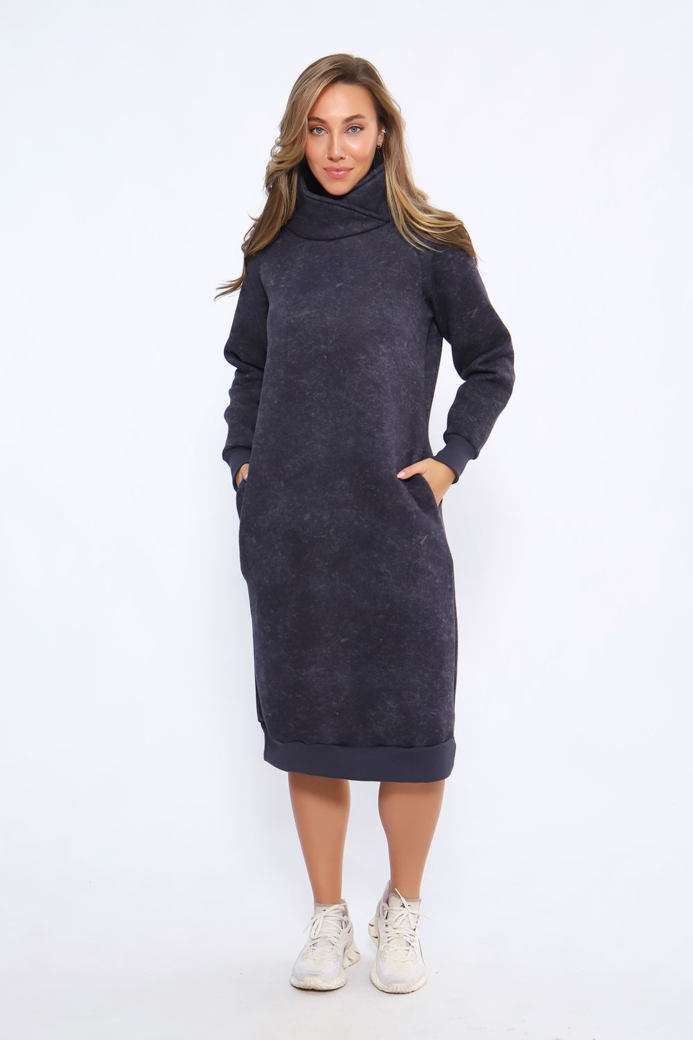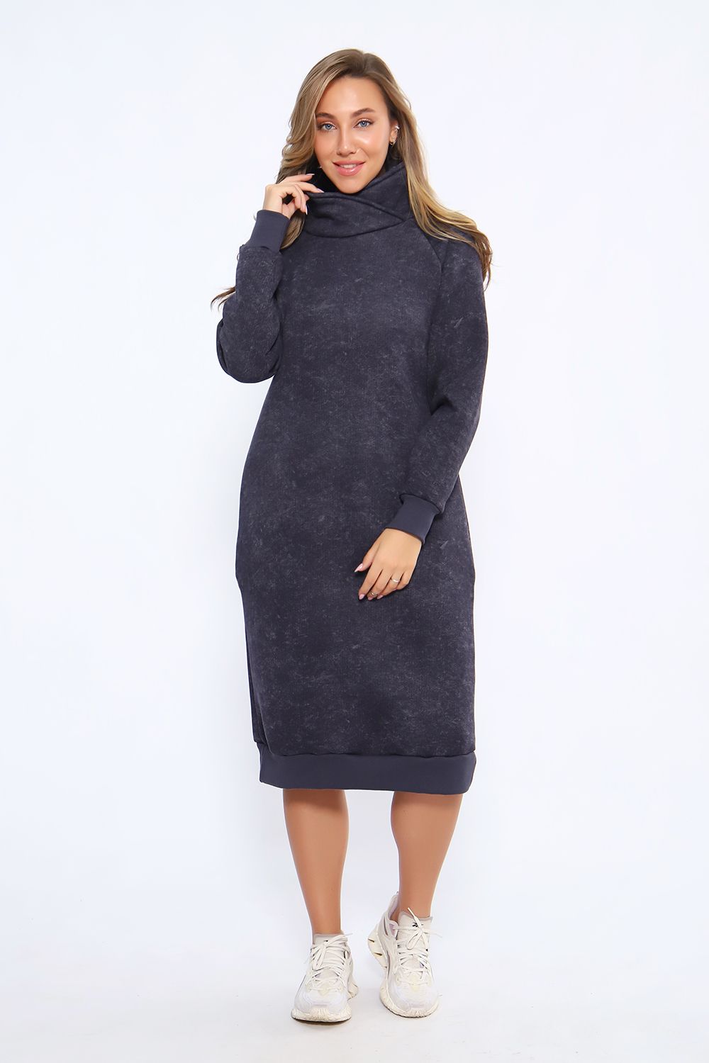 Теплое женское платье в спортивном стиле выполнено из футера пенье с начесом, прекрасный вариант для вечерних прогулок. Спортивное платье с начесом идеально на холодное время года. Крой платья женского обеспечит идеальную посадку по фигуре, платье по рукавам и низу изделия отделано эластичными манжетами. В боковых швах трикотажного женского платья глубокие карманы. Повседневное платье в стиле спорт шик - это красивая комфортная и теплая женская одежда на каждый день.