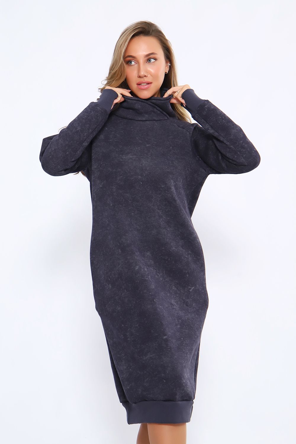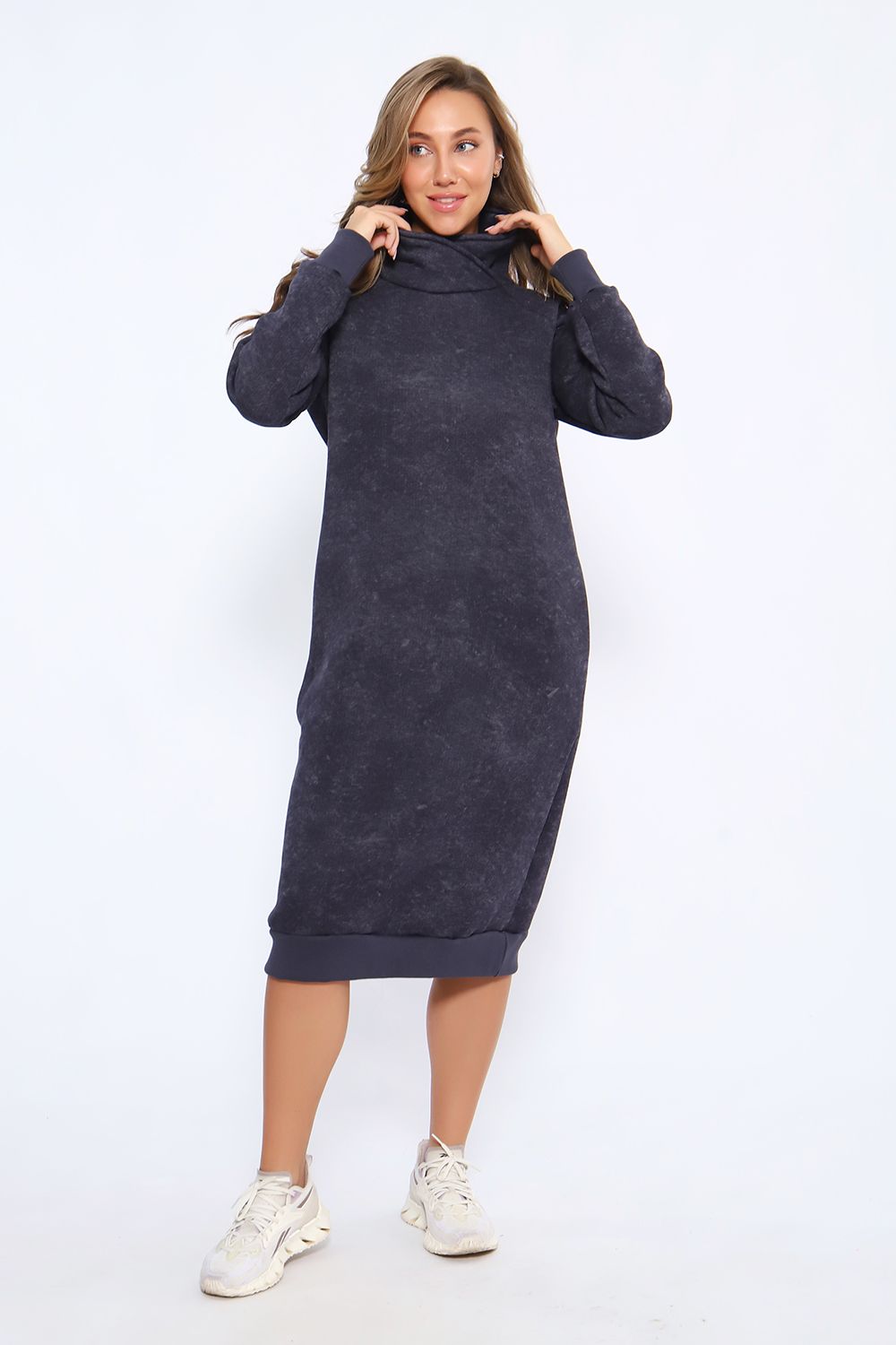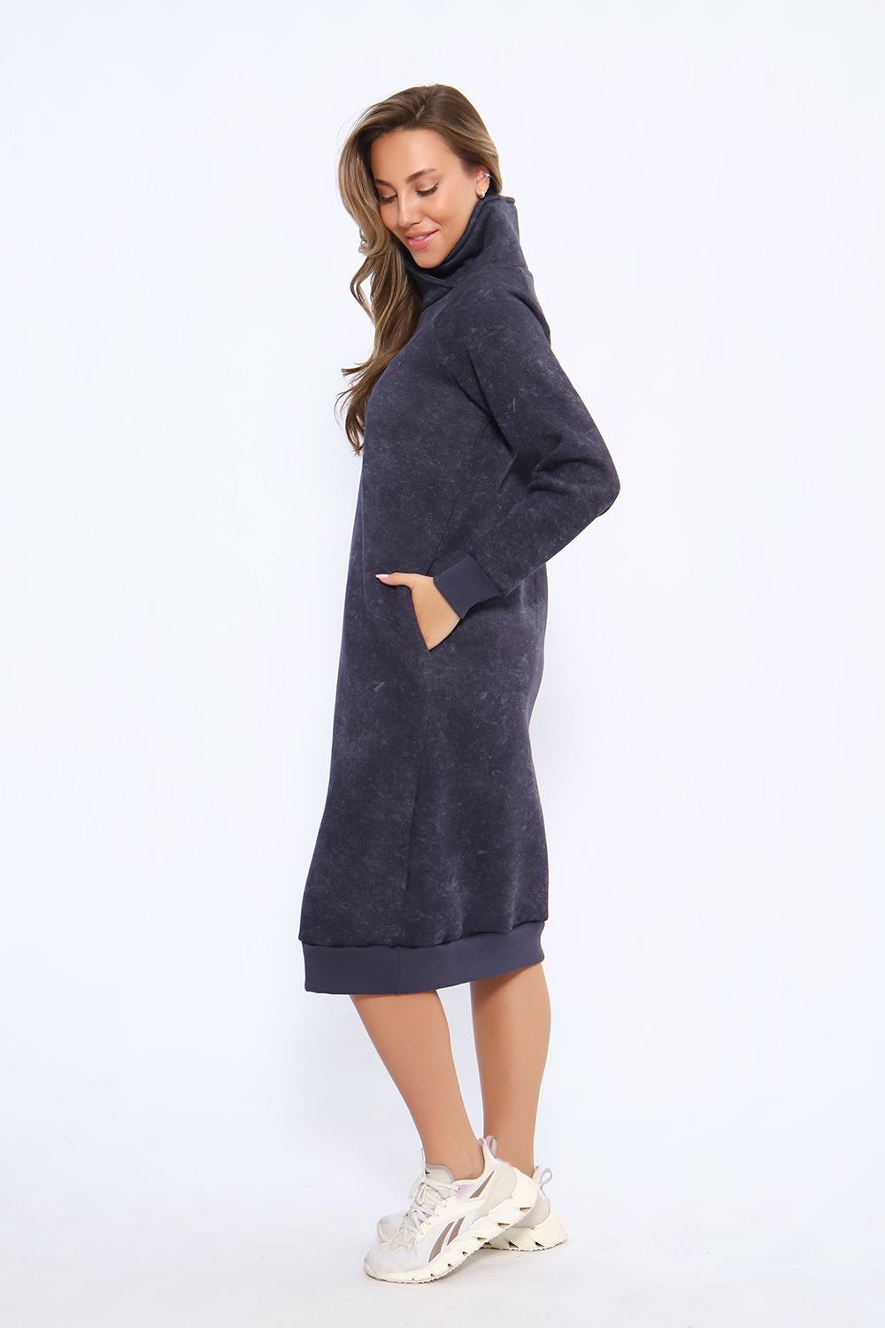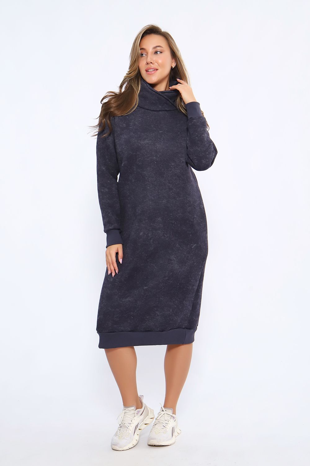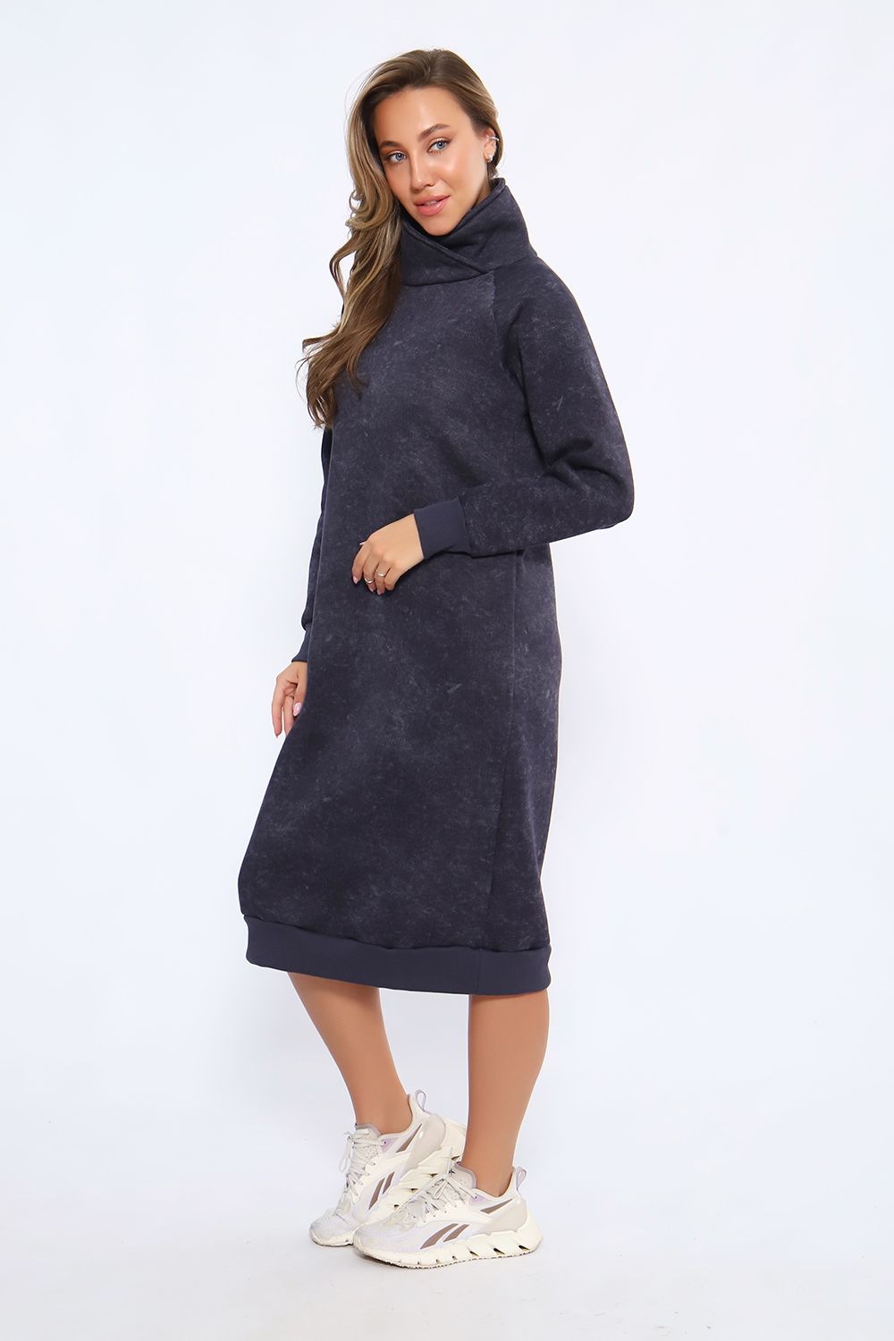 Теплое женское платье в спортивном стиле выполнено из футера пенье с начесом, прекрасный вариант для вечерних прогулок. Спортивное платье с начесом идеально на холодное время года. Крой платья женского обеспечит идеальную посадку по фигуре, платье по рукавам и низу изделия отделано эластичными манжетами. В боковых швах трикотажного женского платья глубокие карманы. Повседневное платье в стиле спорт шик - это красивая комфортная и теплая женская одежда на каждый день.