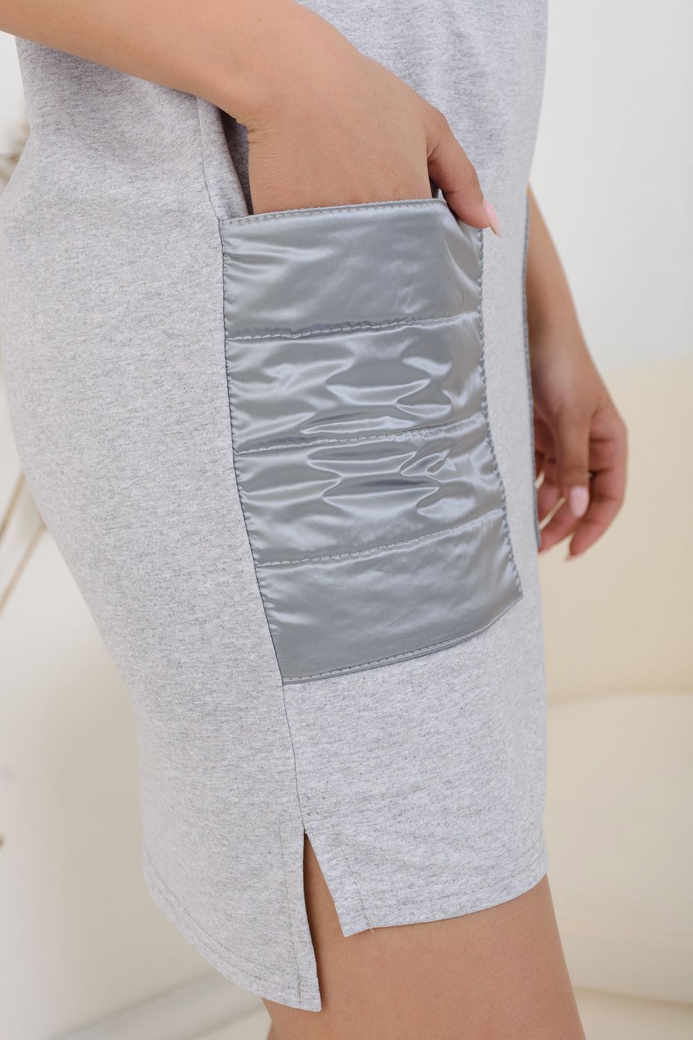Молодёжное платье с принтом, слегка приталенного силуэта, комбинированное - футер с лайкрой 2-х нитка и стёганая плащёвка на синтепоне. Горловина обработана обтачкой в виде "лодочки", спущенная пройма, рукав 3/4 с отворотом - имитацией манжета. Спинка удлинена, по бокам имеются небольшие разрезы. Функциональное и комфортное платье с накладными стёгаными карманами - то, что нужно для современной модницы. Стёганые элементы в одежде - это тренд сезона, они придают платью экстравагантность и индивидуальность.