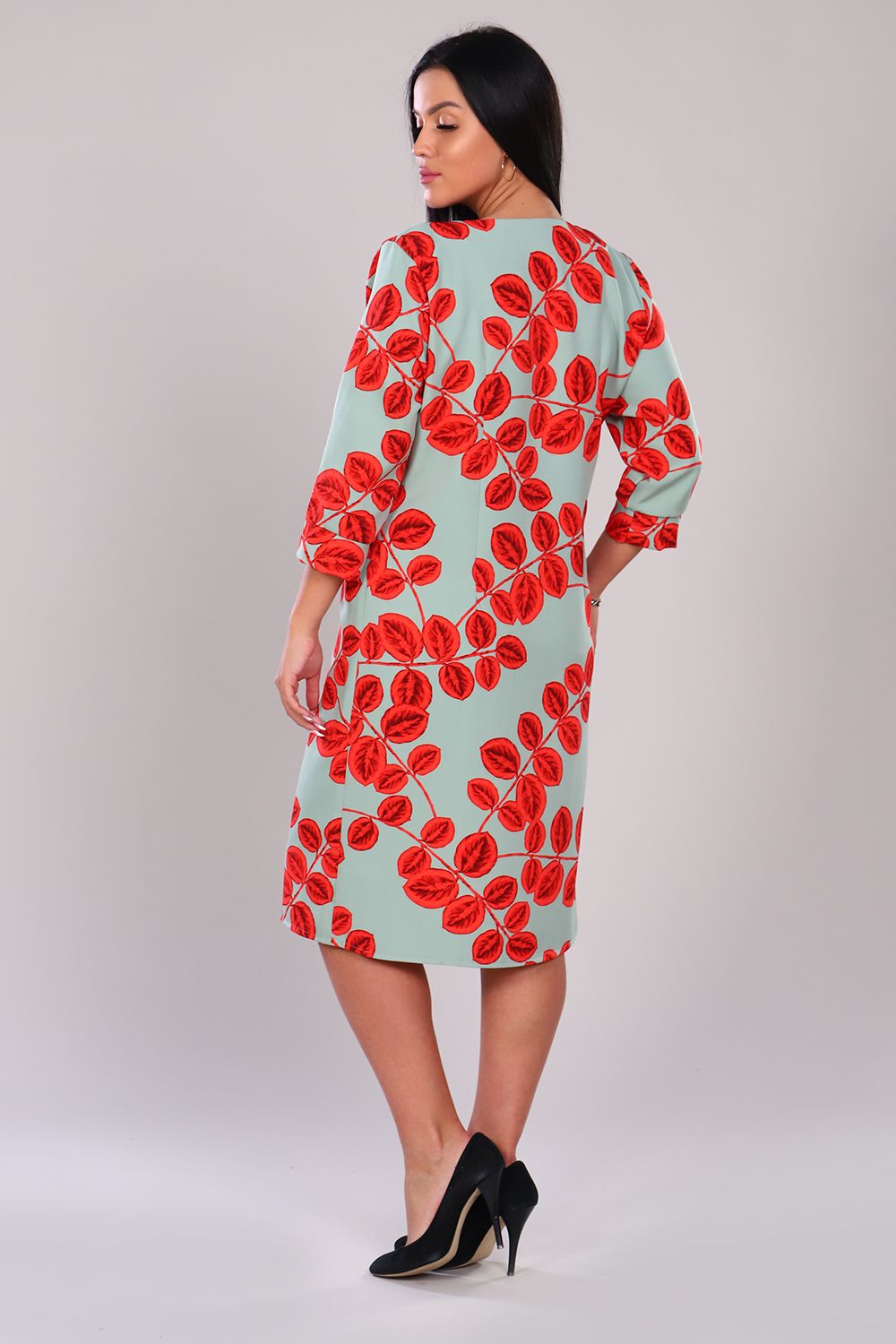 Классическое платье с цветочным принтом станет одной из любимых вещей в вашем гардеробе. Рукав 3/4 на манжете, на спине заложены вытачки.