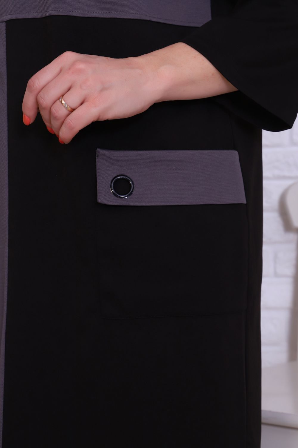 Повседневное платье силуэта летучая мышь станет практичной вещью в гардеробе любой женщины. Оригинальное сочетание двух цветов дополняет накладной карман. Горловина отделана кантом