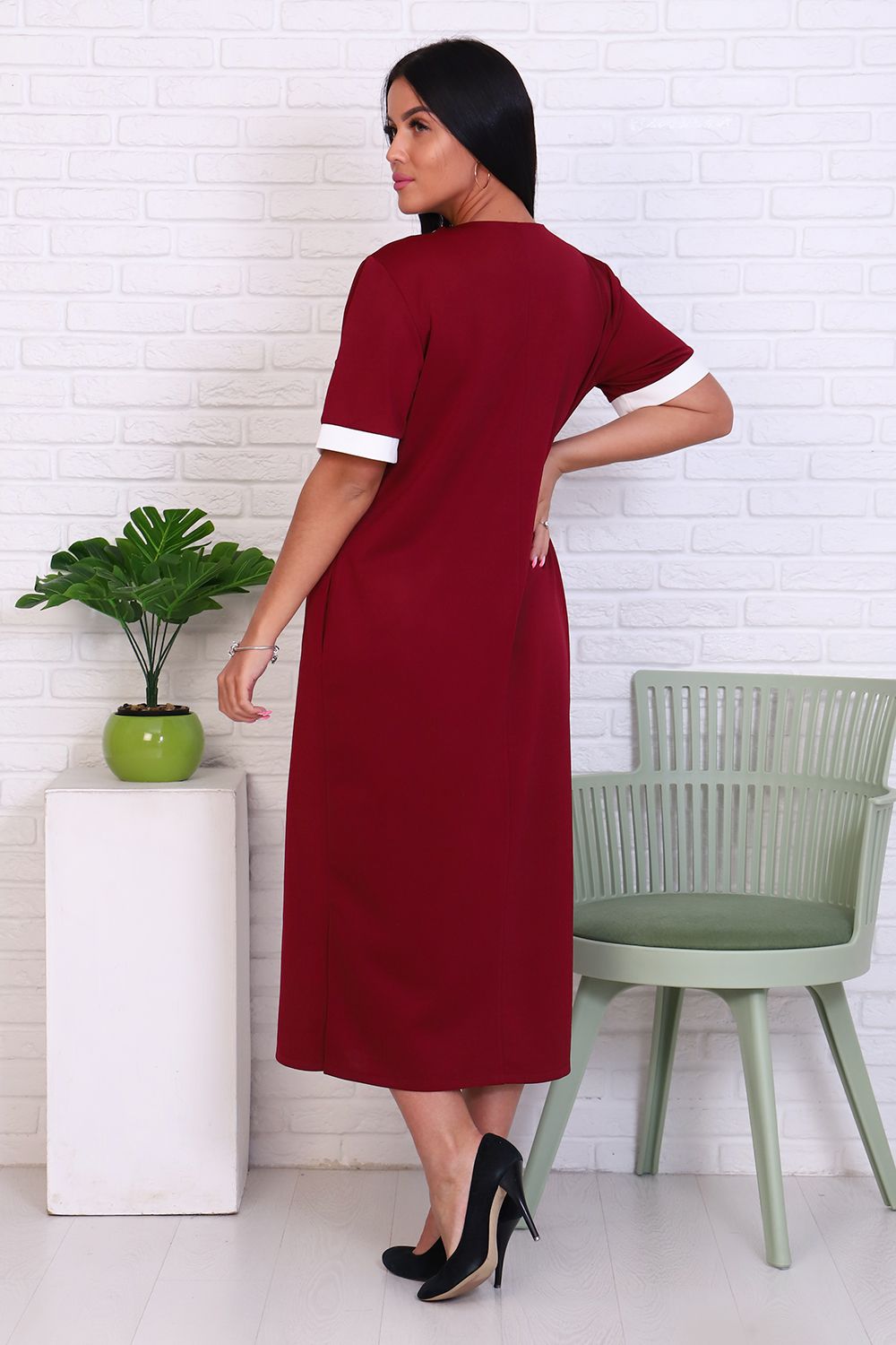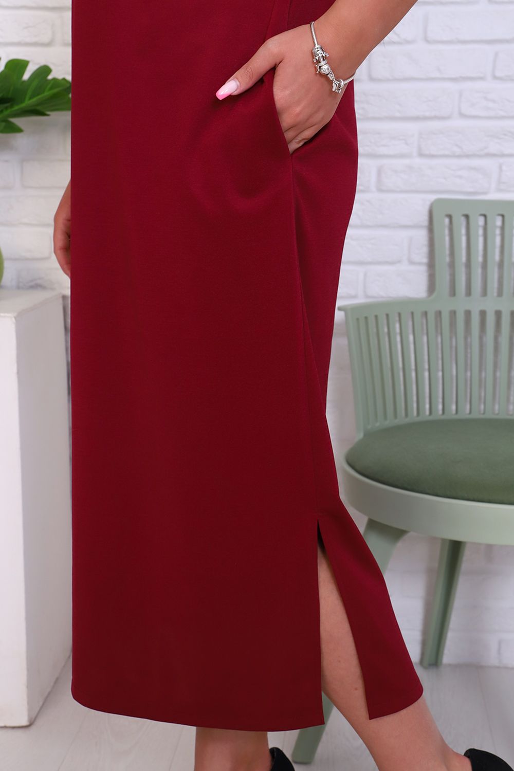 Платье удлиненное прямого кроя. Округлая горловина, планка на молнии. Короткий рукав на манжете. По бокам потайные карманы. По бокам изделия разрезы. Платье гармонично смотрится как с легкими туфельками, так и с удобными кроссовками.