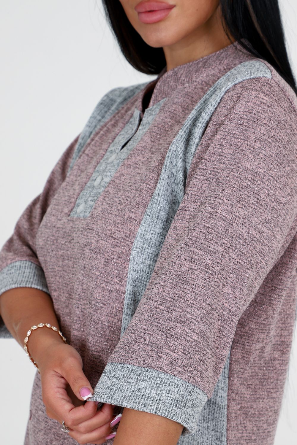 Уникальное платье прямого кроя – ваш идеальный выбор для создания элегантного образа. Это комбинированное платье с декоративными пуговицами на планке и воротником стойка-мандарин. Рукав 3/4 на манжете добавляет особый шарм этому наряду.