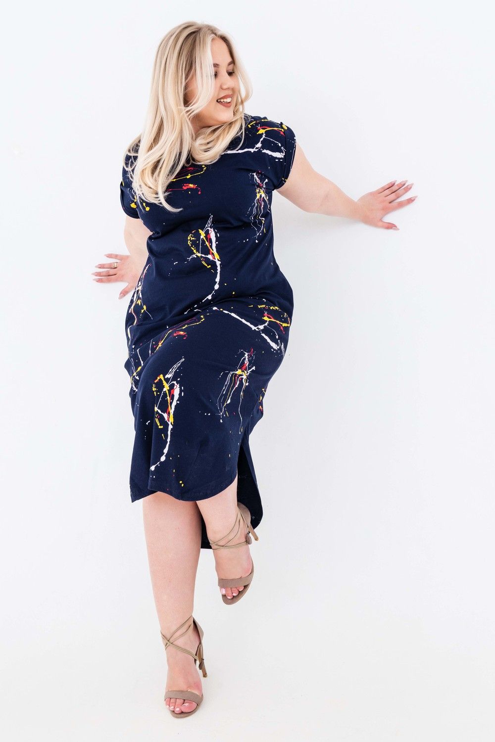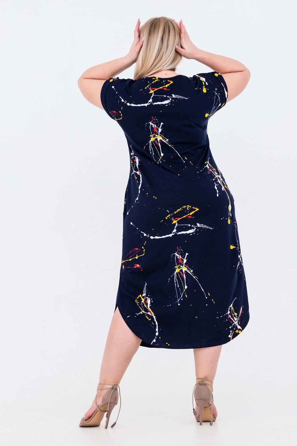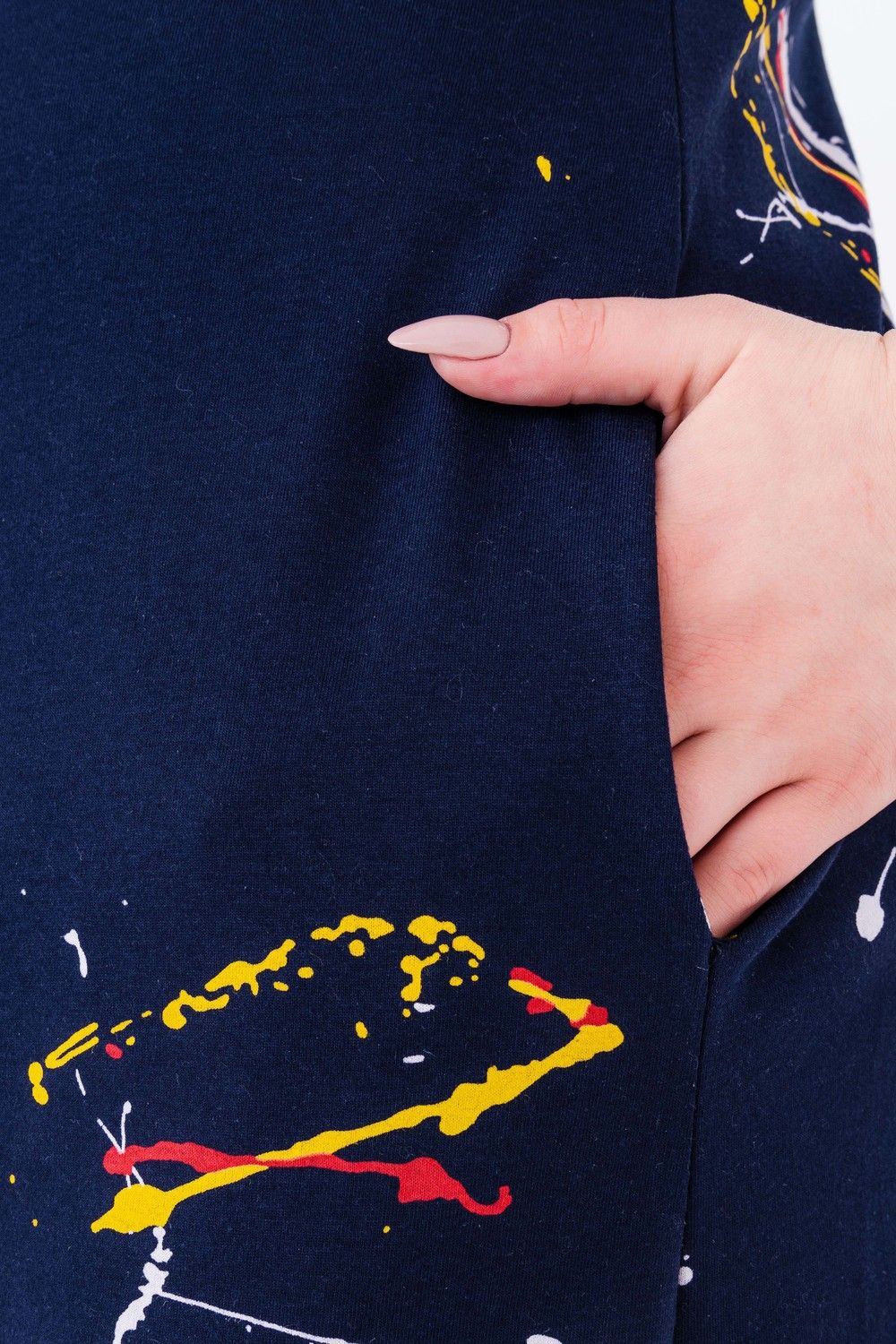 Стильное платье из кулирки. Свободный крой, округлый вырез горловины, длина "миди", разрезы в боковых швах, короткий втачной рукав, дизайнерский принт. Платье имеет большую размерную сетку и подойдет на любую фигуру. Карманы в боковых швах придают платью практичности. Платье сшито из самого качественного трикотажа – кулирки. Она состоит из чистого хлопка и неимоверно приятно в носке. Благодаря натуральному составу платье «дышит», не вызывает аллергий и раздражений. Ткань износостойкая и легко переносит множество стирок и глажек. Туника женская очень удобна и как платье на каждый день, и во время летних прогулок, пикников и веселых загородных поездок.