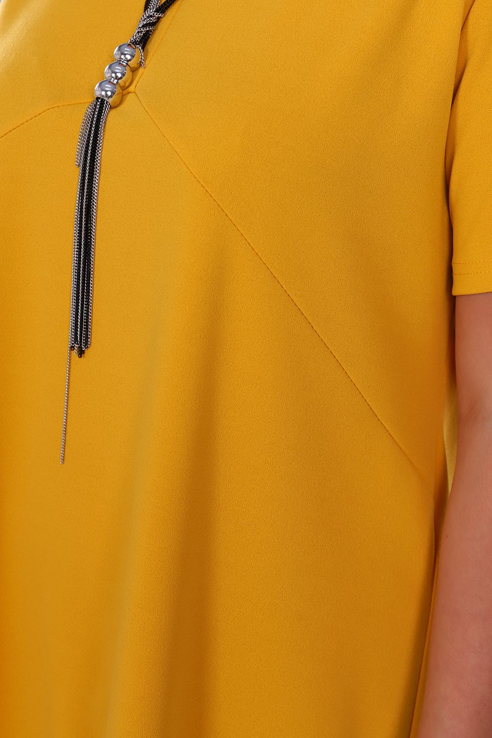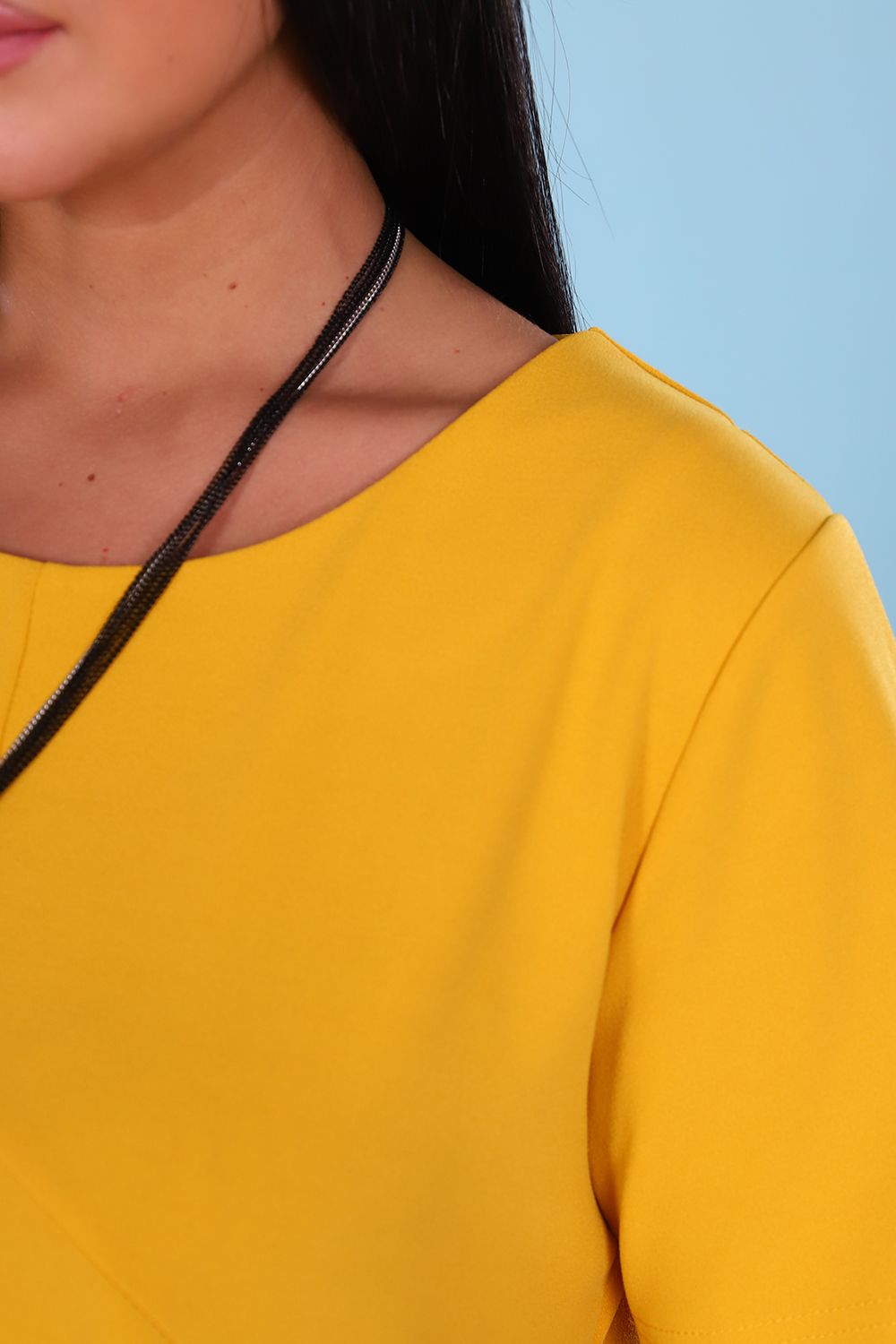 Легкое молодежное платье в ярких летних расцветках. Платье с круглой горловиной, короткий рукав, от линии груди расклешенное. Длина до середины колена. По спинке шов. Аксессуары в комплект не входят. На модели 50 размер.