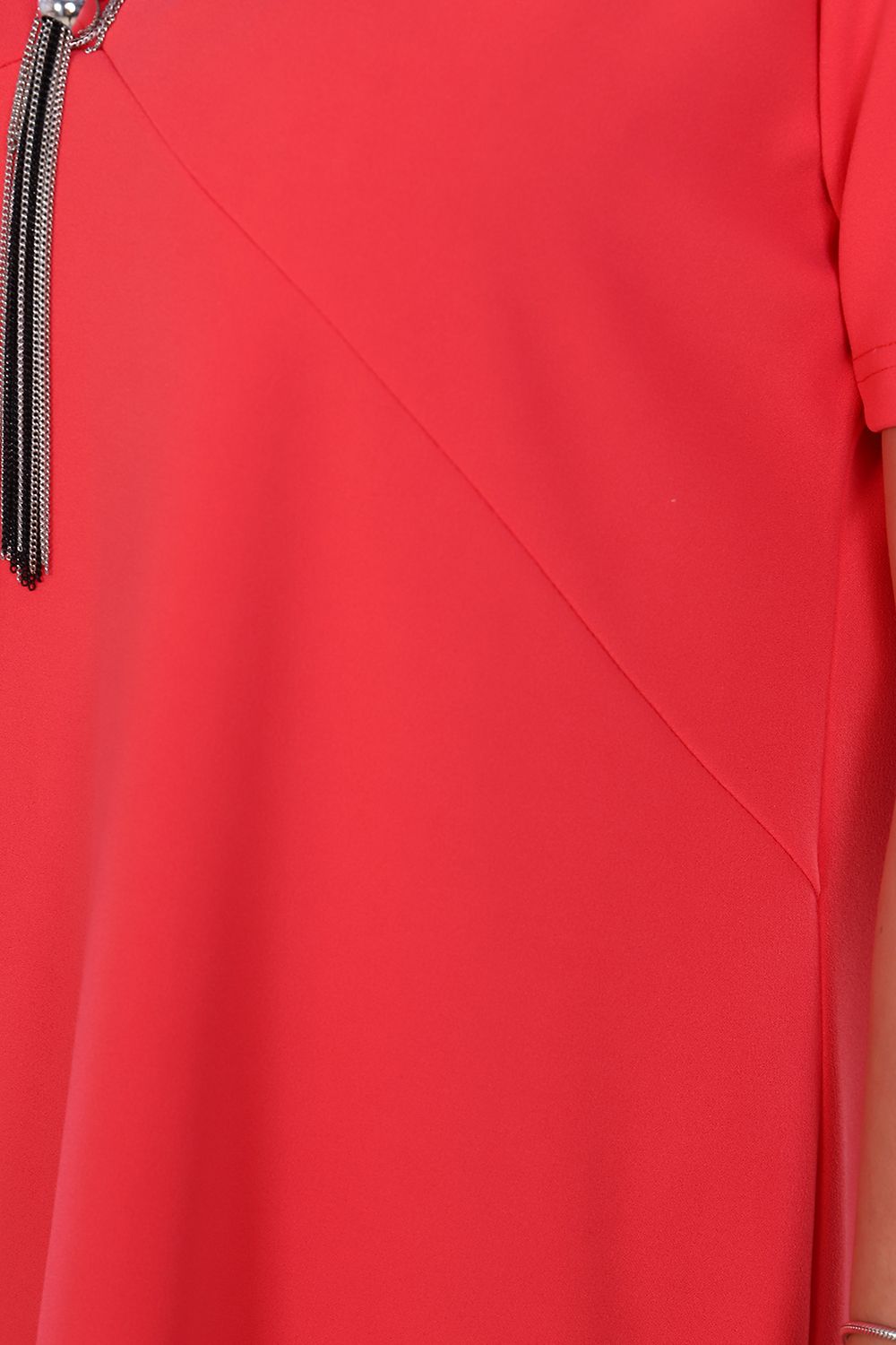 Легкое молодежное платье в ярких летних расцветках. Платье с круглой горловиной, короткий рукав, от линии груди расклешенное. Длина до середины колена. По спинке шов. Аксессуары в комплект не входят. На модели 50 размер.