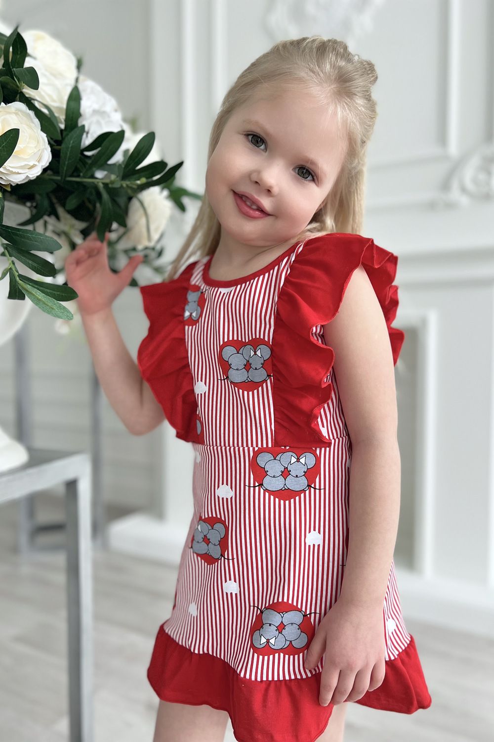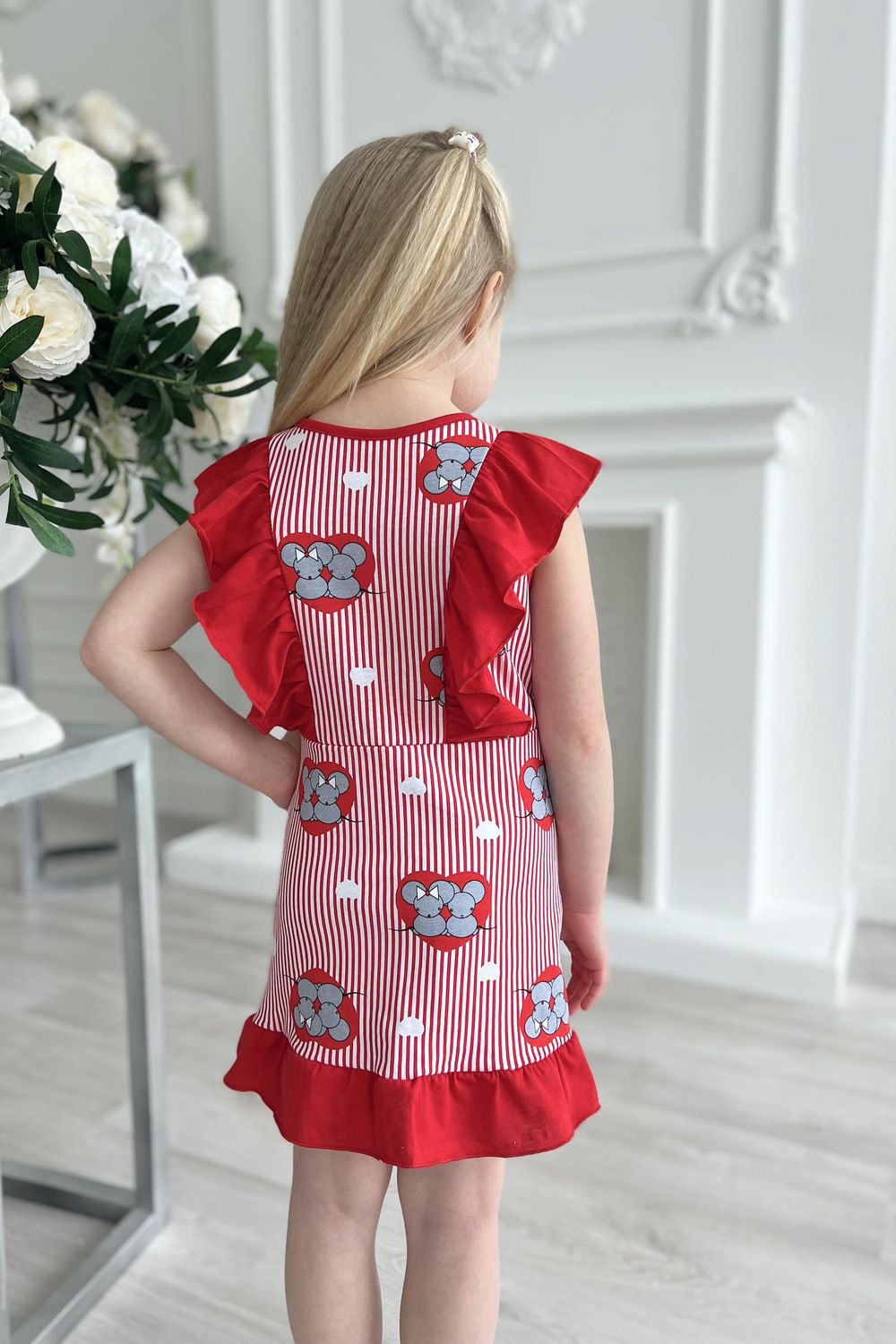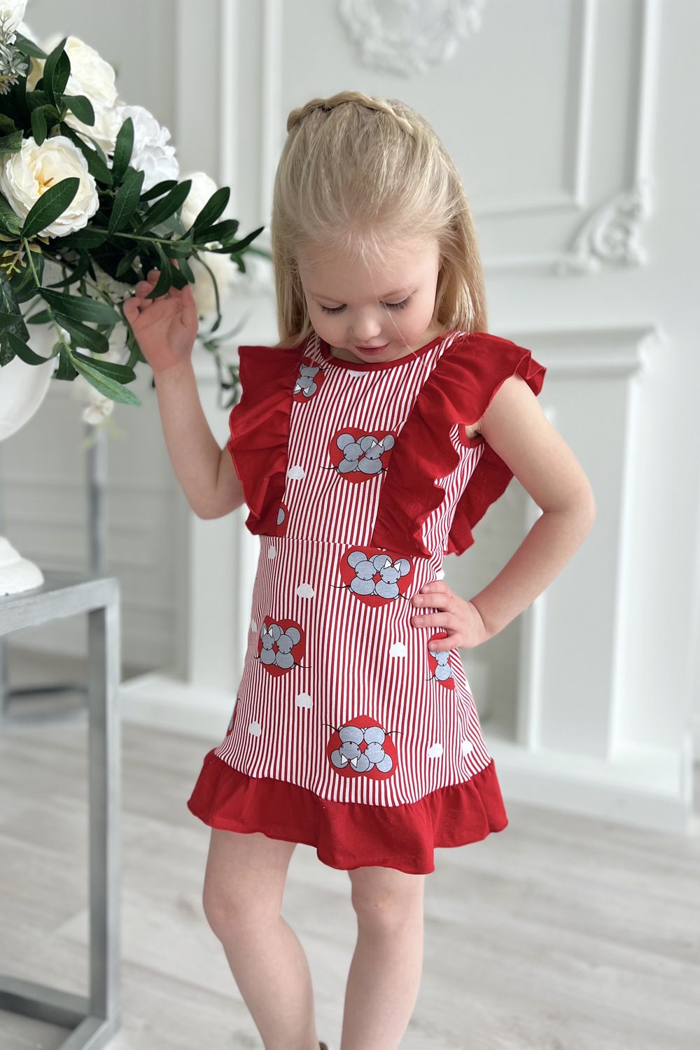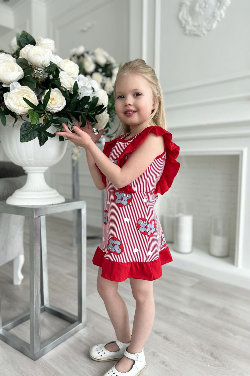 Платье детское отрезное по талии, по низу изделия и в рельефах оборка.