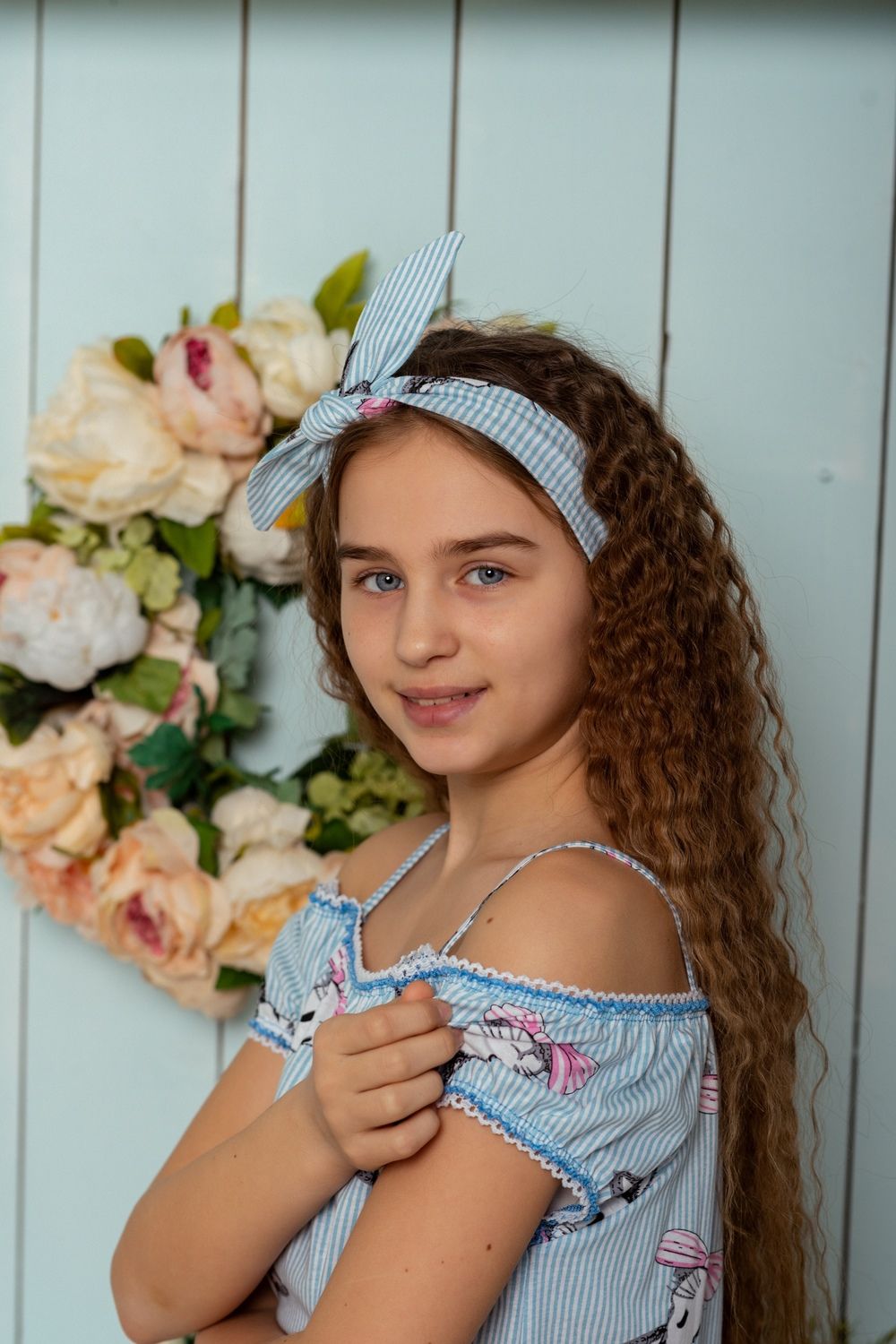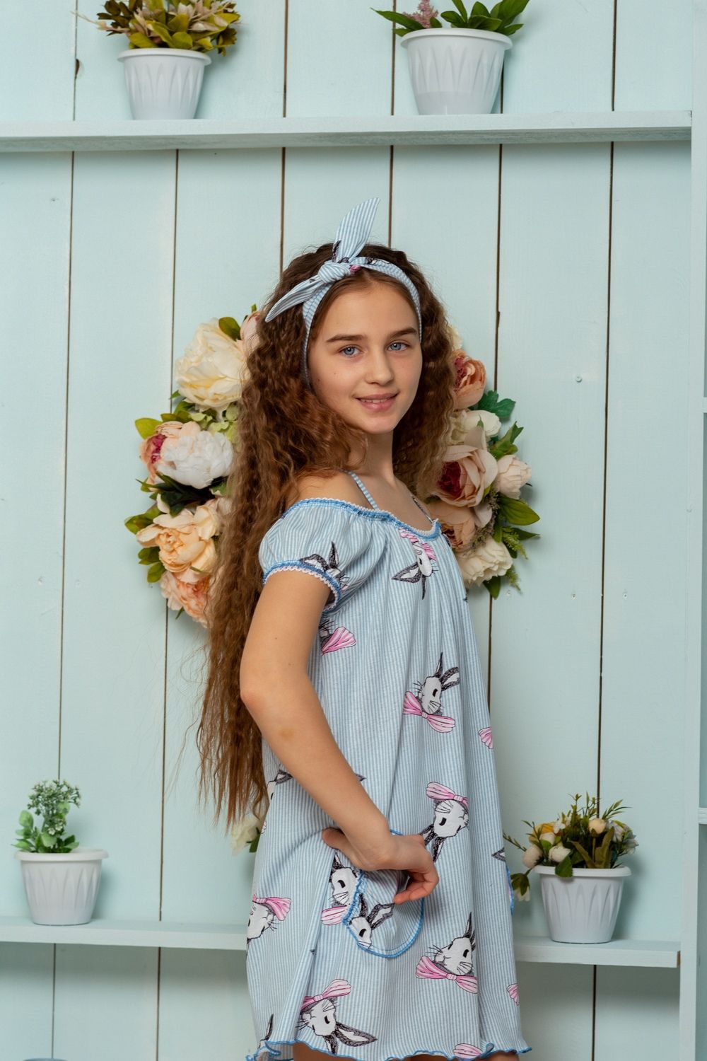 Платье детское летнее с двумя накладными кармашками на полочке. Свободного А-силуэта на тонких бретелях. По горловине и рукавам настрочена декоративная ажурная резинка. Все срезы в изделии обработаны декоративной краеобметочной строчкой.