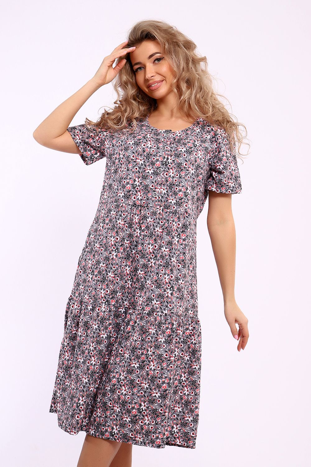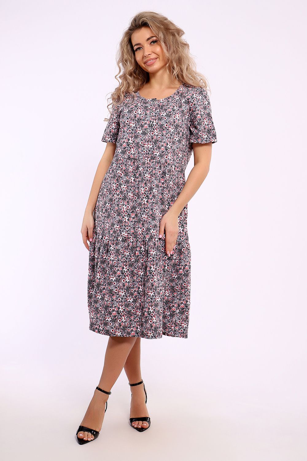 Платье трикотажное из хлопковой кулирки в стиле кантри, в верхней части застегивается на пуговицы. Рукав до локтя.