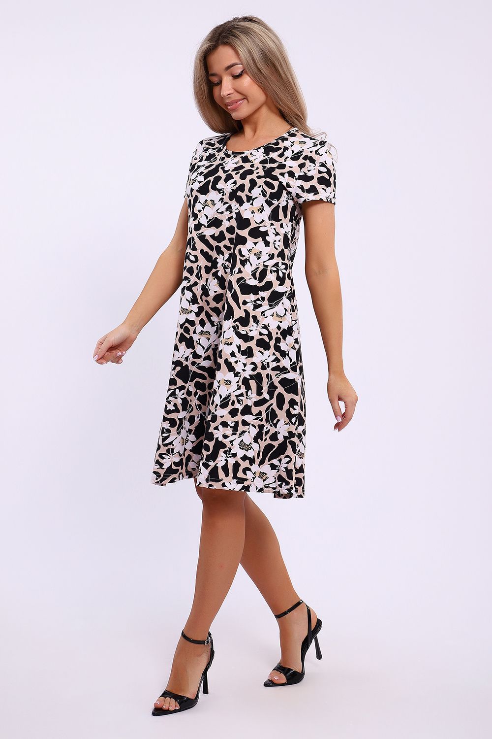 Платье из хлопковой кулирки. Длина до линии колена, легкий клеш и короткий рукав создают очаровательный образ.