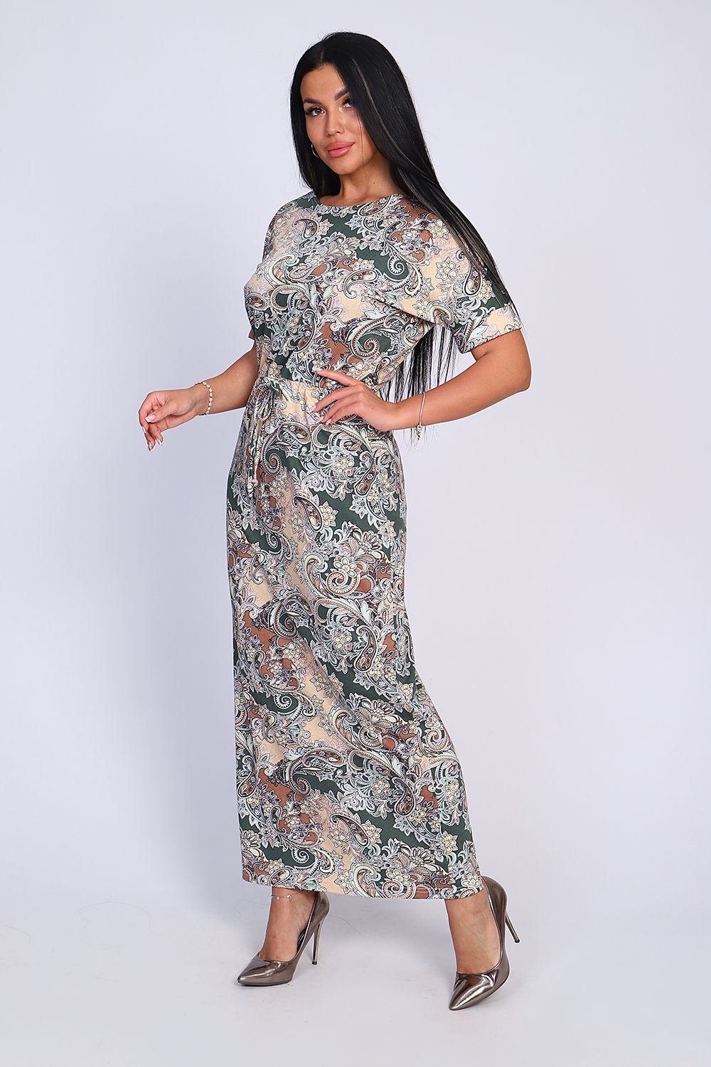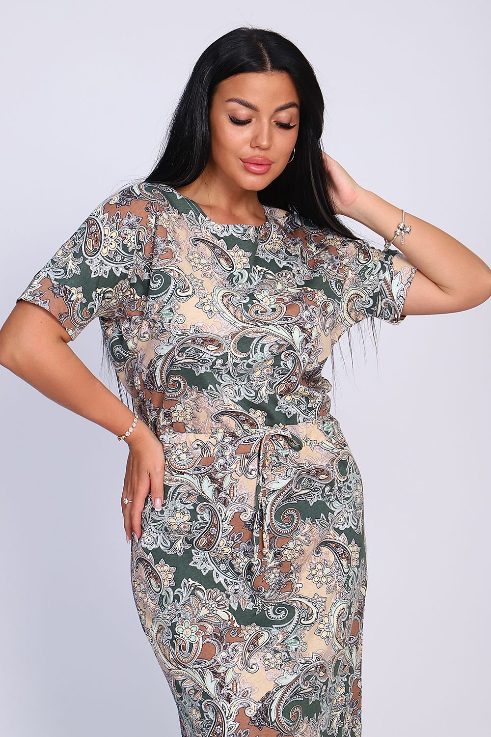 Платье женское удлиненное прямого силуэта со спущенным рукавом на манжете, линия талии обработана кулисой со вставленным шнурком. Элегантное платье подойдет на все случаи жизни.