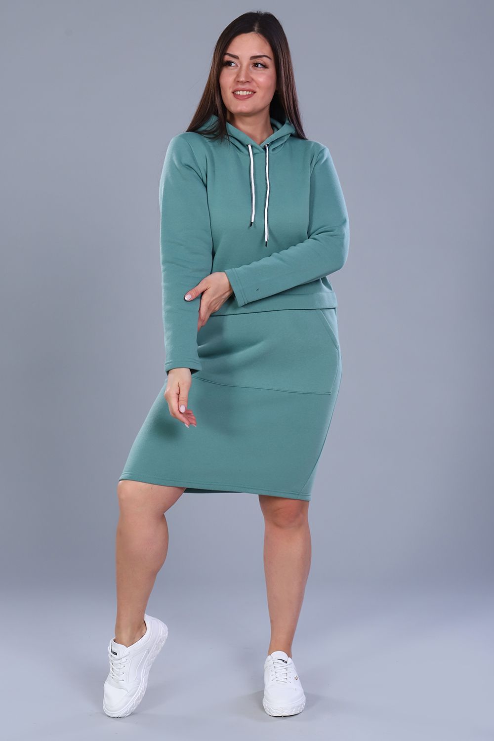 Стильное женское платье с капюшоном на люверсах. Длинный рукав, карман кенгуру, по линии талии кокетка. Удобно и практично.
