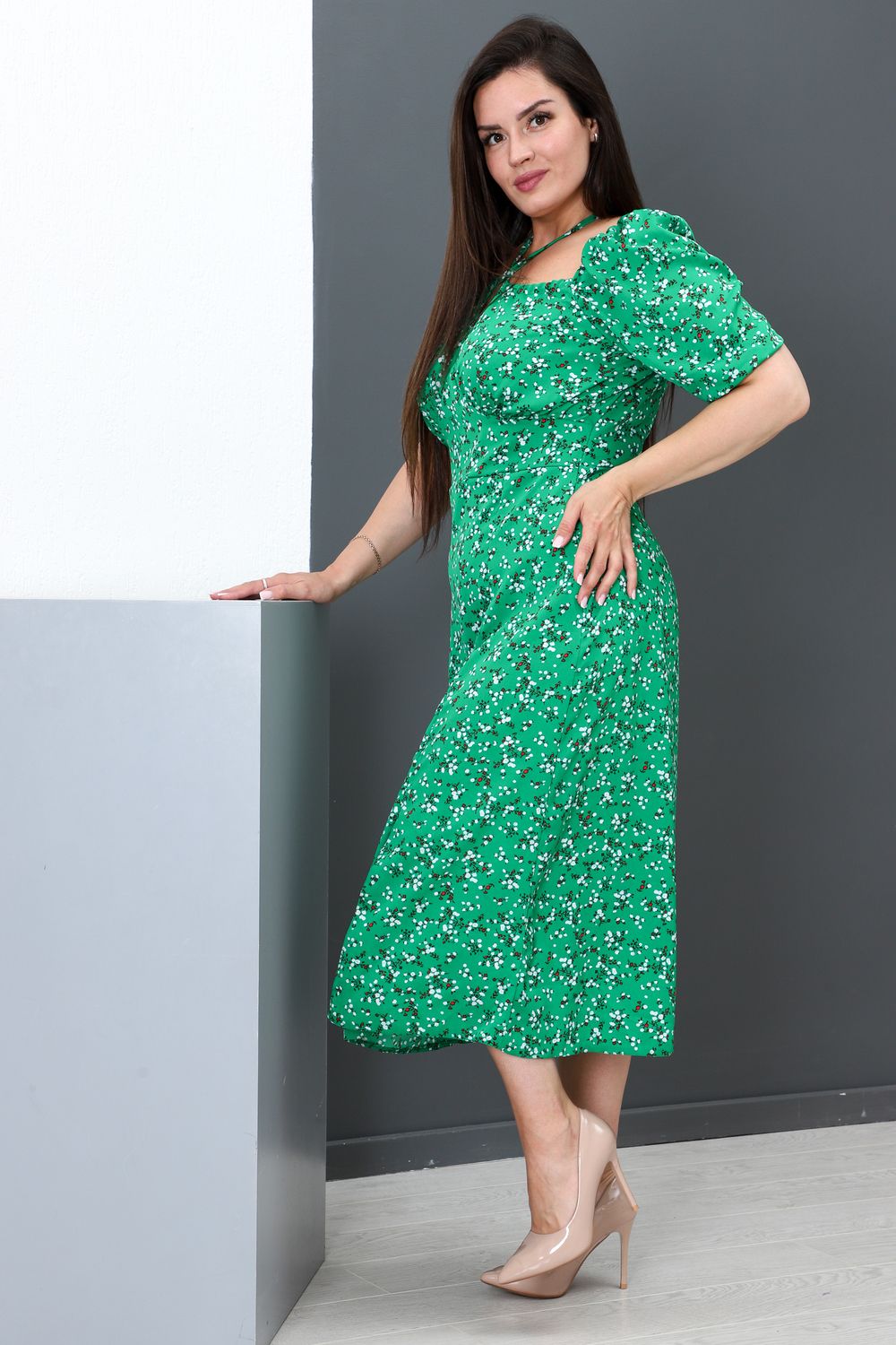 Платье 52272 - зеленый+красный