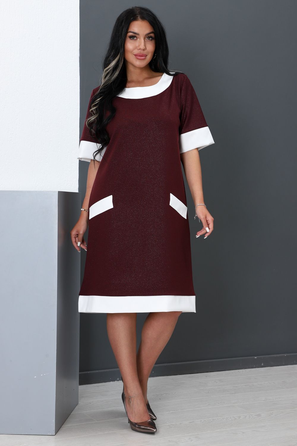 Платье женское прямого силуэта, округлый воротник, рукав 3/4. На передней полочке накладные карманы обманки. Легкое и удобное.