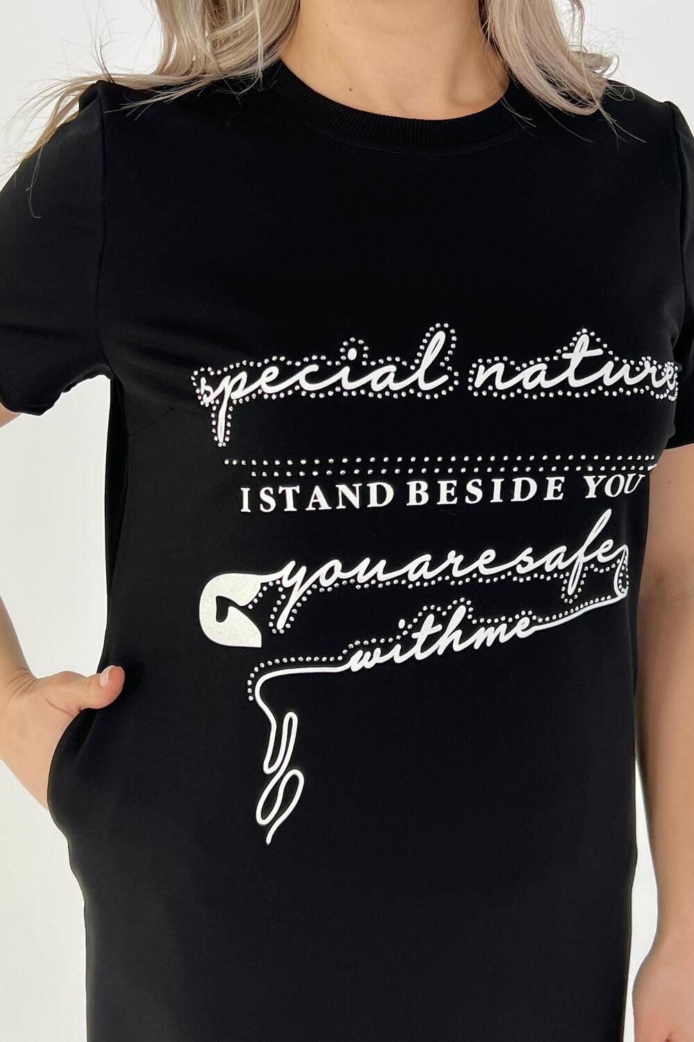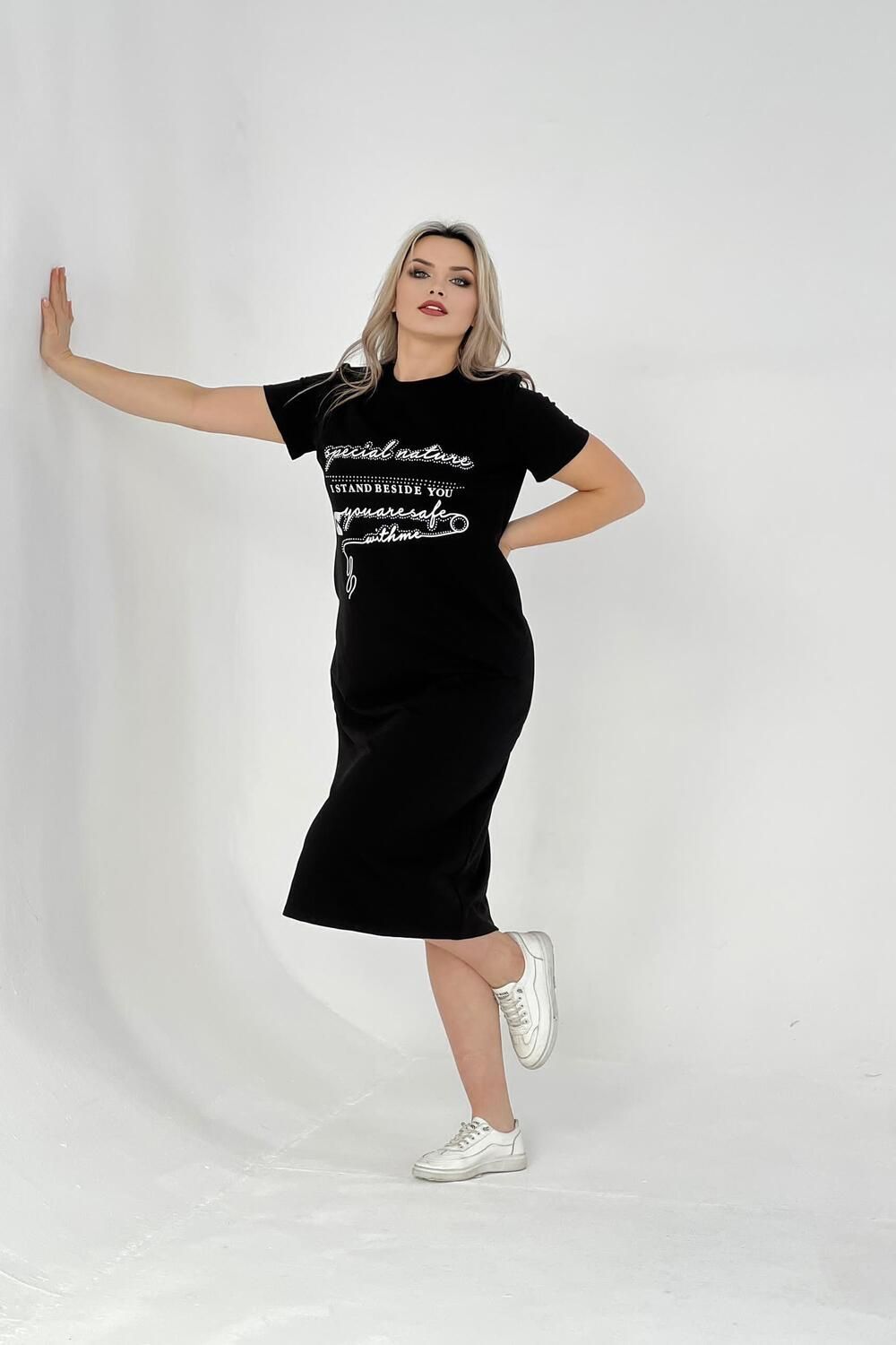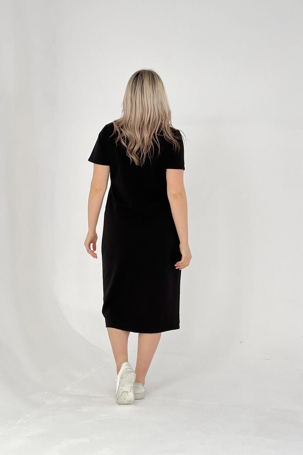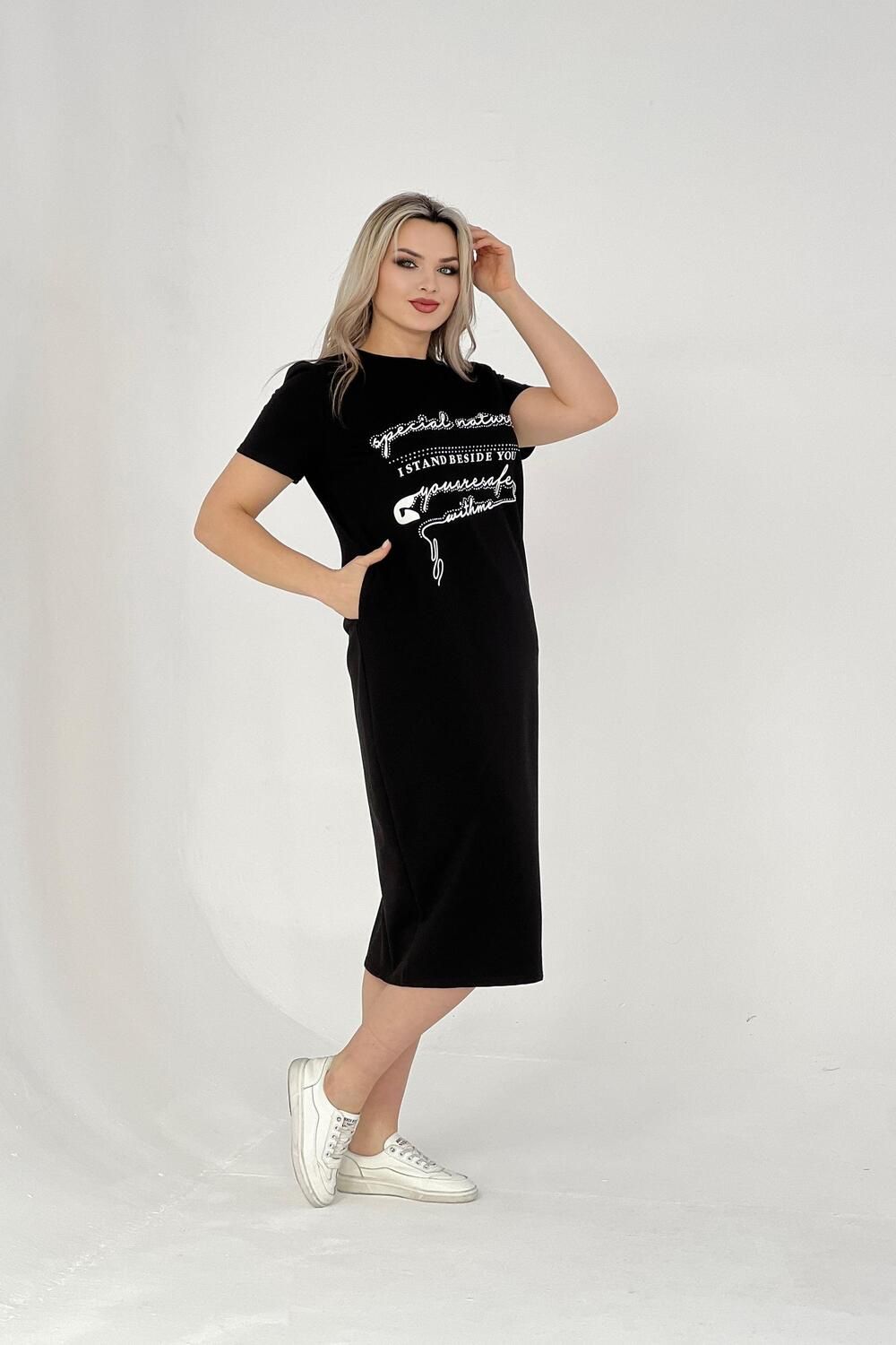 Стильное женское платье подойдет для прогулок на свежем воздухе и для домашнего отдыха. Изготовлено из качественного трикотажа, оно идеально подойдет девушкам больших размеров. Платье выполнено в черном цвете и имеет свободный прямой крой, что делает его универсальным в использовании. Изготовленное из качественной турецкой ткани с добавлением лайкры, это платье хорошо тянется и не садится после стирки. Таким образом, вы можете быть уверены в сохранении его первоначального вида на протяжении всего периода носки. Спортивное платье-футболка также подойдет для полных женщин, так как обладает большими размерами. Оно органично сочетает в себе спортивный стиль и комфортную посадку. Благодаря свободному крою oversize, это домашне платье обеспечивает максимальный комфорт при повседневном использовании. Длинные модели летних платьев футболок подчеркнут ваш стиль и создадут ультрамодный образ. Женское платье больших размеров с коротким рукавом – отличный выбор для лета или весны. Данное женское хлопковое платье из футера подойдет как для беременных женщин, так и для девушек любящих свободный крой в одежде. Стильное миди-платье с карманами – это базовая модель одежды для дома или прогулок. В таком платье вы будете выглядеть свободно, элегантно и модно.