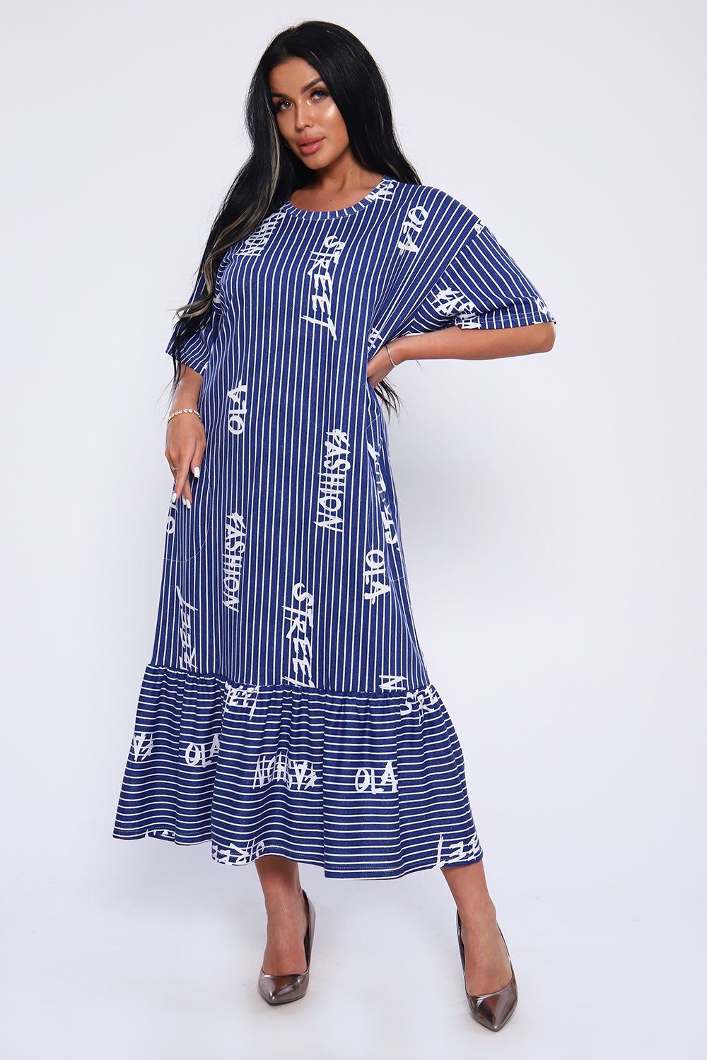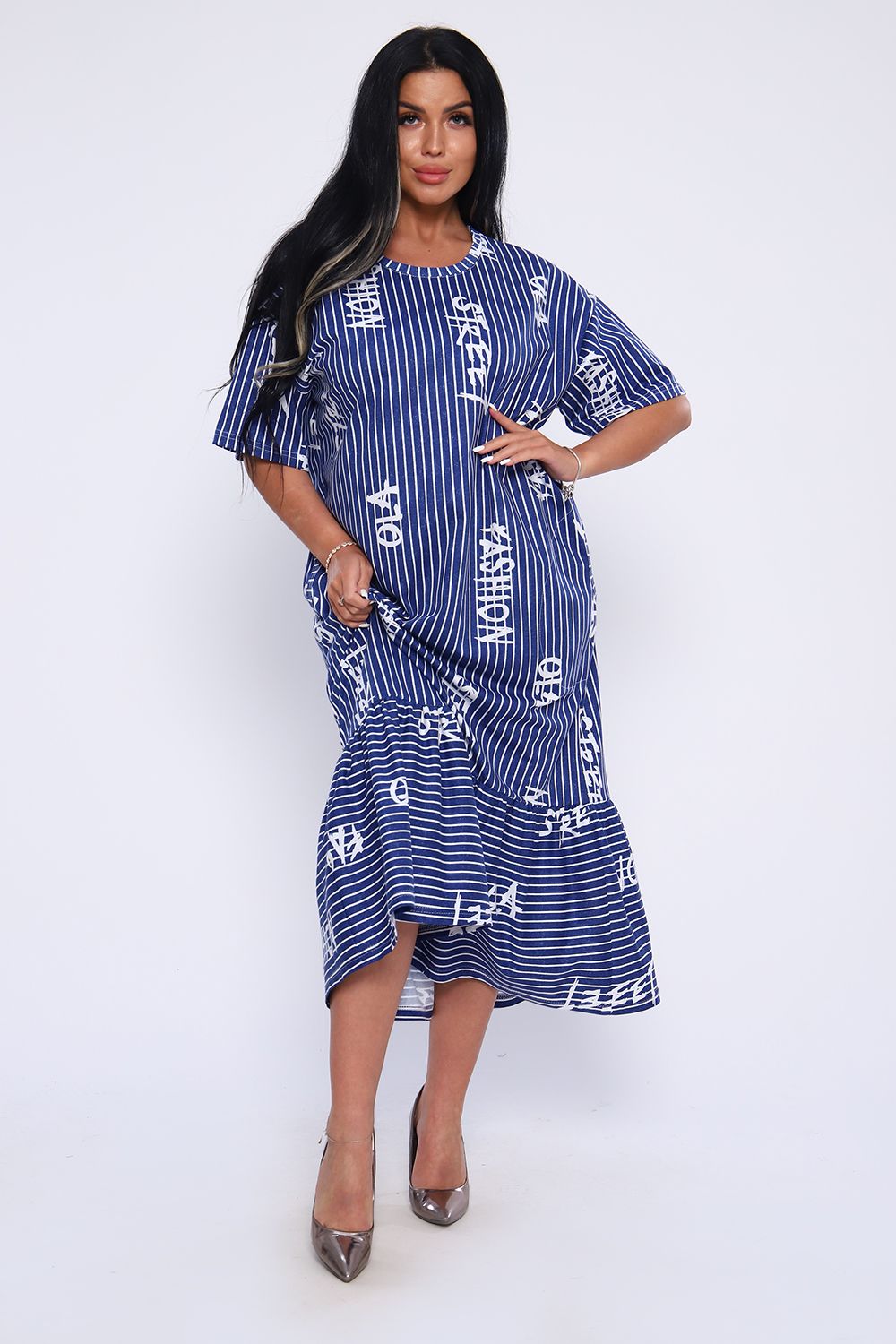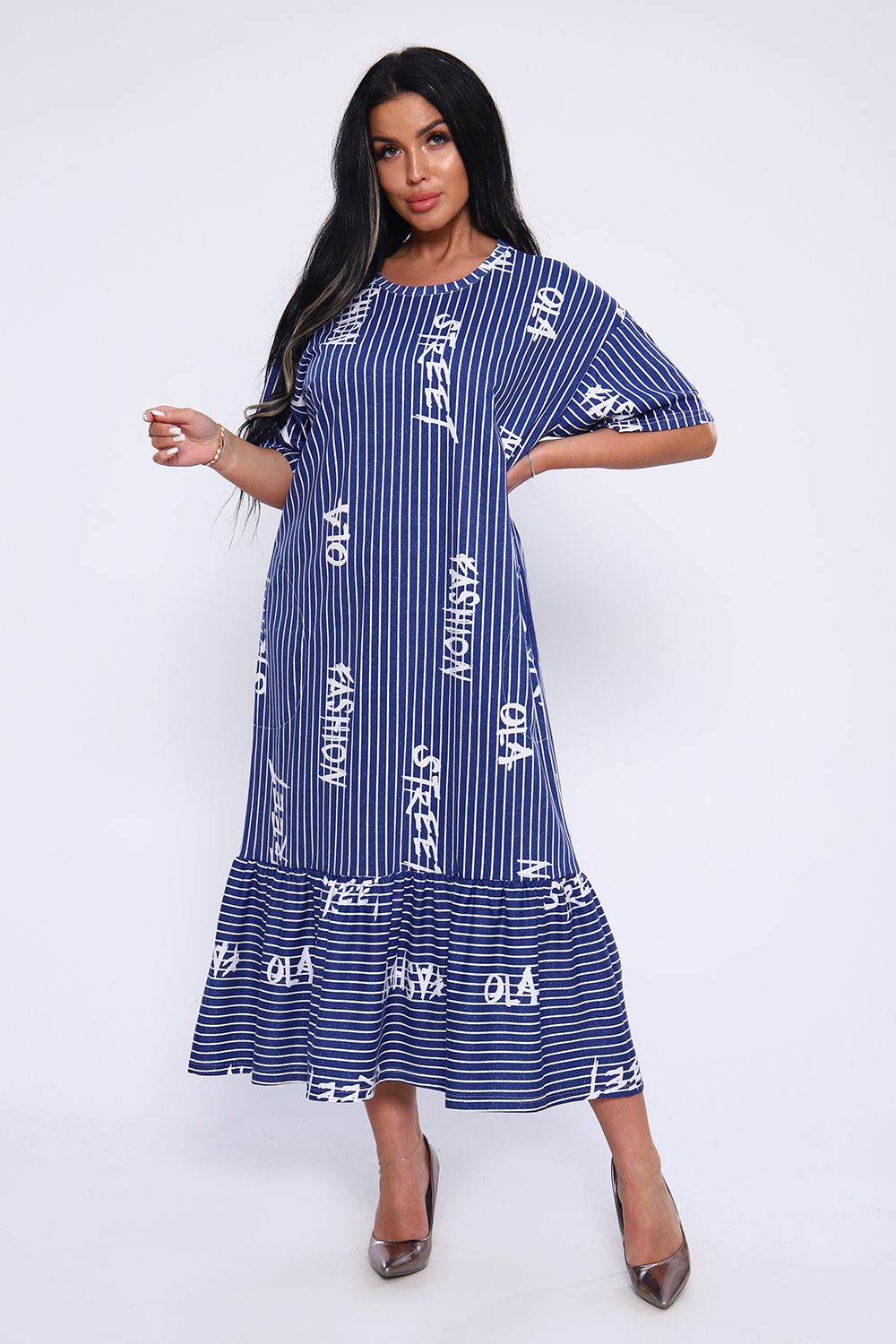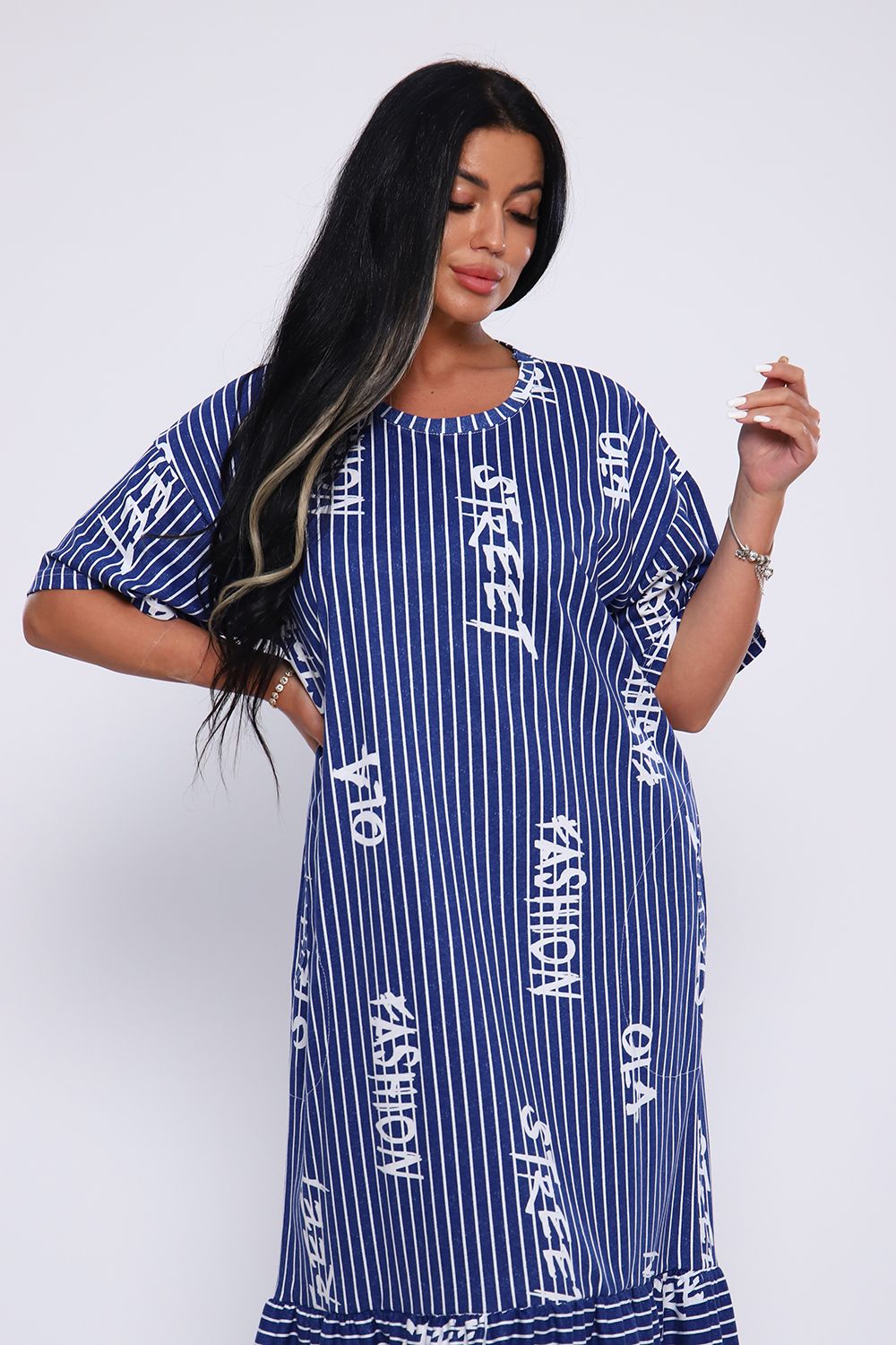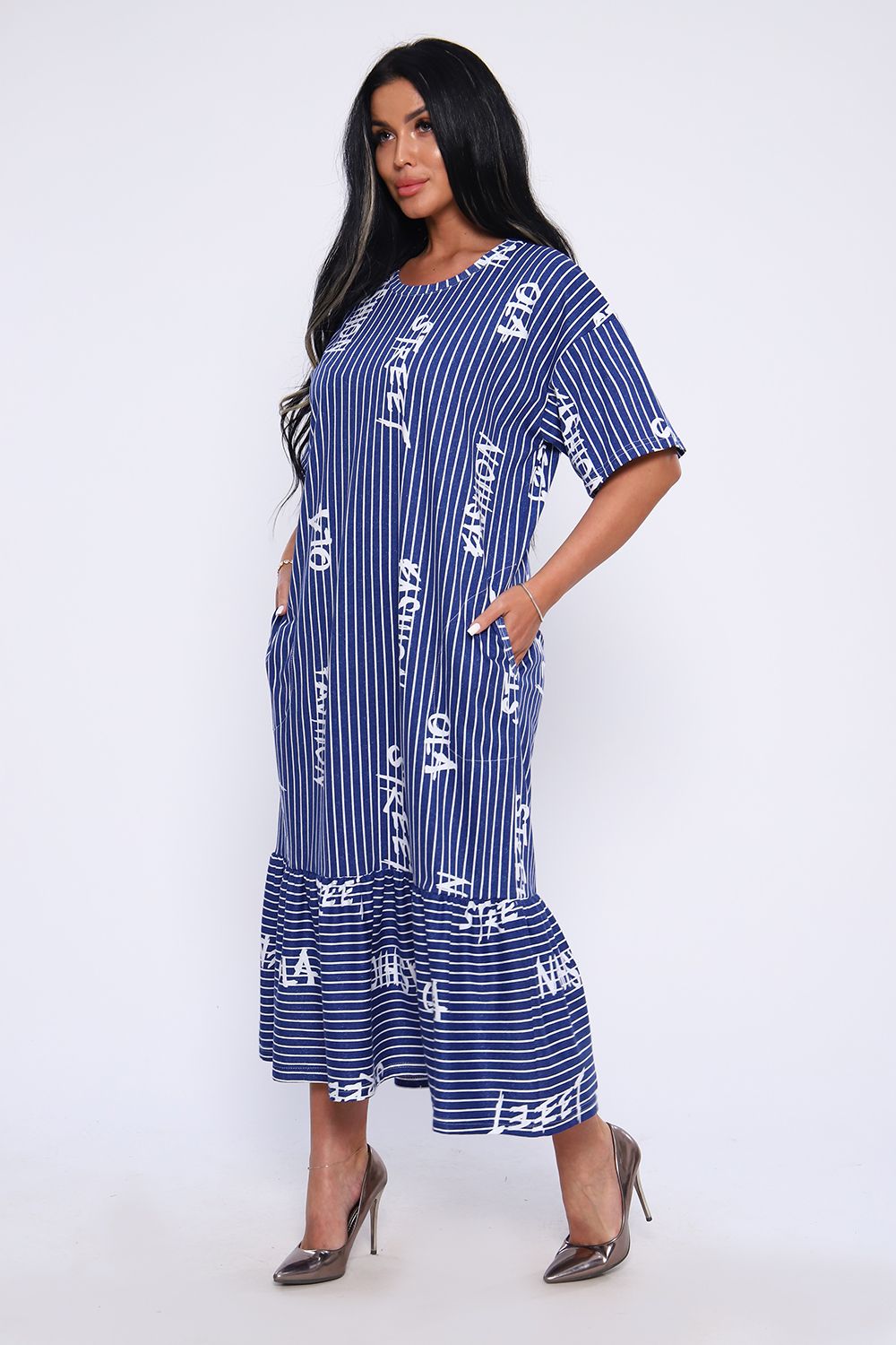 Женское летнее платье-туника, полуприлегающего силуэта с карманами и оригинальной оборкой внизу изделия. Платье-туника выполнена из трикотажного полотна - кулирка (100% хлопок).