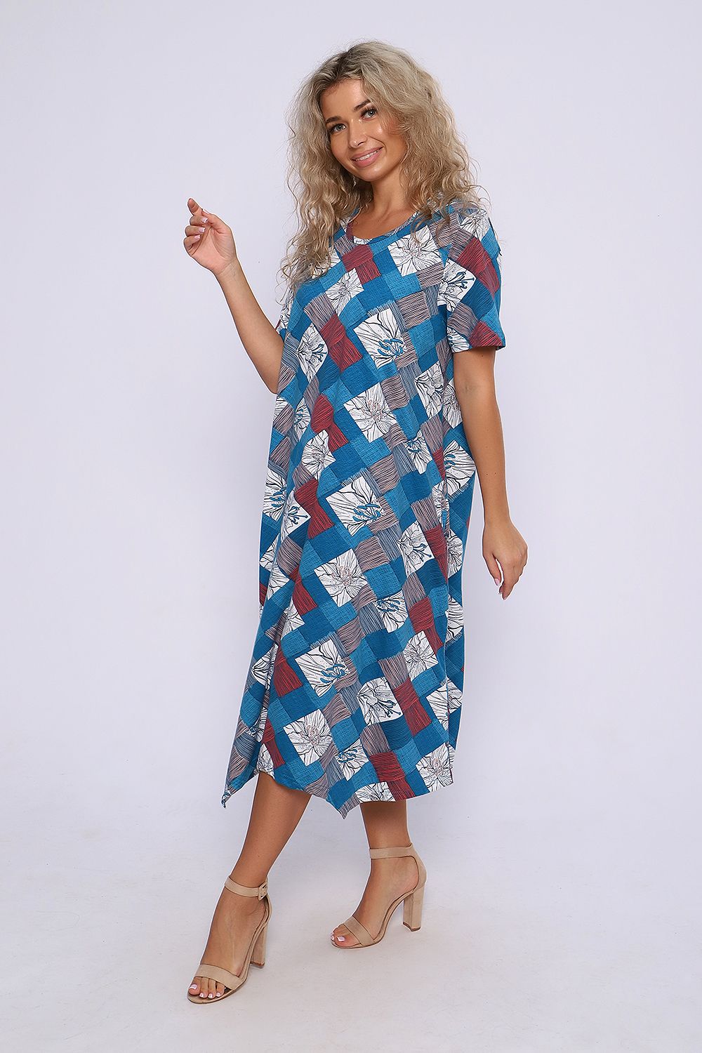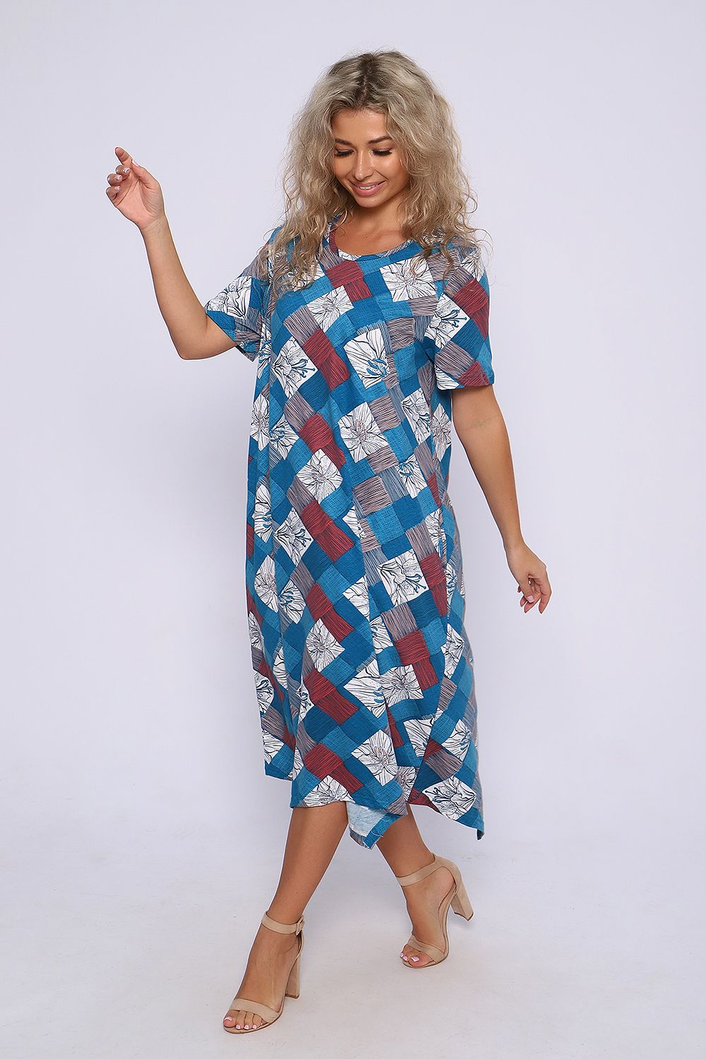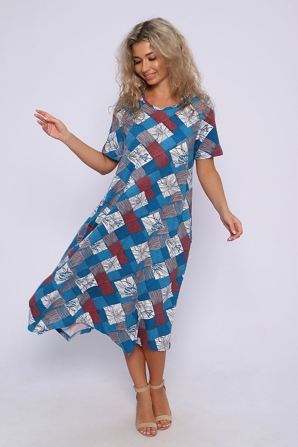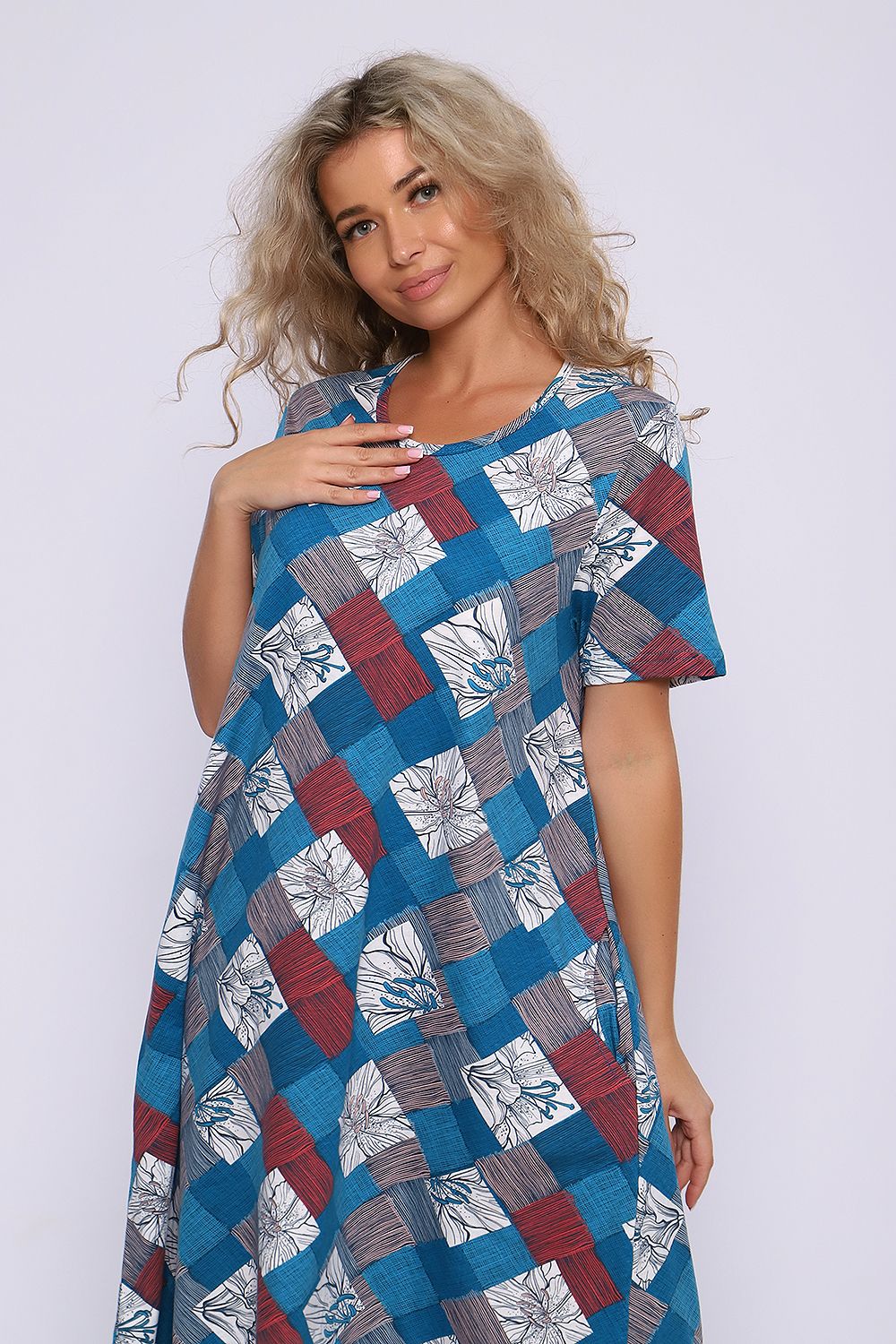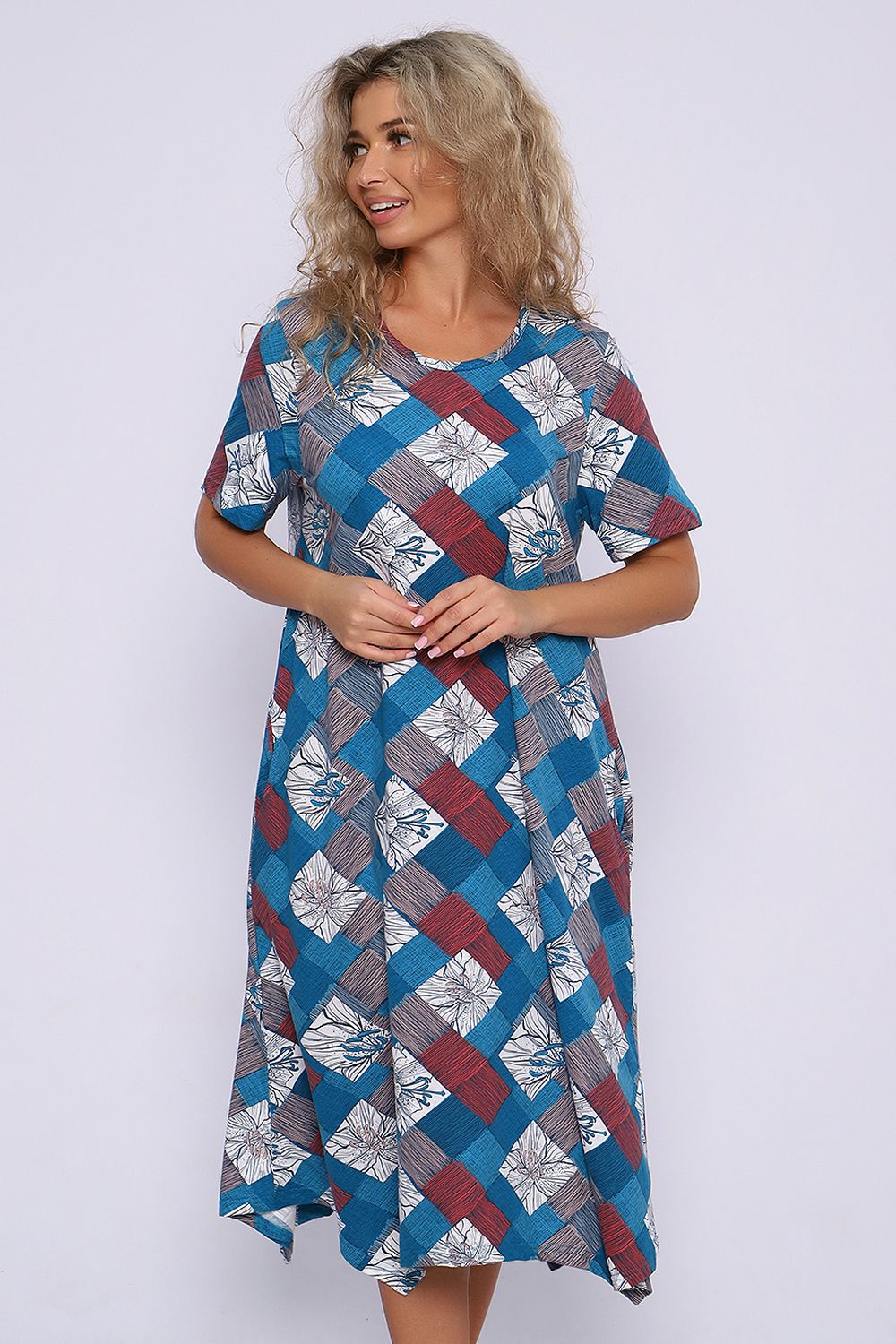 Платье А - силуэта с короткими рукавами и фигурным низом. Карманы в боковых швах. Необходимый элемент гардероба для легких образов.