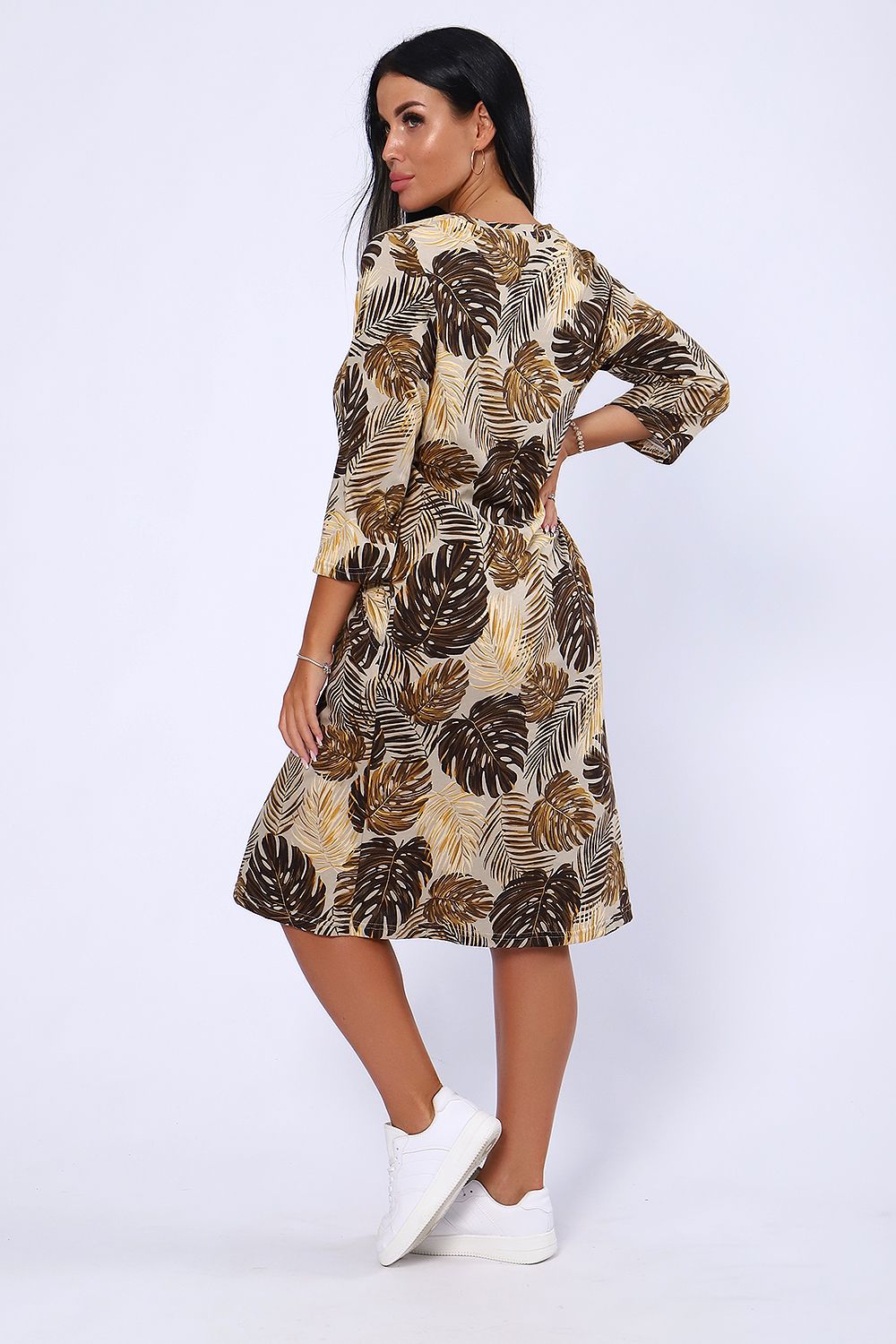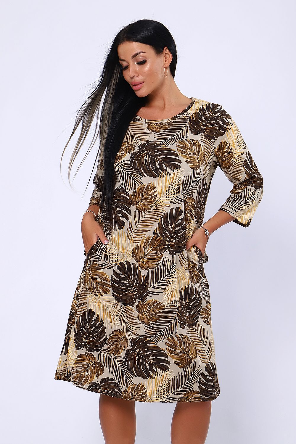 Платье полуприлегающего силуэта с карманами в боковых швах и рукавами длиной 3/4. Идеальный повседневный вариант.