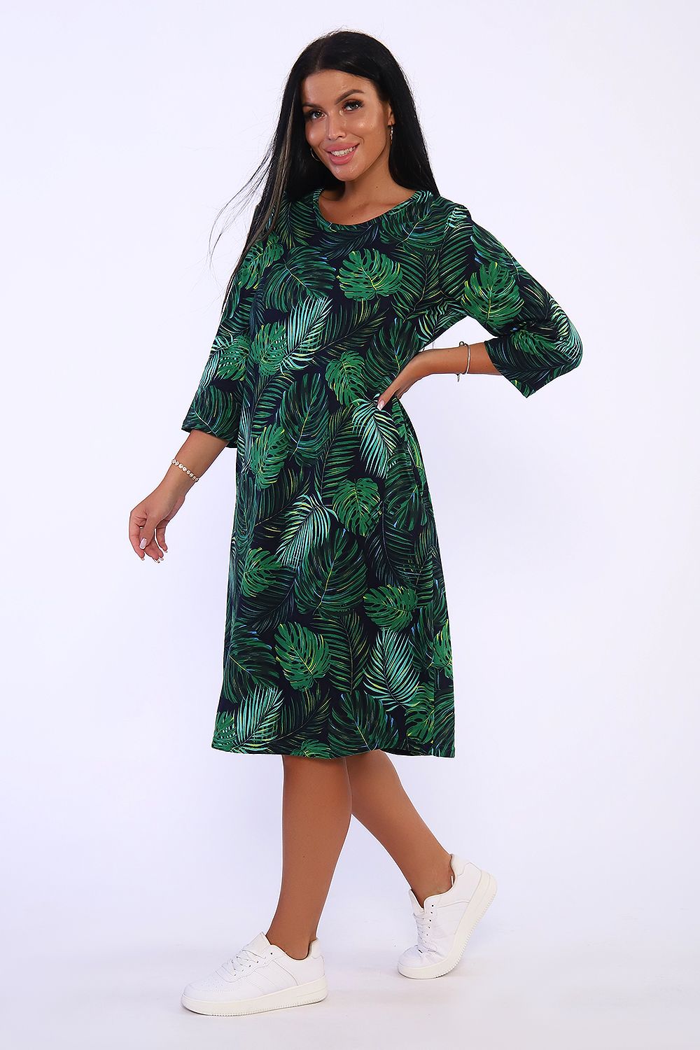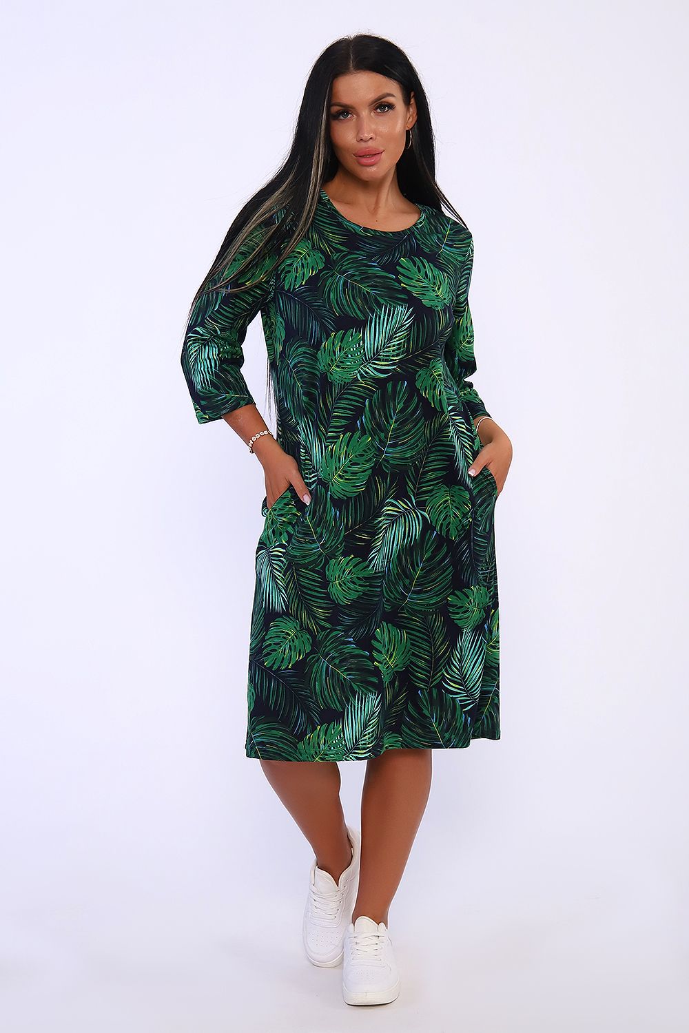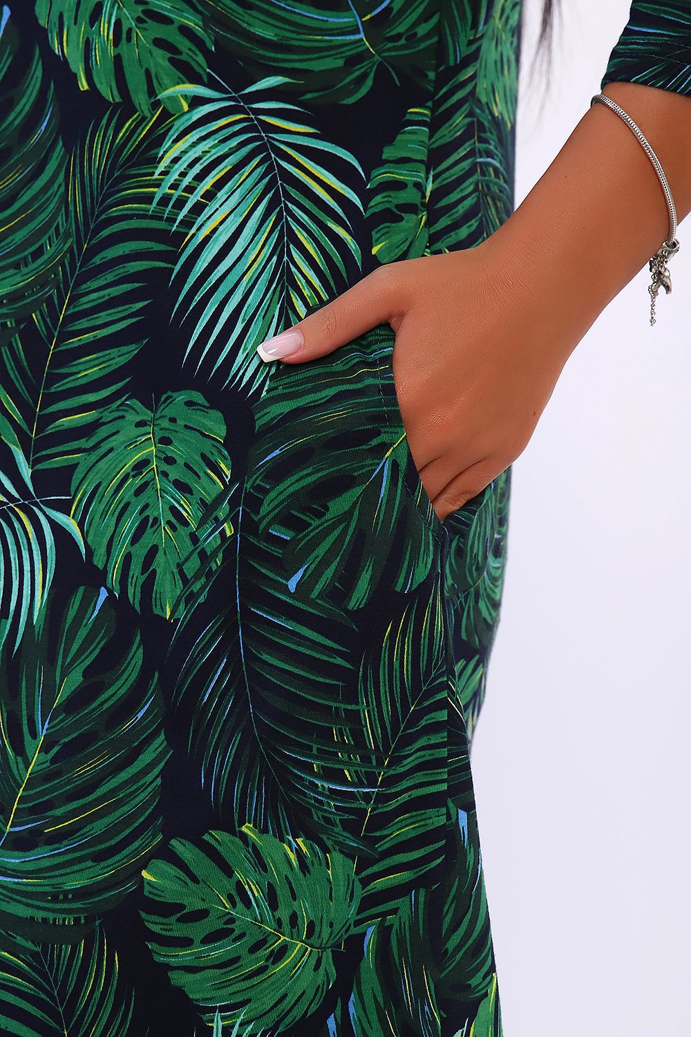 Платье полуприлегающего силуэта с карманами в боковых швах и рукавами длиной 3/4. Идеальный повседневный вариант.