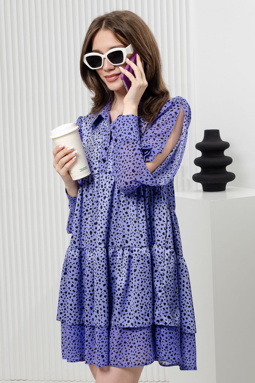 Стильное платье для девушек и женщин. Выполнено из качественного, не мнущегося материала в комбинации шелка и шифона, это легкое платье А-силуэта отлично сидит и скрывает все недостатки. Универсальное летнее платье с длинными рукавами с разрезами создают невесомый и непринужденный силуэт, низ рукавов обработан стильными манжетами с застежкой на пуговки. Фасон с планкой и отложным воротником так же имеет застёжку на пуговки. Платье свободного кроя отлично смотрится, как с туфлями, так и с кедами, с высокими ботинками. Легко сочетается с пиджаком, косухой, пальто, что позволяет создавать множество ярких, стильных образов.