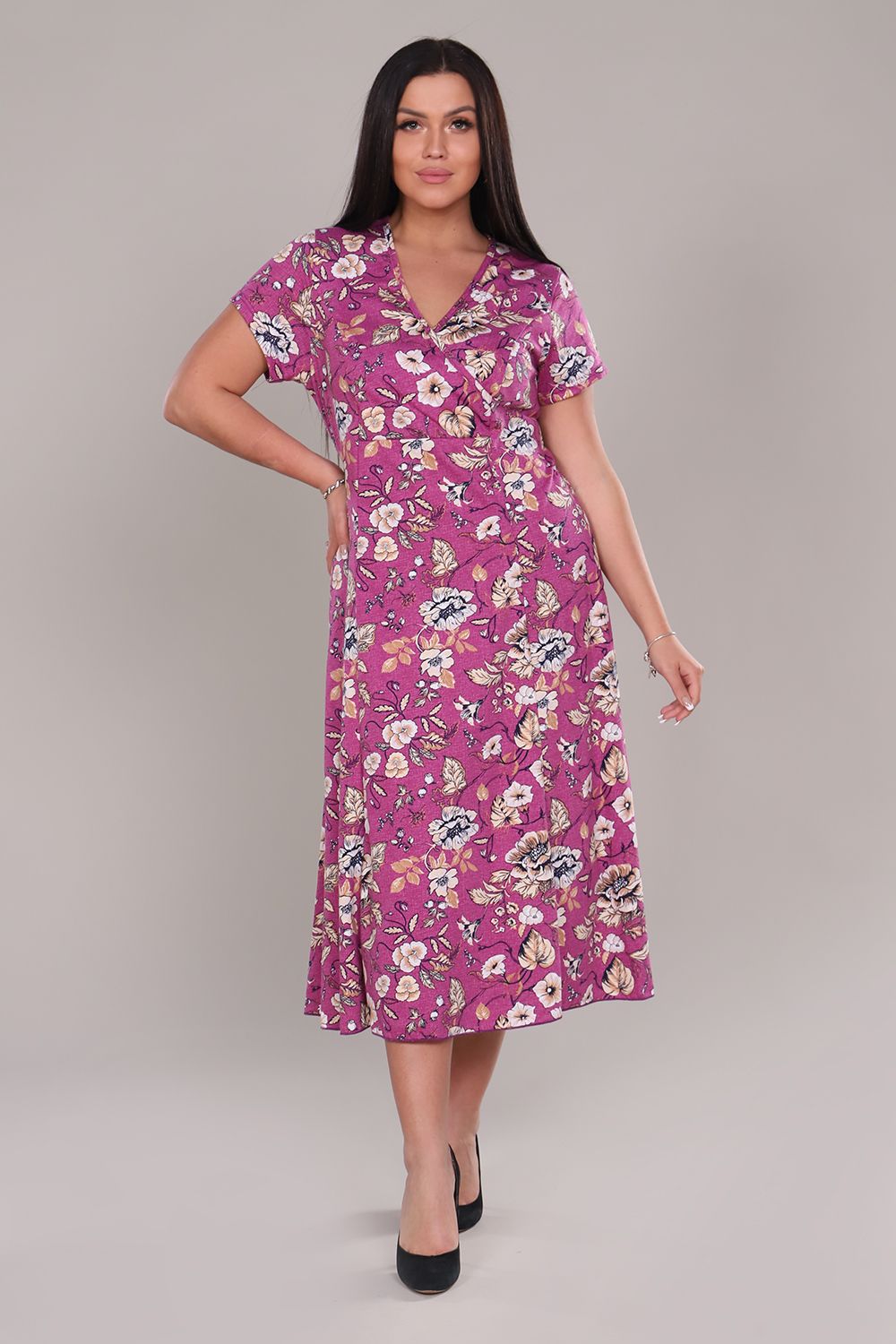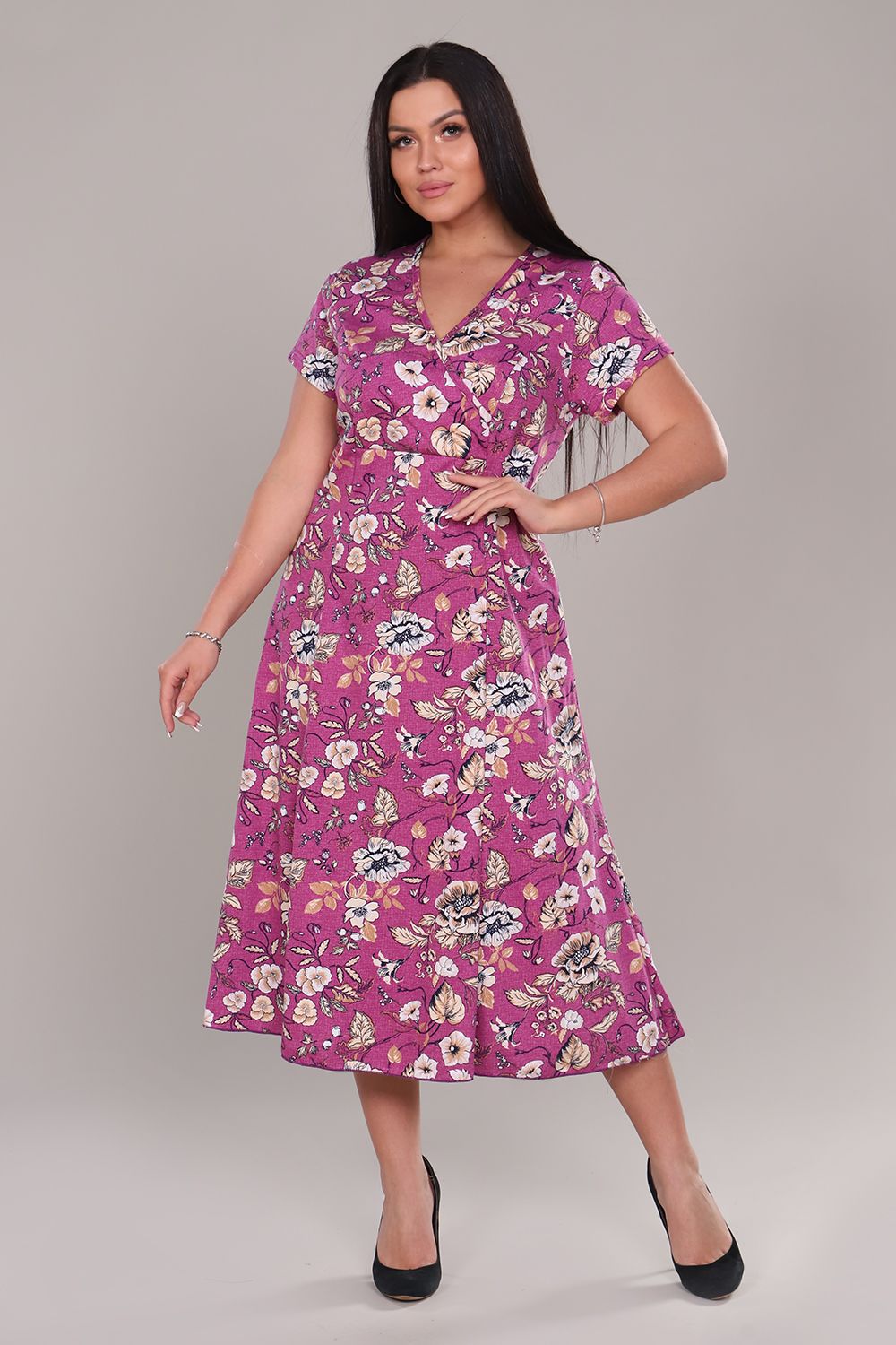 Платье женское очень красивой и оригинальной расцветки выполнено из ткани хлопок. Платье удлиненное, приталенное, с расклешением к низу. Вырез платья V-образный за счет запаха на полочке, что придает изделию элегантность и комфорт. Модель подойдет для прогулок, отдыха и дома.