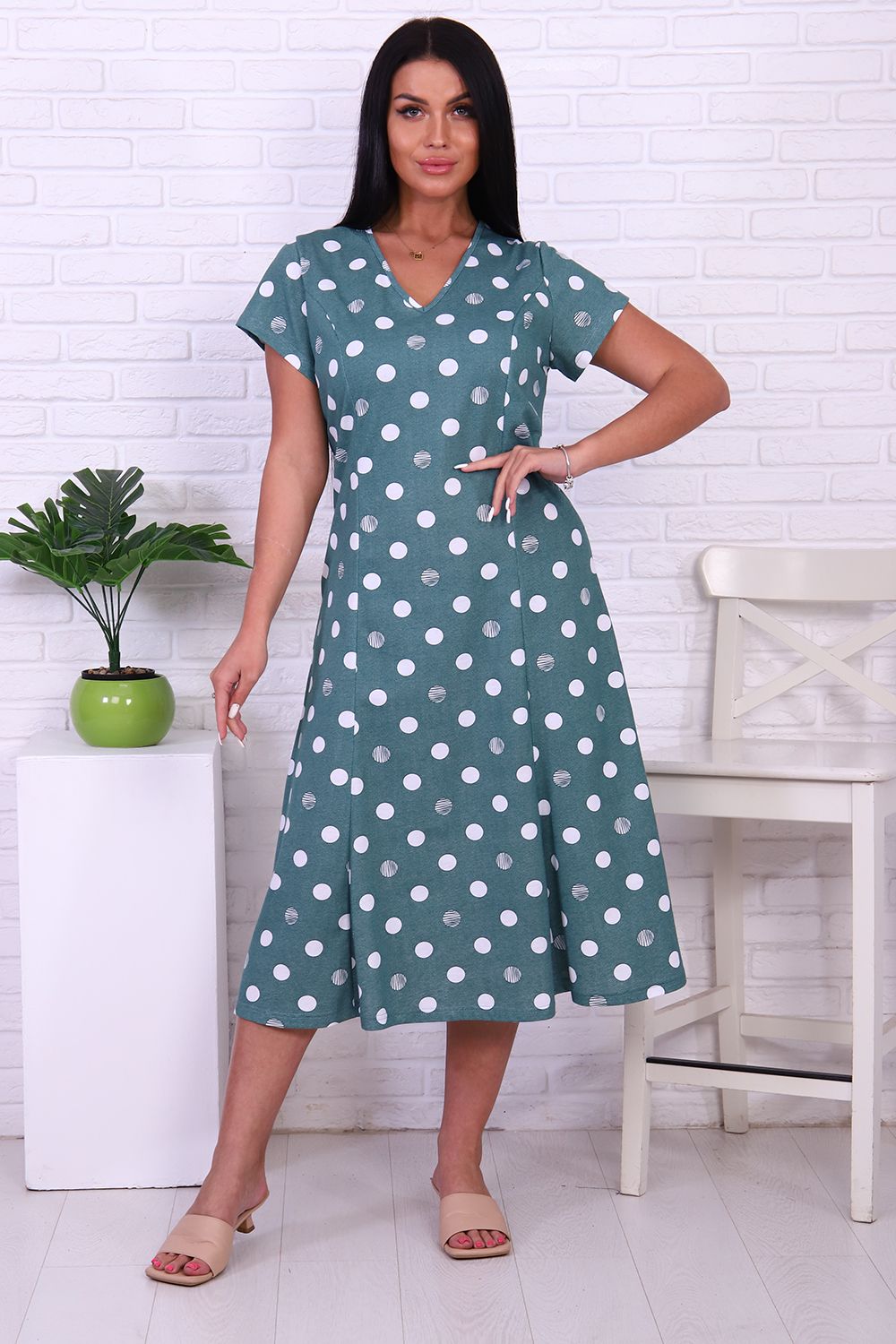Платье 6752 - зеленый горох