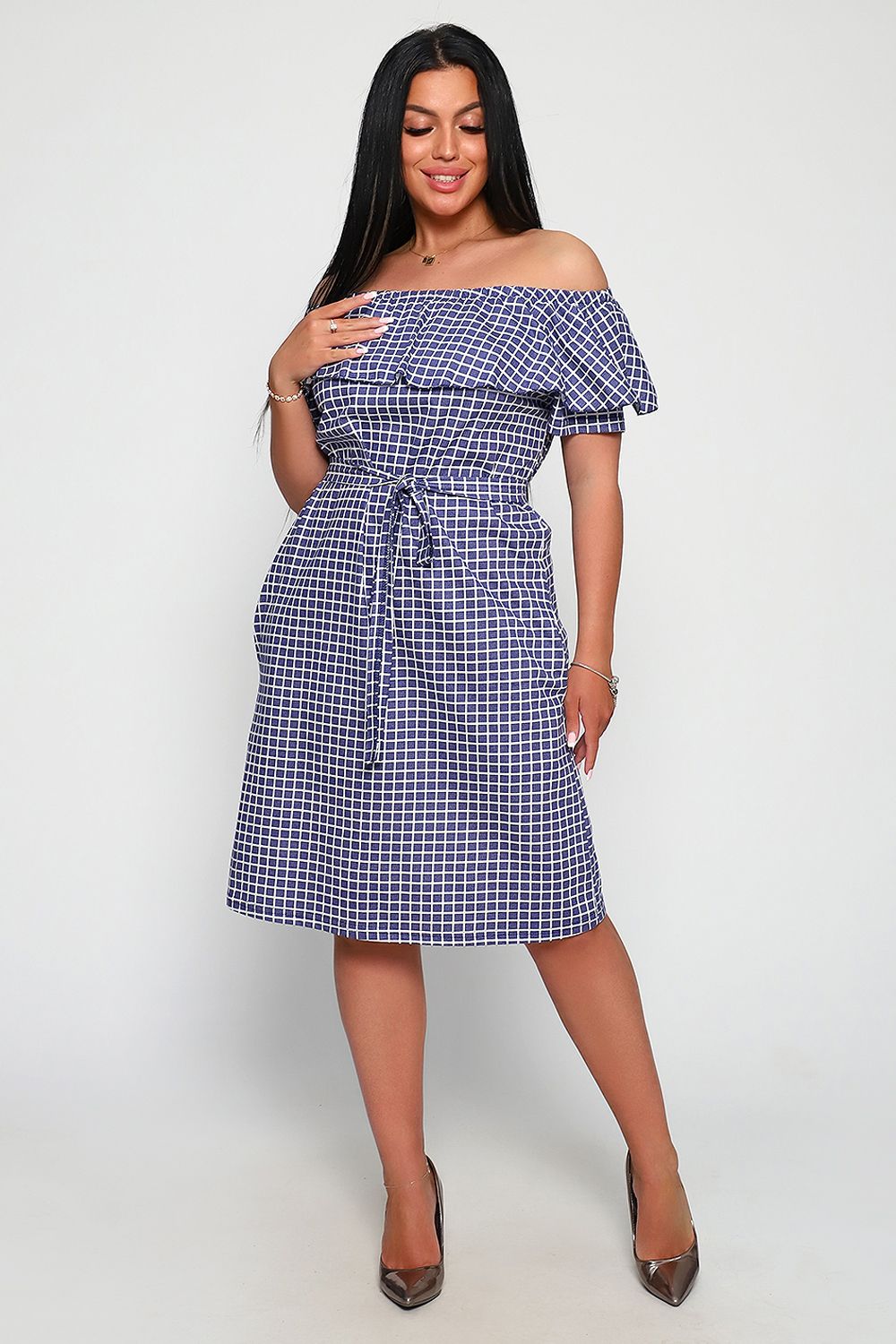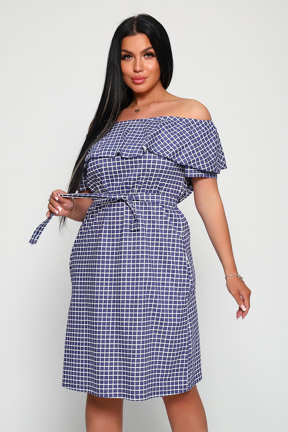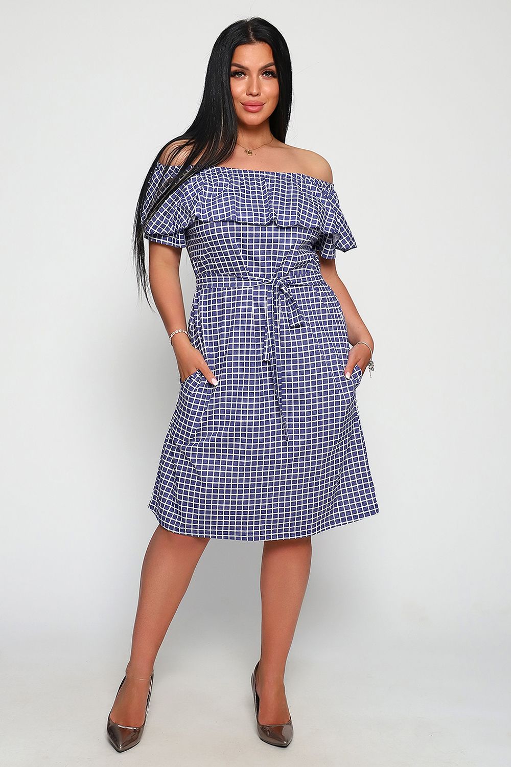 Женское платье - сарафан полуприлегающего силуэта с поясом и широкой рюшью на плечах. Выполнен в романтическом стиле из трикотажного полотна, 100% хлопок. Горловина собрана на резинку и отделана широкой оборкой. Короткий рукав, реглан. Длина пояса в 44 размере 155 см, в 62 размере 180 см. Широкий размерный ряд с 44 до 62 размера. Яркие весенне-летние расцветки с принтом по ткани в виде клетки. Карманы в боковом шве, добавляют дополнительный комфорт при носке. Платье можно носить, как со спущенным с плеч верхом, так и с поднятым, либо на одно плечо. Прекрасно подходит беременным, так как пояс не фиксируется на изделии и может приталить платье на любом уровне. В этом нарядном и удобном платье, Вы будете себя чувствовать комфортно в любой обстановке: на прогулке, дома, в отпуске, на пляже, на даче и на любом празднике.