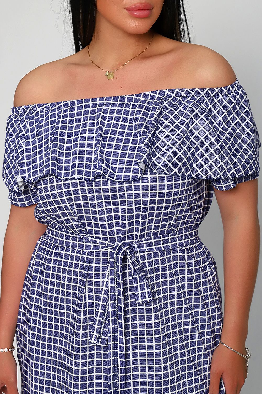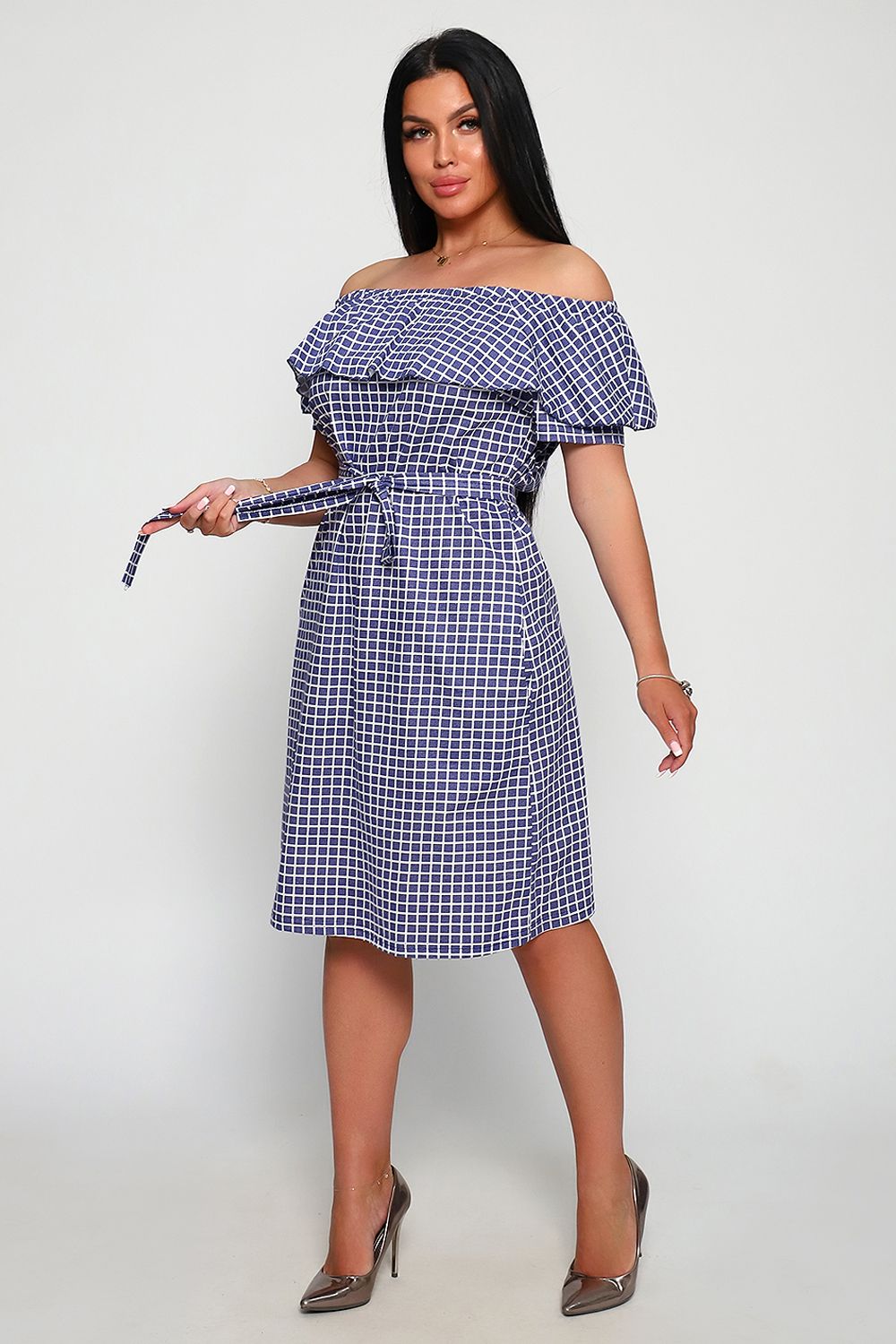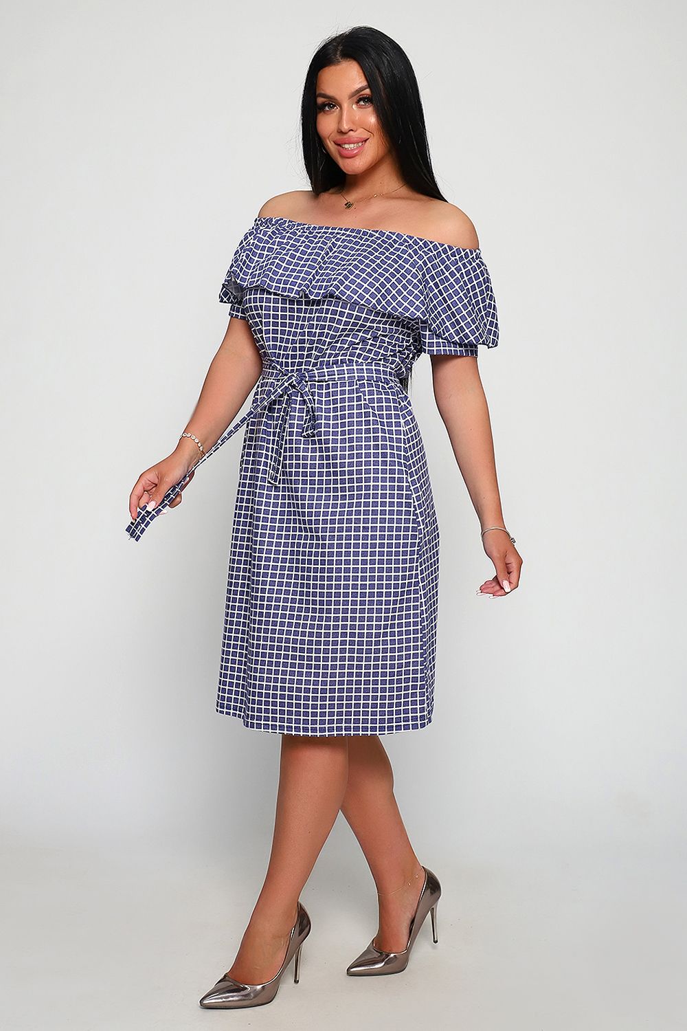 Женское платье - сарафан полуприлегающего силуэта с поясом и широкой рюшью на плечах. Выполнен в романтическом стиле из трикотажного полотна, 100% хлопок. Горловина собрана на резинку и отделана широкой оборкой. Короткий рукав, реглан. Длина пояса в 44 размере 155 см, в 62 размере 180 см. Широкий размерный ряд с 44 до 62 размера. Яркие весенне-летние расцветки с принтом по ткани в виде клетки. Карманы в боковом шве, добавляют дополнительный комфорт при носке. Платье можно носить, как со спущенным с плеч верхом, так и с поднятым, либо на одно плечо. Прекрасно подходит беременным, так как пояс не фиксируется на изделии и может приталить платье на любом уровне. В этом нарядном и удобном платье, Вы будете себя чувствовать комфортно в любой обстановке: на прогулке, дома, в отпуске, на пляже, на даче и на любом празднике.