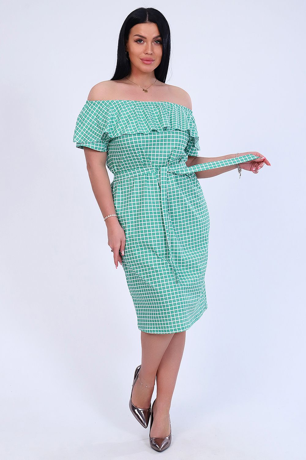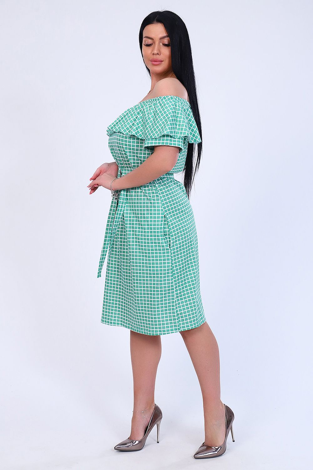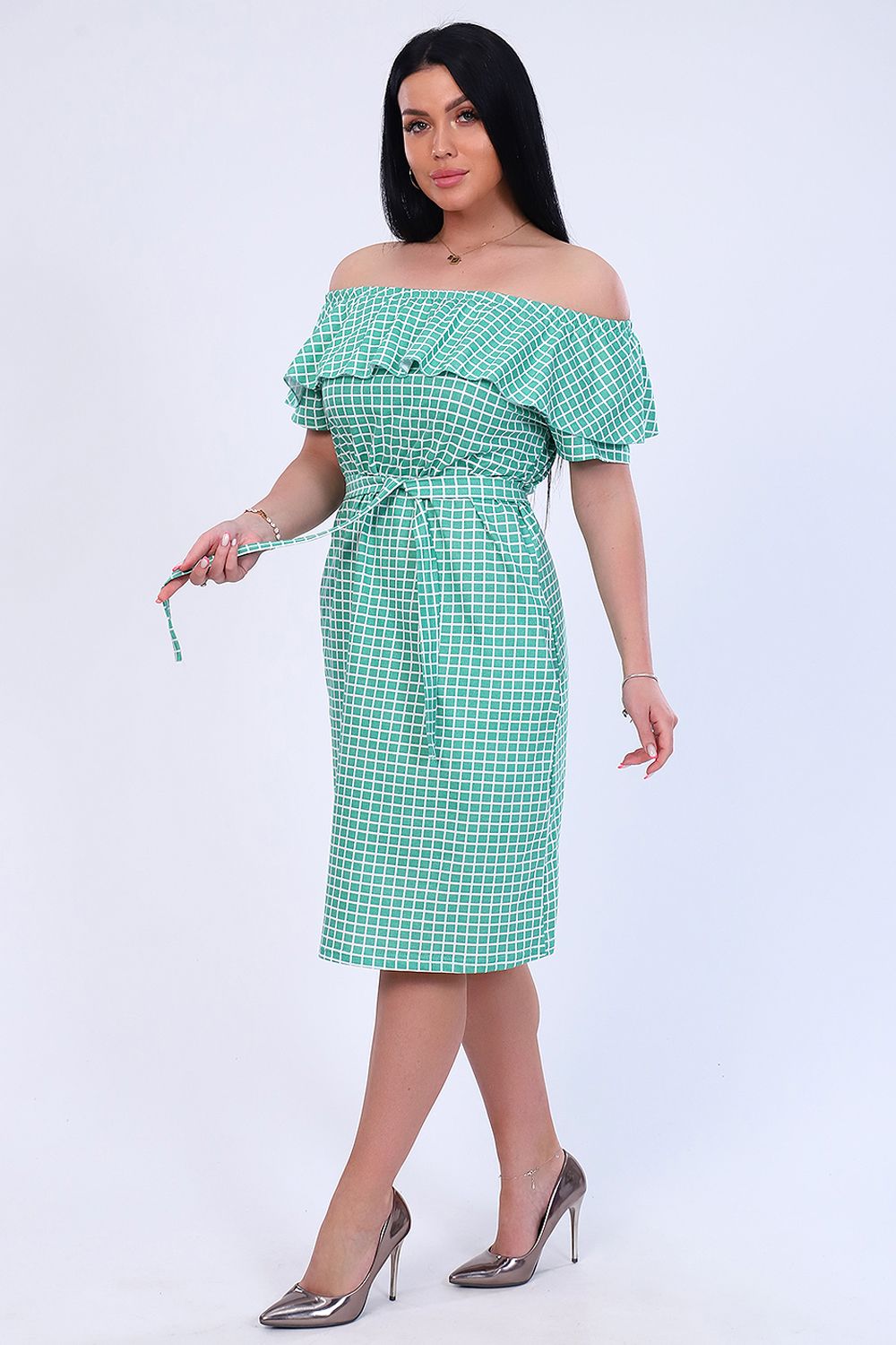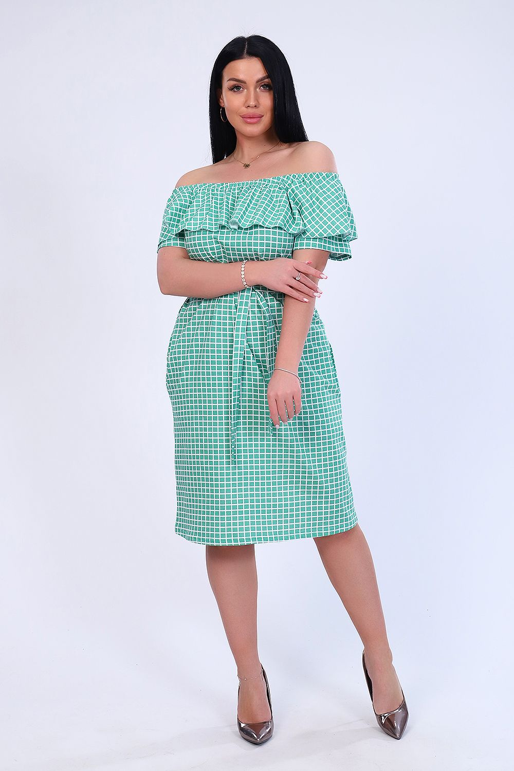 Женское платье - сарафан полуприлегающего силуэта с поясом и широкой рюшью на плечах. Выполнен в романтическом стиле из трикотажного полотна, 100% хлопок. Горловина собрана на резинку и отделана широкой оборкой. Короткий рукав, реглан. Длина пояса в 44 размере 155 см, в 62 размере 180 см. Широкий размерный ряд с 44 до 62 размера. Яркие весенне-летние расцветки с принтом по ткани в виде клетки. Карманы в боковом шве, добавляют дополнительный комфорт при носке. Платье можно носить, как со спущенным с плеч верхом, так и с поднятым, либо на одно плечо. Прекрасно подходит беременным, так как пояс не фиксируется на изделии и может приталить платье на любом уровне. В этом нарядном и удобном платье, Вы будете себя чувствовать комфортно в любой обстановке: на прогулке, дома, в отпуске, на пляже, на даче и на любом празднике.