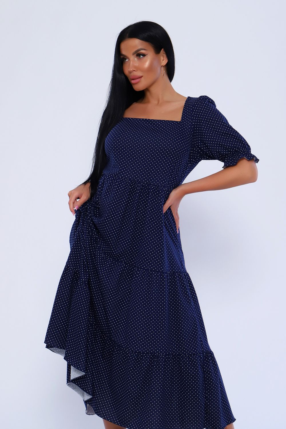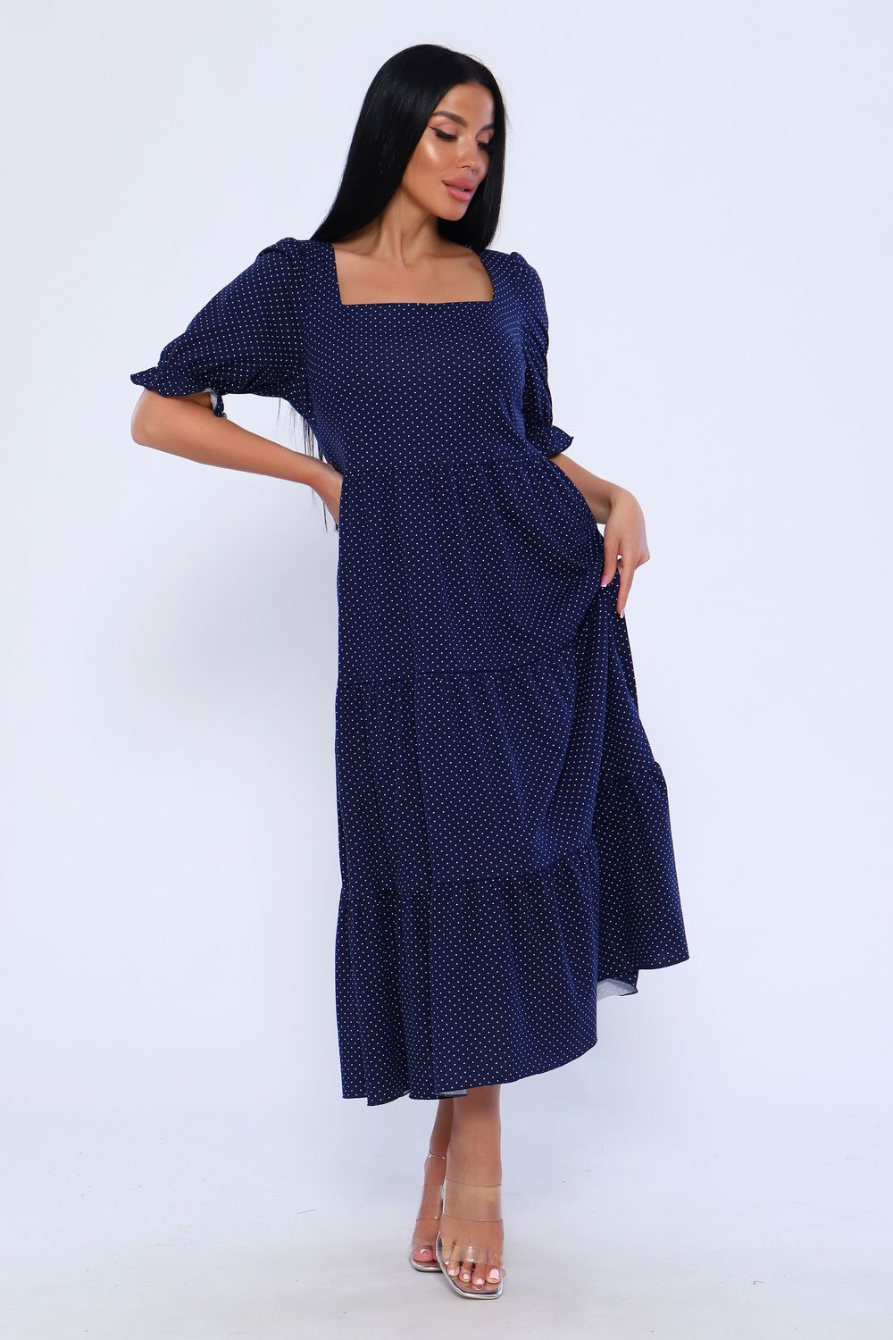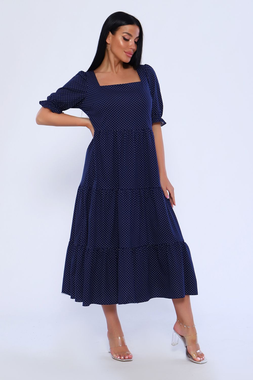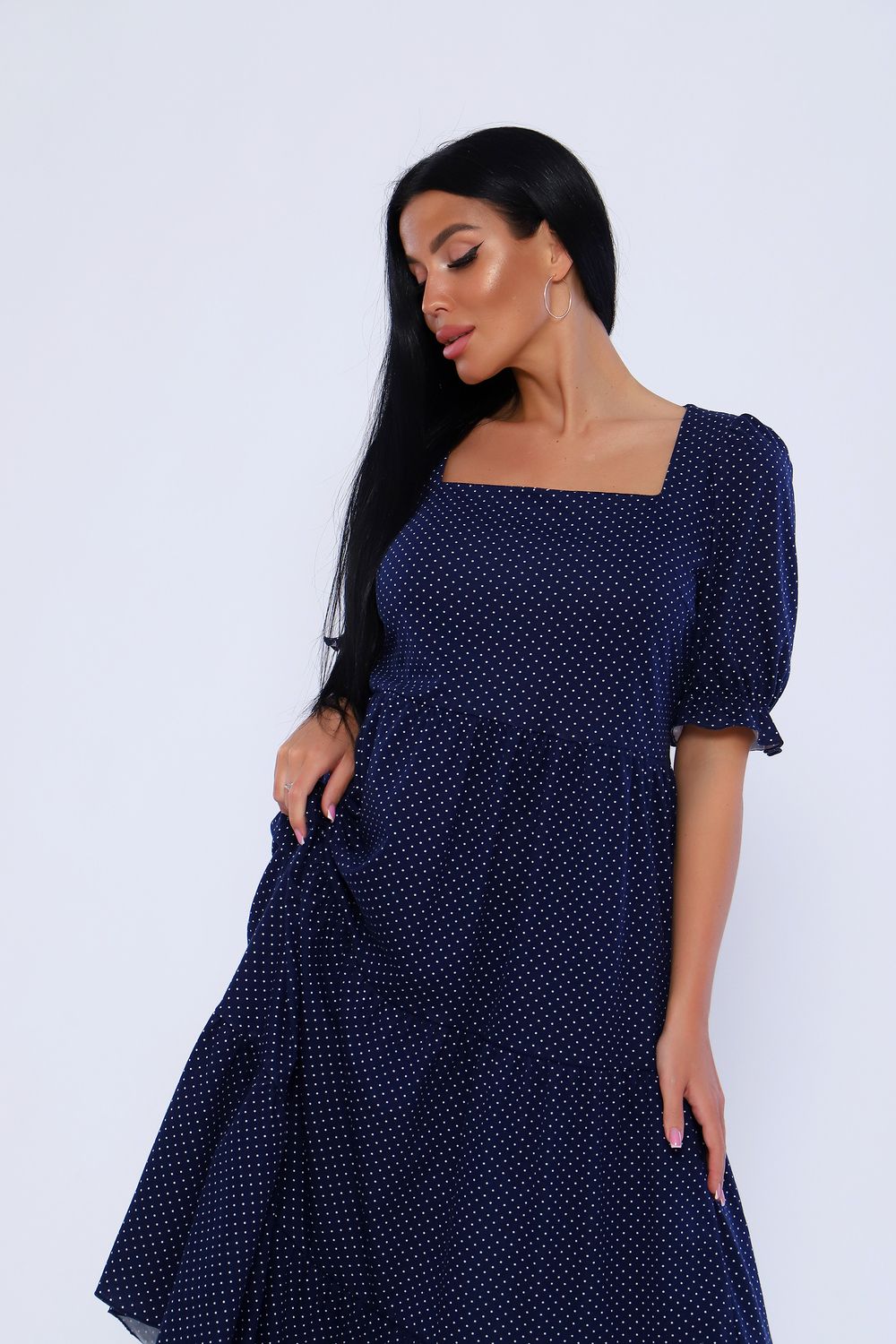 Легкое и дышащее летнее платье из хлопка. Платье в длине миди с пышными рукавами и квадратным вырезом подчетркивает декольте и визуально удлинняет шею. Платье А-силуэта состоит из нескольких соединенных рядов-ярусов, линия талии платья чуть завышена. Модель не сковывает движения и комфортно садится по фигуре. Оно универсально и может быть использовано как вечернее, так и повседневное платье.