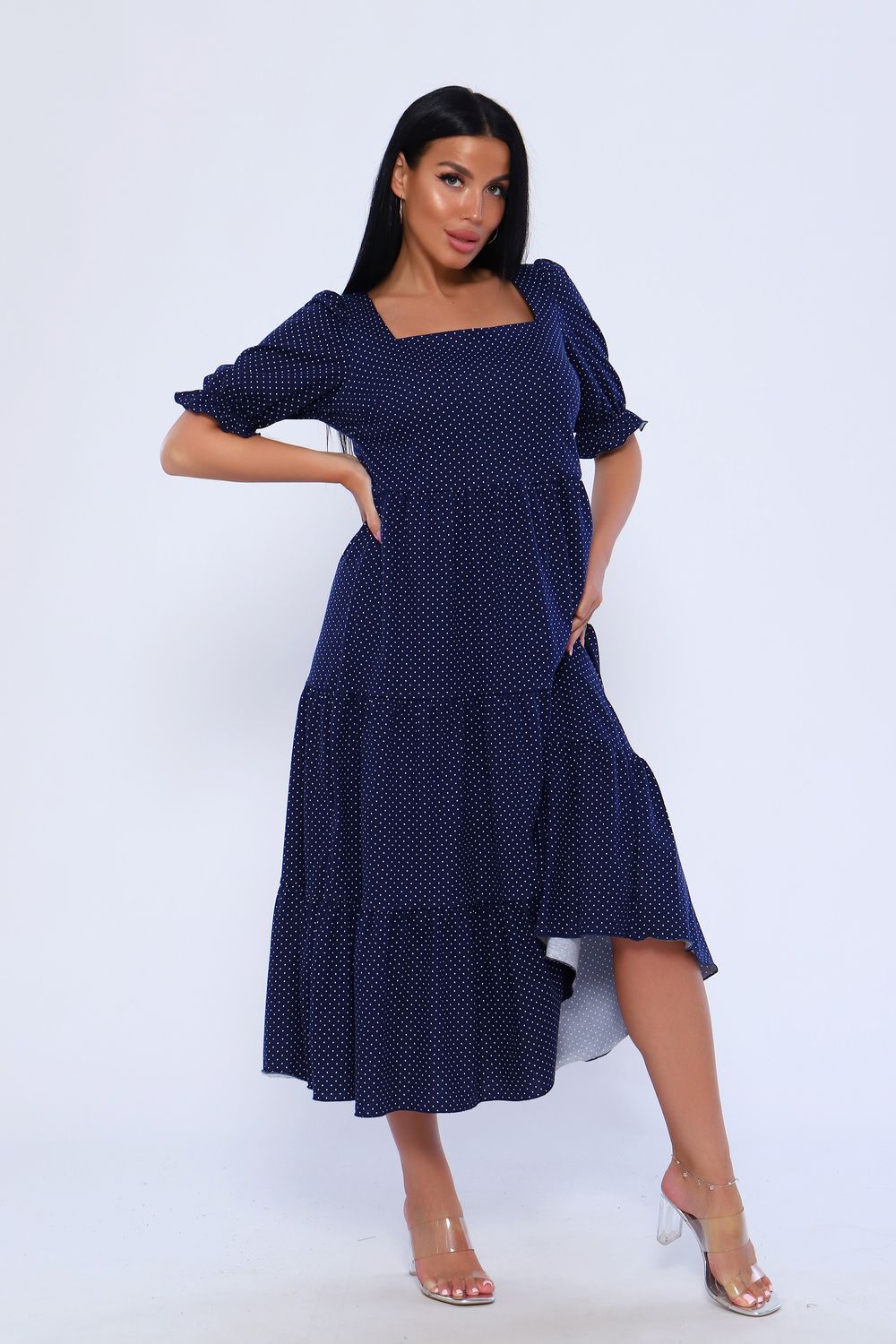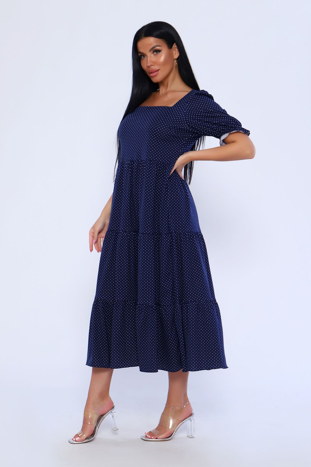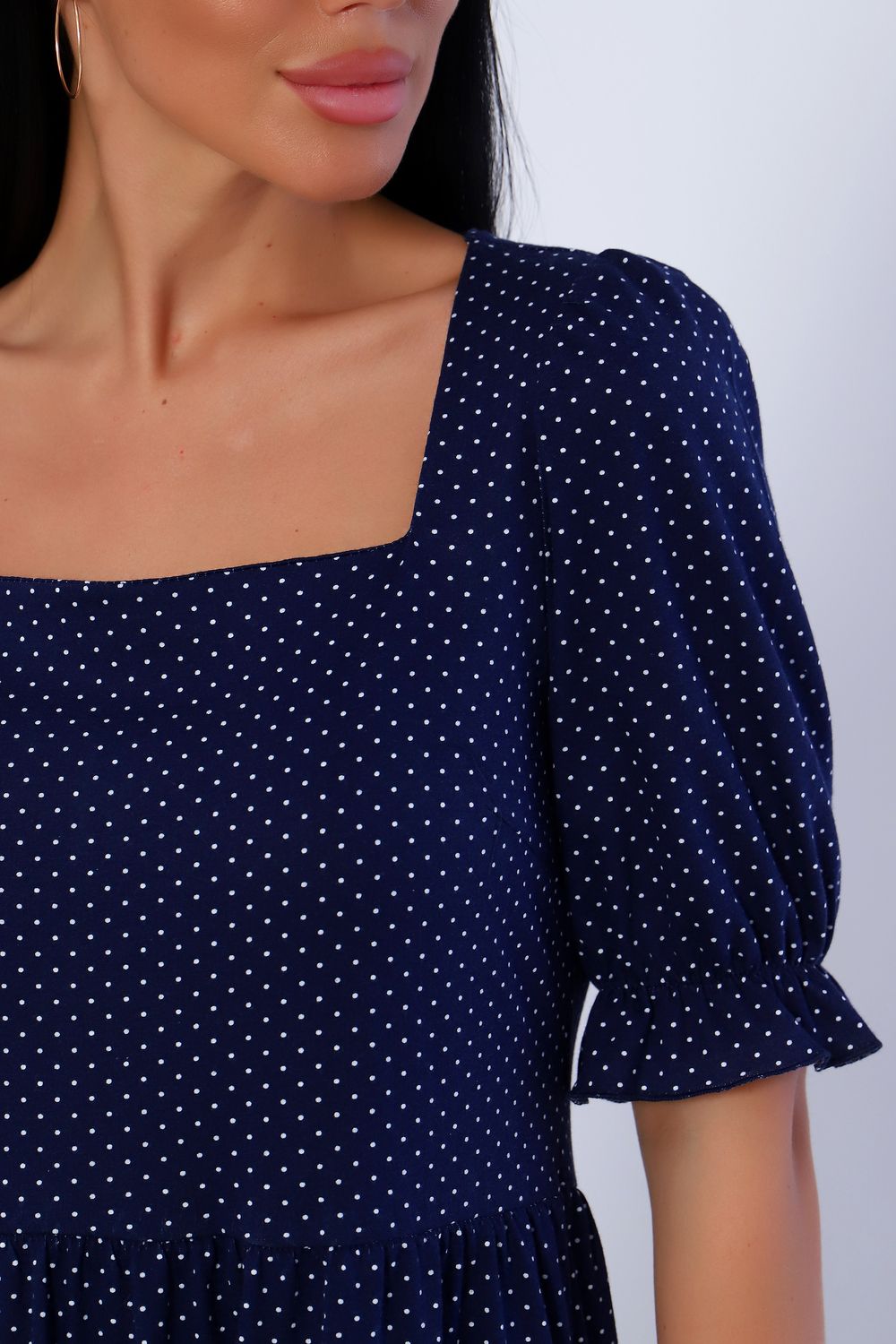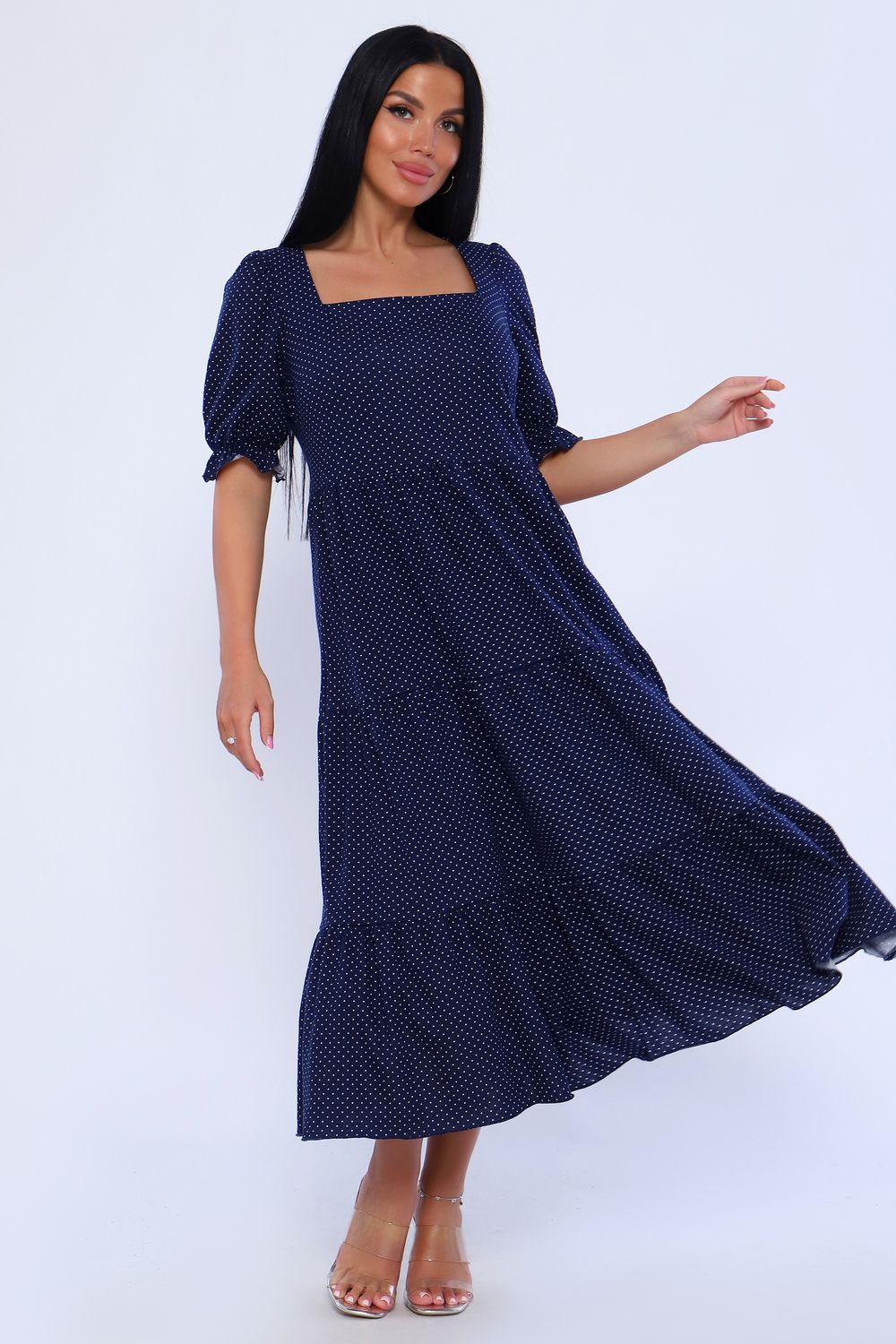 Легкое и дышащее летнее платье из хлопка. Платье в длине миди с пышными рукавами и квадратным вырезом подчетркивает декольте и визуально удлинняет шею. Платье А-силуэта состоит из нескольких соединенных рядов-ярусов, линия талии платья чуть завышена. Модель не сковывает движения и комфортно садится по фигуре. Оно универсально и может быть использовано как вечернее, так и повседневное платье.